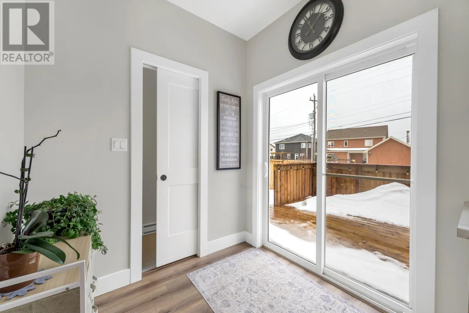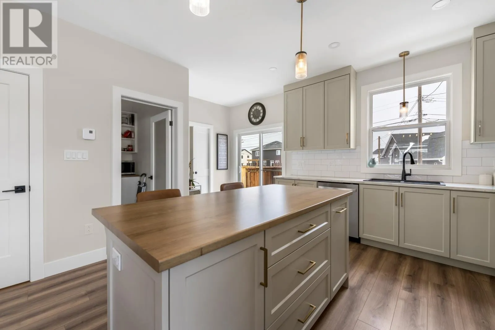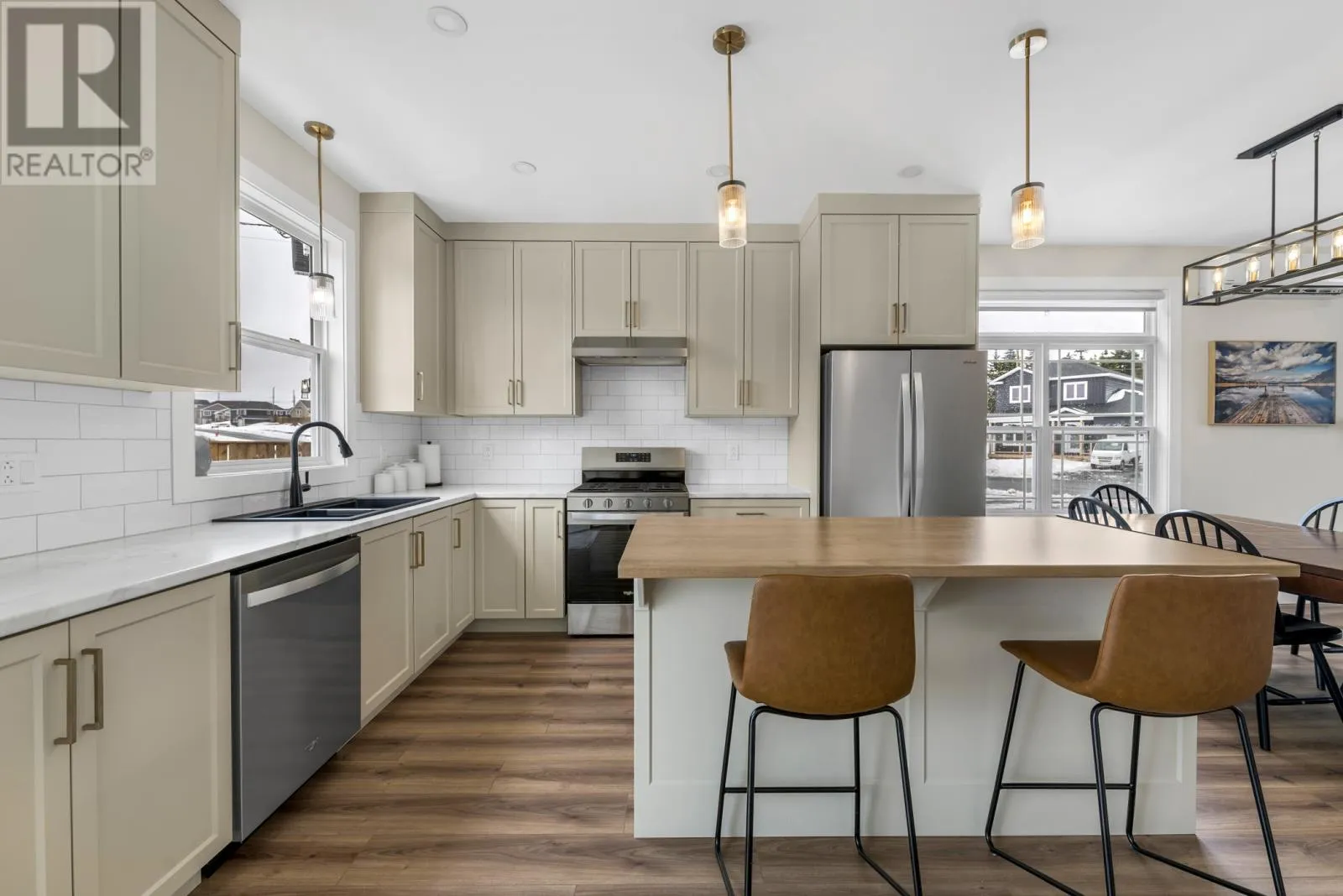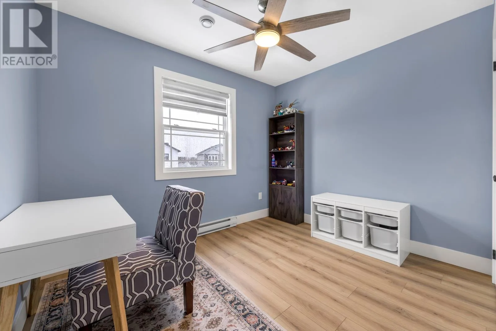 Off Lanark Drive Welcome to this beautifully crafted 3+1 bedroom custom 2 sty with attached garage, ideally located in the sought-after new subdivision Adams Pond in Paradise. At just 5 months old, this home offers all the benefits of new construction - without the wait! Step inside to discover 9 ft ceilings and a bright, open concept main floor featuring a spacious great room with propane fireplace with custom mantle, seamlessly flowing into a stylish kitchen complete with an abundance of cabinetry, centre island, pantry and dining area. Large windows flood the space with natural light, creating a warm and inviting atmosphere. A convenient 1/2 bath and access to a large patio deck complete this level. Upstairs, you will find 3 bedrooms, including a primary suite with walk in closet and ensuite featuring a glass shower. A full main bathroom and 2nd floor laundry add everyday convenience. The fully developed basement offers even more living space with a 4th bedroom, full bathroom & rec room, perfect for the growing family or giving a teenager their own space. Additional highlights include a mini split heat pump, ample paved parking with room for recreational vehicles, and garage has plenty of storage. Located seconds to schools, recreation and walking trails. Why build and wait when you can move into this exceptional home now! (id:27476)