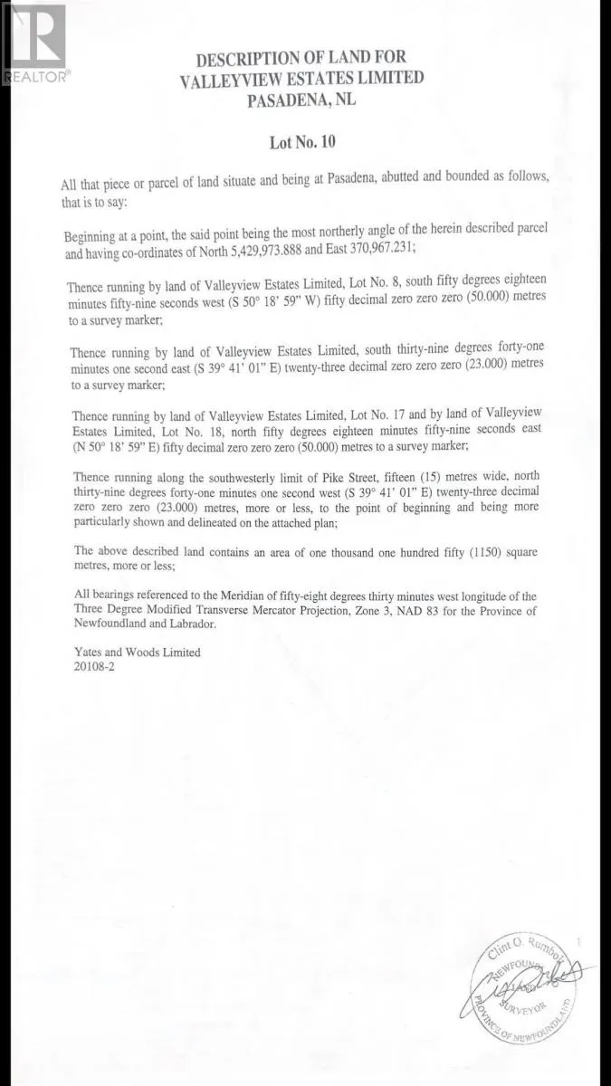 Call or text Shelby at 709-632-6998. Email: shelby.pike@remax-realtyprofessionals.com Family, friends, schools, recreation, beaches, parks, cross-country skiing, trail-networks and so much more…Do these things spark interest to you? Nestled in the Foote Street Subdivision sits Pike Street. This developing neighborhood is central in town, family friendly, active and beautiful. At the entrance of Pike Street there is a playground for the kids to enjoy and at the far-end of the street is the Pasadena Ski and Nature Park. The subdivision is within walking distance of the high-school and the Pasadena Place Rec Centre as well. If you enjoy the summer months, Pasadena Beach is about a 15–20-minute walk from Pike Street and if you are more geared toward the winter, the local trail networks are at ease of access too! If this has you thinking of taking the next step to build your family home, Pike Street is ready to welcome you! (id:27476)
