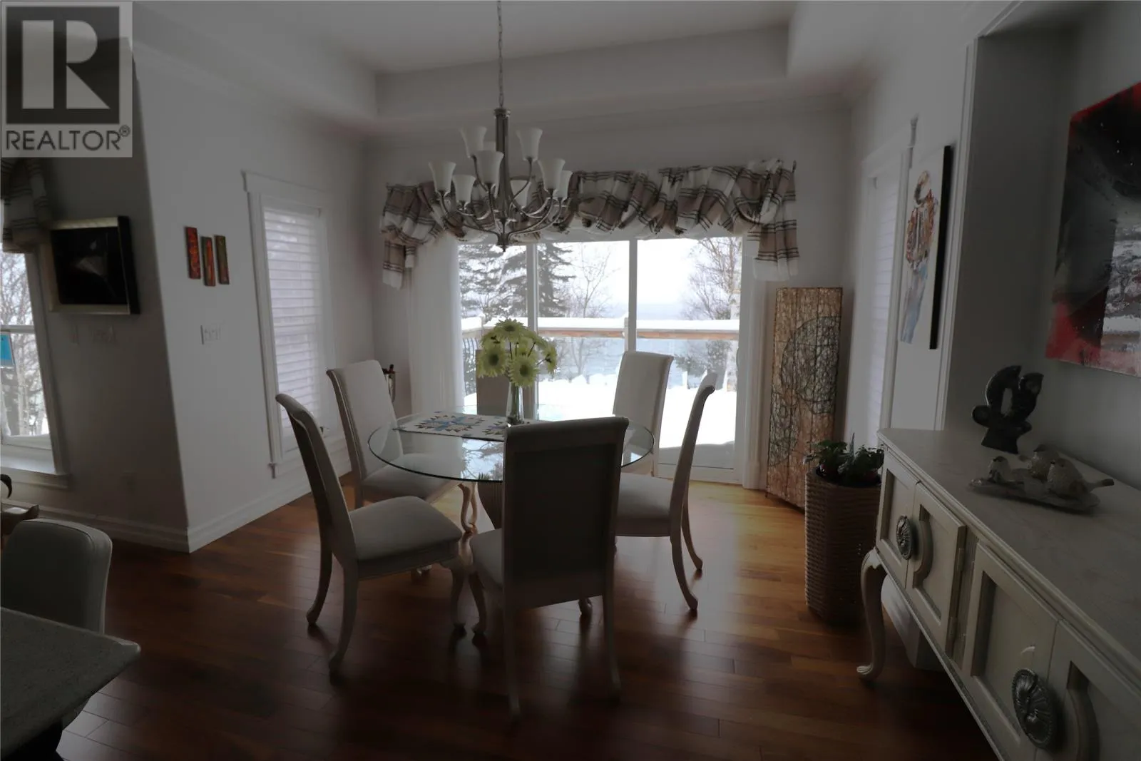 Welcome to your stunning waterfront property offering direct access to the lakeâperfect for launching your boat or kayak right from your own backyard. Enjoy two stairway landings leading to the waterâs edge, creating an exceptional outdoor living experience. The Home features a 114' paved circular driveway, flagstone walkways, and approximately 100 feet of water frontage, surrounded by mature birch trees that provide privacy and natural beauty. Inside, the main level features pristine walnut flooring and a walnut staircase, complemented by 9-foot ceilings and elegant 10-foot tray ceiling in the great room and dining room areas, and warm cork flooring in the family room on the lower level. The kitchen is designed for both style and function, showcasing quartz countertops, ample custom cabinetry, a walk-in pantry, and an additional refrigerator. The cabinetry seamlessly matches the electric fireplace, adding warmth and flow. The dining area opens to a walk-out patio, while the lower-level family room leads to a private flagstone deckâideal for entertaining or relaxing while taking in the views. Custom vanities are featured throughout the home, and the exterior is finished with distinctive Lodgepole pine siding for outstanding modern appeal. Additional highlights include a three-car garage, central air and heat, and a cozy Swedish Jotul propane fireplace in the lower level. This spacious home includes four bedrooms and three bathrooms, with two bedrooms on the main level and two on the lower level, including a lower-level walk-in closet. The lower level also offers dedicated fitness and office space, making it ideal for modern living. A rare opportunity to own a beautifully designed, well maintained waterfront home that blends comfort, craftsmanship, and an unbeatable setting. (id:27476)