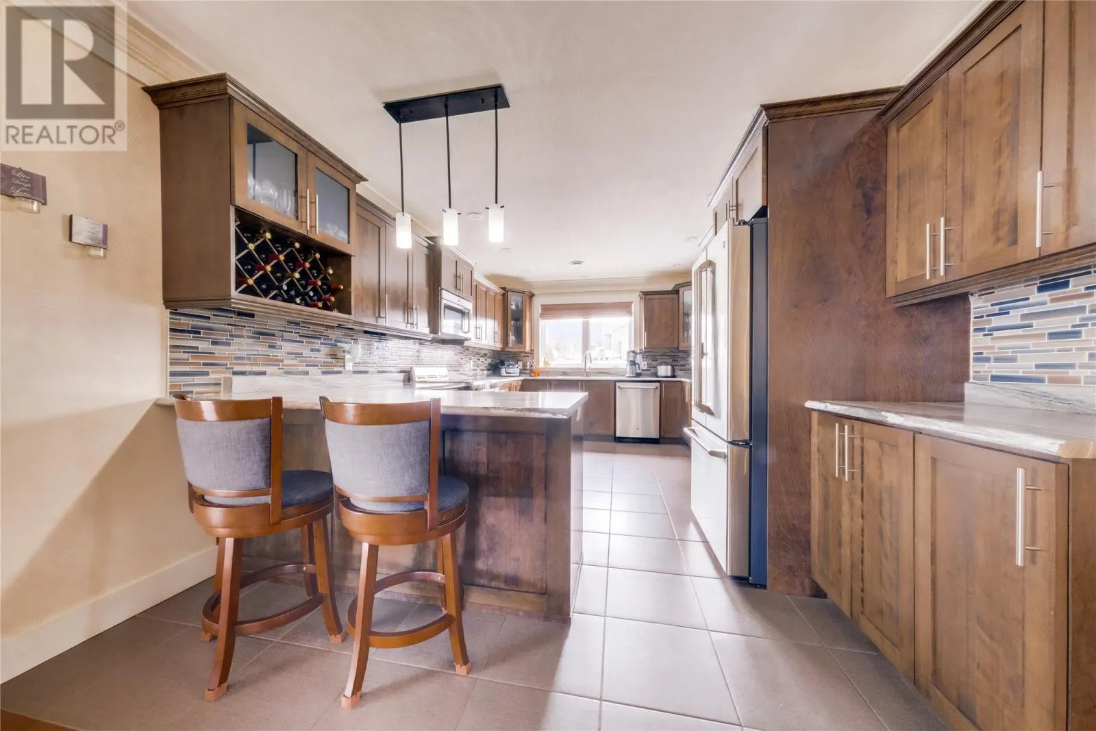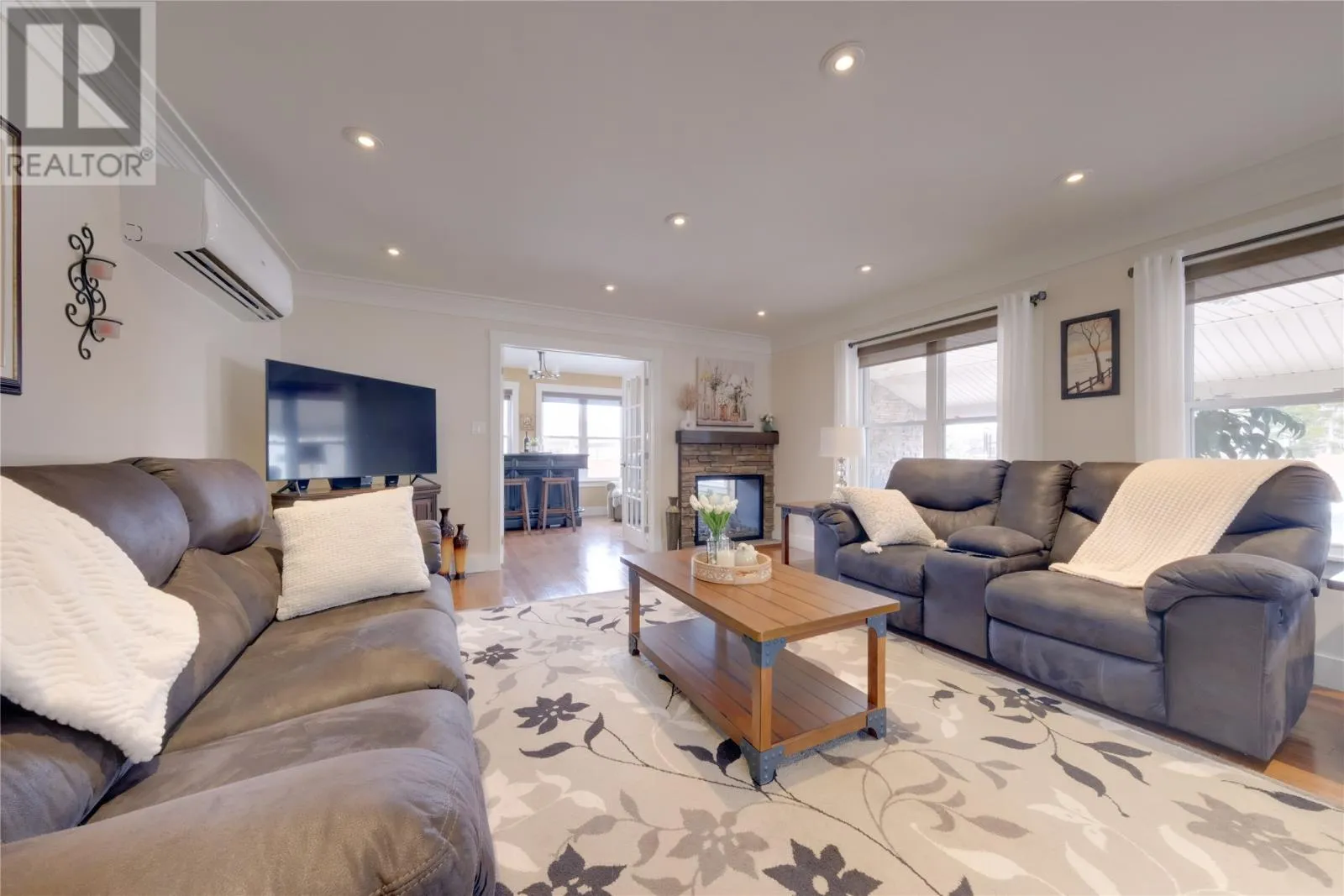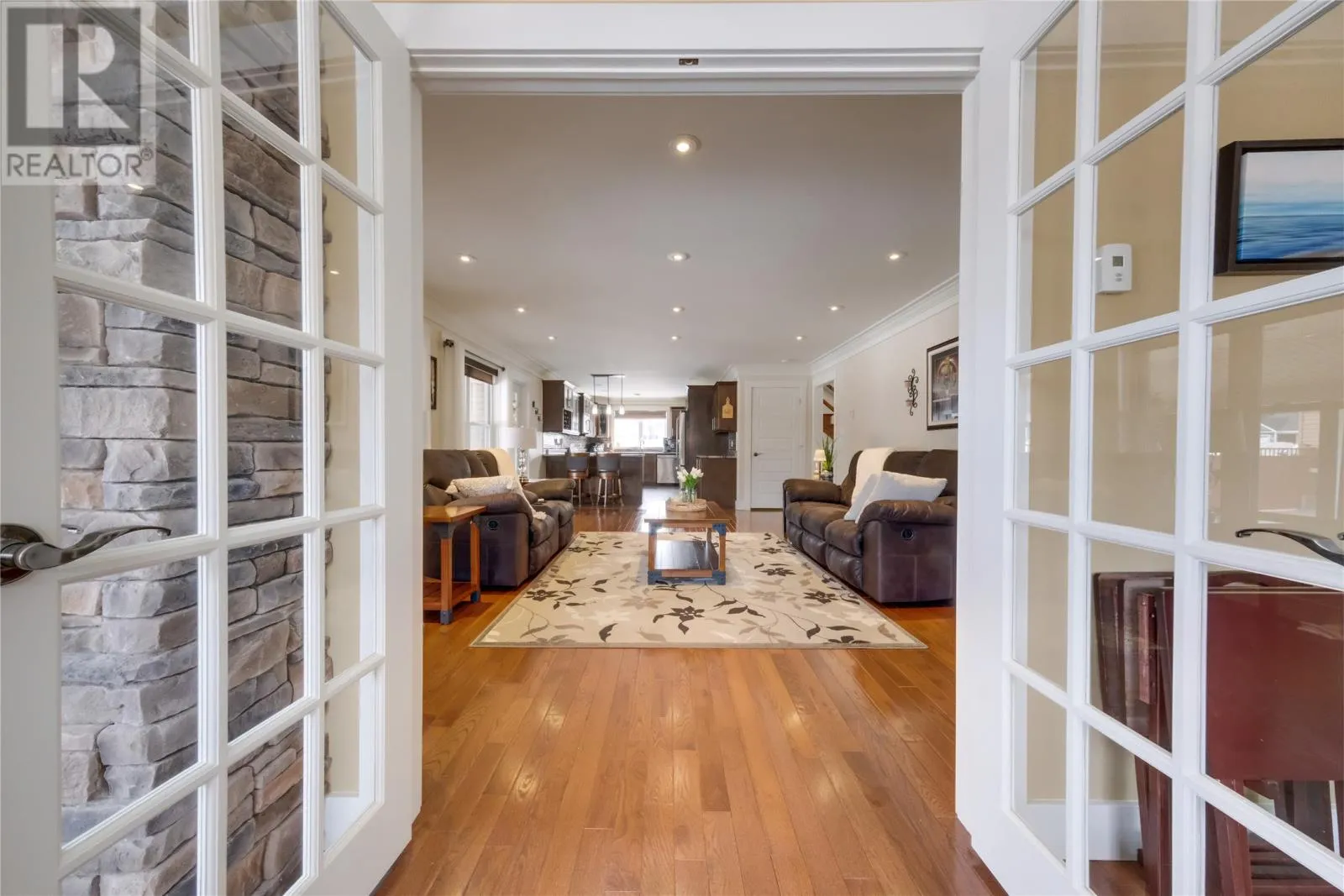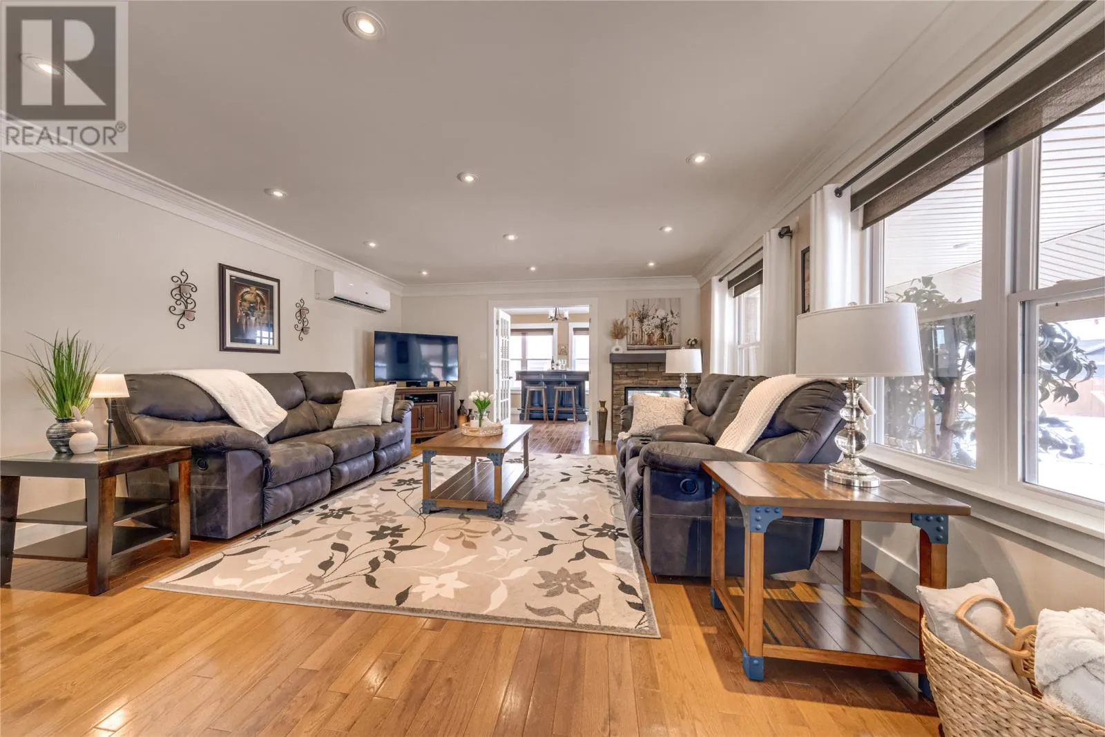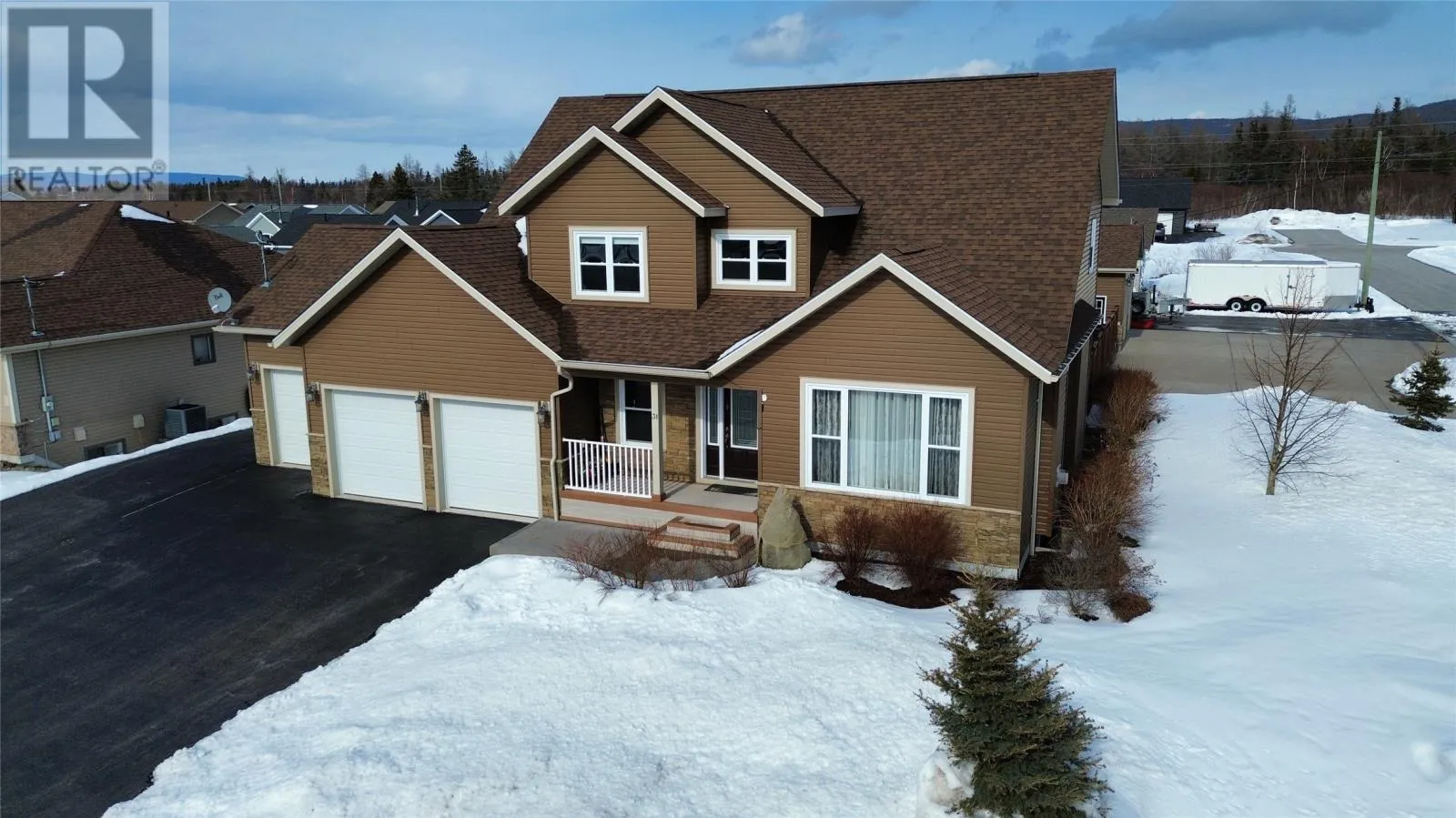Welcome to this stunning executive style two-story home located in one of Pasadena's most sought after neighborhoods. From the moment you step into the grand foyer, you're greeted by a striking staircase and a sense of refined elegance throughout. The main level is designed for both upscale living and effortless entertaining. The inviting living room features a propane fireplace that flows into the formal dining area and the beautifully designed kitchen with high end appliances. The spacious family room boasts a dual -sided propane fireplace that opens into a bright sunroom, an ideal spot for morning coffee or to unwind at the end of the day. Upstairs offers four generously sized bedrooms, including the primary suite with a spa like ensuite, plus convenient upper level laundry. Comfort is a priority in this home with in-floor heating throughout the main level and basement , keeping everything warm during the colder months. A heat pump adds extra efficiency and keeps the home cool and comfortable during the summer. The basement offers a roomy recreation area, a half bath and ample storage space , as well as an additional 800 sq feet of undeveloped space. This space has already been plumbed for a future apartment or in-law suite, with plans available for completion. This home also features a three car heated attached garage. The outdoor space is equally impressive, featuring a beautifully landscaped fenced backyard, a covered composite deck, and a rare drive through concrete driveway. In addition, there is a large double detached garage equipped with a heat pump and multiple doors for storing recreational vehicles. This garage was built on an ICF foundation. For outdoor enthusiasts, the location is unbeatable with direct access to groomed trails right from your home and easy walking distance to the near by cross country ski trails. This exceptional property truly has it all with high-end living and ultimate convenience. (id:27476)