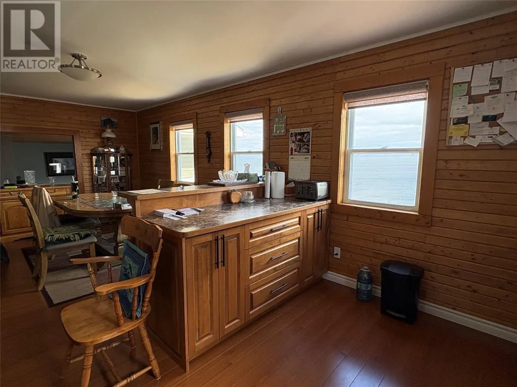 Oceanfront property with lots of storage, garages, parking and garden to use as you desire. There are two attached garages as well as a steel building which has been recently wired and has its own panel. There is a storage shed, with an attached wood shed and little greenhouse also attached. The house has lots of windows to give you the natural light and look out onto the ocean. There is a patio on the back to sit and enjoy the views, watch the fishing vessels or large ships coming in the bay. Laundry and a full bathroom are upstairs just off the kitchen, where the Primary bedroom is as well. That level has an open concept, kitchen and dining room which overlooks the foyer and the wood stove, just off the living room. The lower level has two more bedrooms, another full bathroom, the rec room and the back porch/mudroom which leads out into the back yard. There is access to the double car garage from the foyer where you will find tons for storage and shelving. There is so much to say about this property, suggest you come see for yourself. (id:27476)