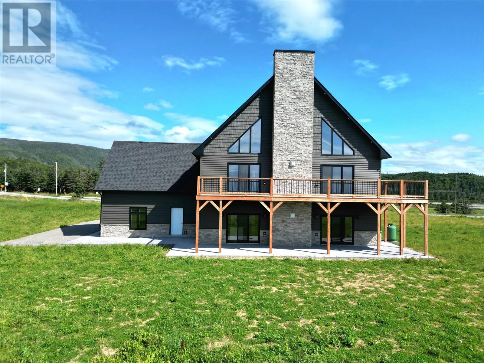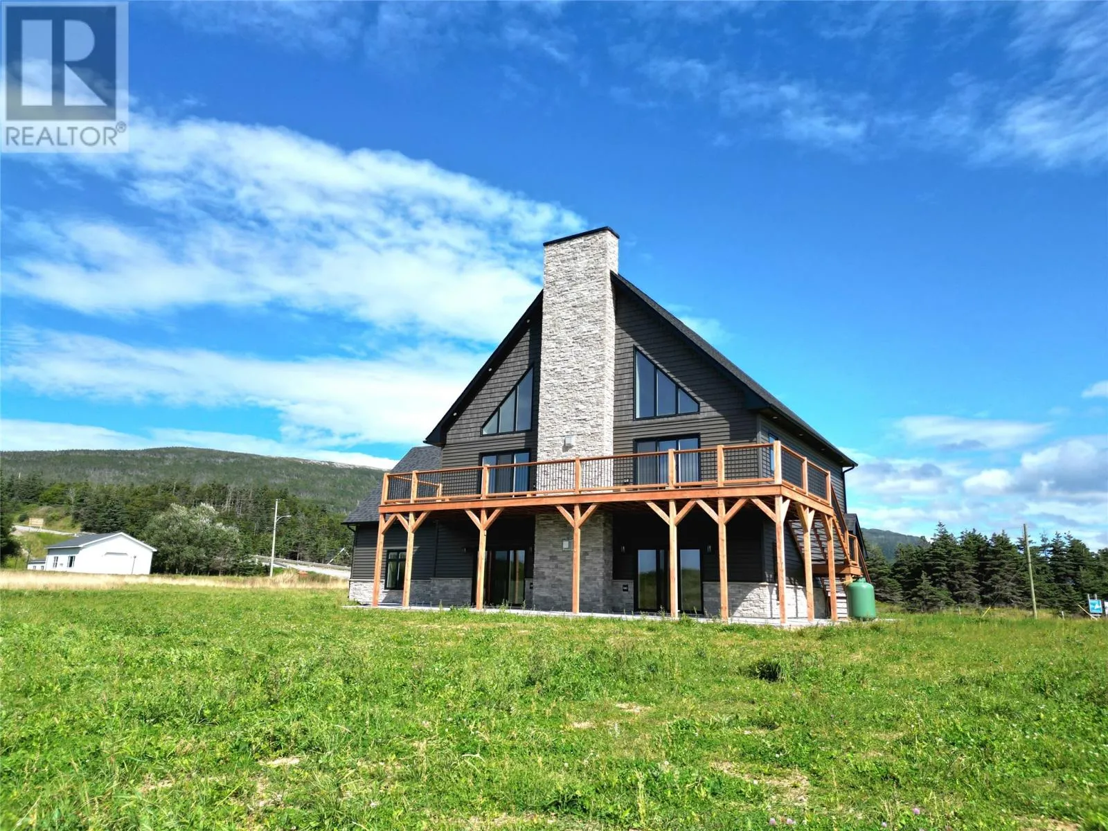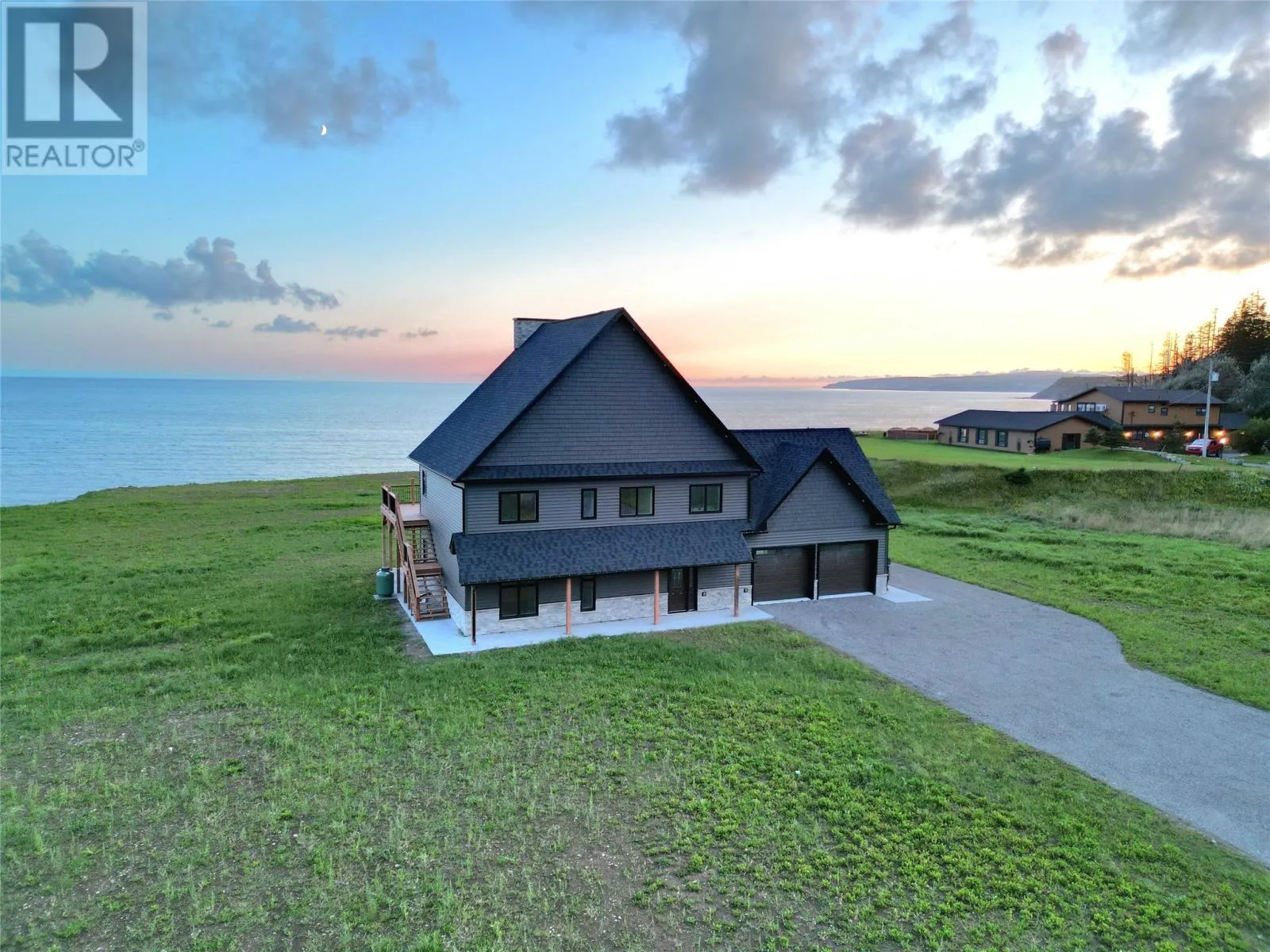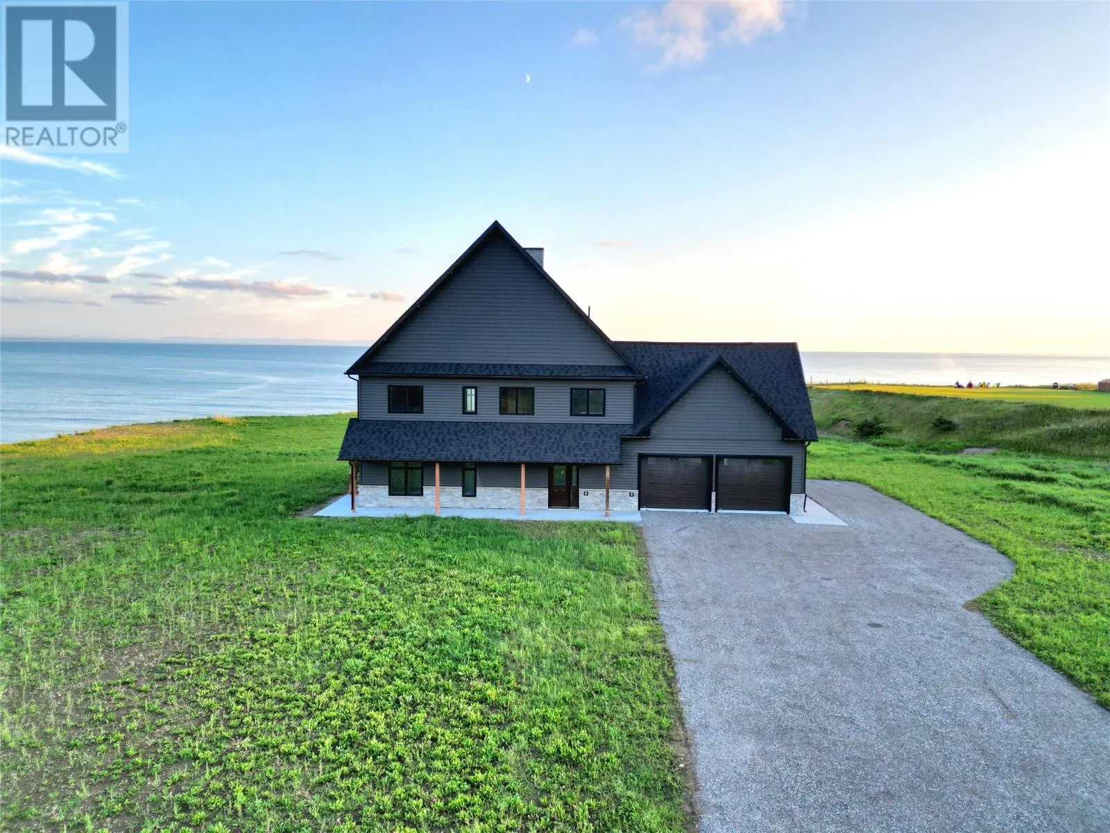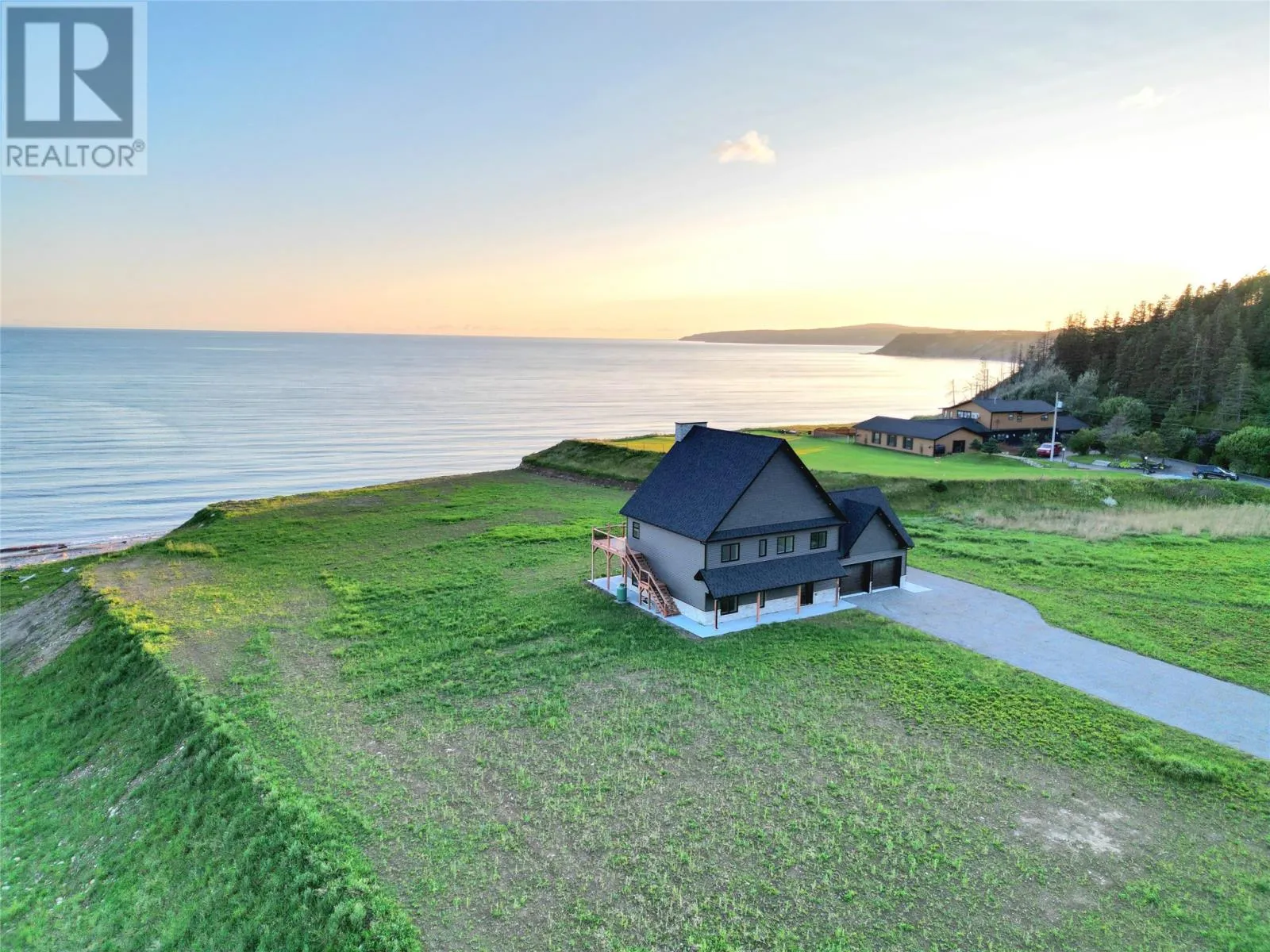 Peace and tranquility awaits! Enjoy breathtaking panoramic views of beautiful Bay St. George. This new, custom built 2780 square foot home is situated on a 3.2 acre level lot with over 400 feet of ocean frontage. Located next to Romaine's River, this property is less than 10 minutes away from Stephenville. The main level features 10 foot ceilings, a large open concept Chefâs kitchen, dining, and living room that is accentuated with a gorgeous propane fireplace. The kitchen boasts granite countertops, high-end cabinetry, a large island with a live edge maple countertop, and new appliances. Two large patio doors in this space lead out to a beautiful stamped concrete patio. A spacious primary bedroom with ensuite, main floor bathroom and laundry room, and access to the attached garage complete the main floor of this home. The second level of this home maybe even more impressive than the first. At the top of the stairs you are welcomed into the great room. The brickwork of the propane fireplace, and the high cathedral ceilings will take your breath away. Large windows and patio doors allow an abundance of natural light into the space. A second kitchen area with custom cabinetry, granite countertops, fridge, and cooktop is perfect for entertaining. Patio doors lead out to a 10â x 45â deck where you can sit back, relax and take in stunning views of the bay. Two more bedrooms and a washroom finish off the remainder of the second level. The entire home is built with ICF forms to the rafters making this an extremely energy efficient and quiet home. This unique property really is a gem. Sit back on the deck, listen to the waves crash on the shore, and watch a large variety of marine life from the comfort of your home. It doesn't get any better than this! Pictures simply can not capture the beauty of this property!! (id:27476)