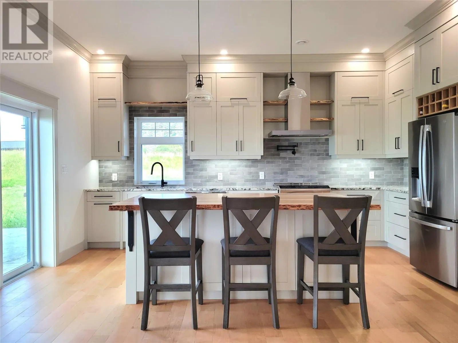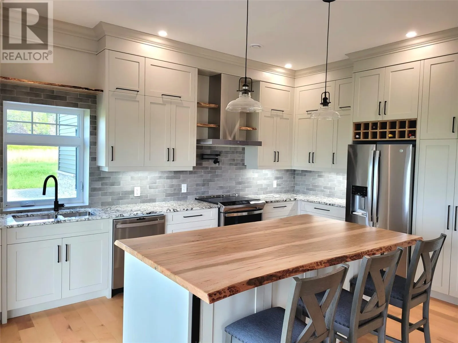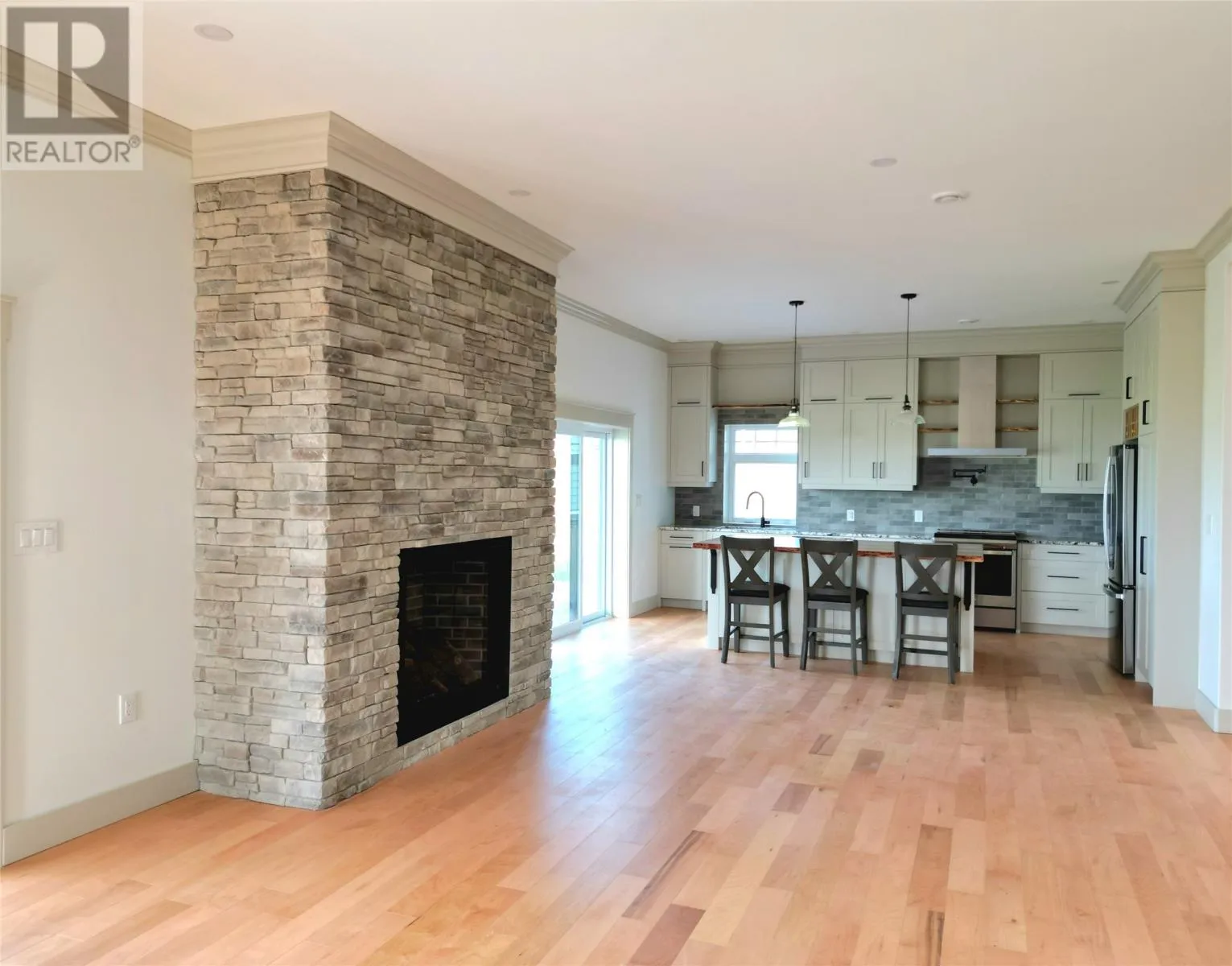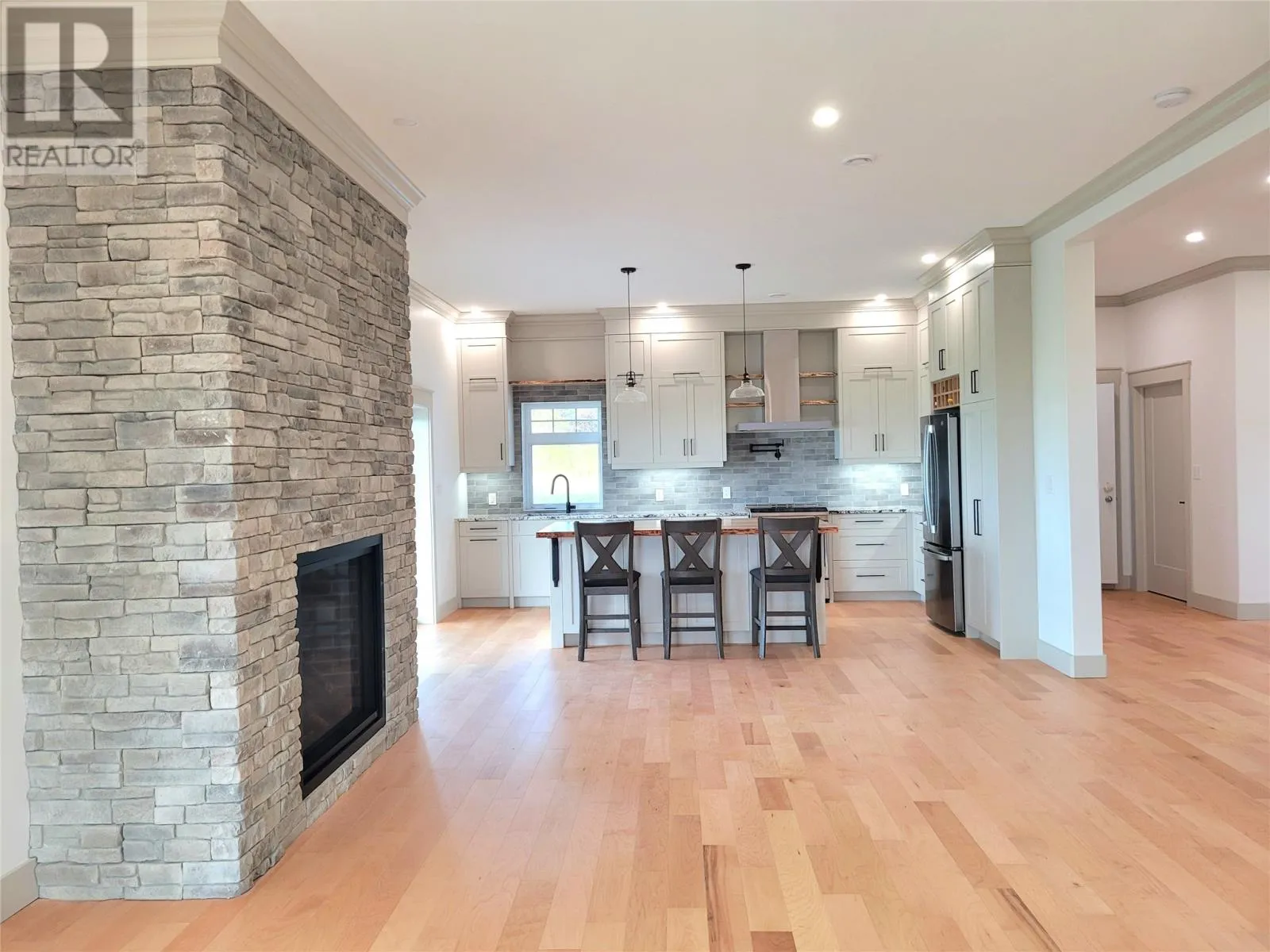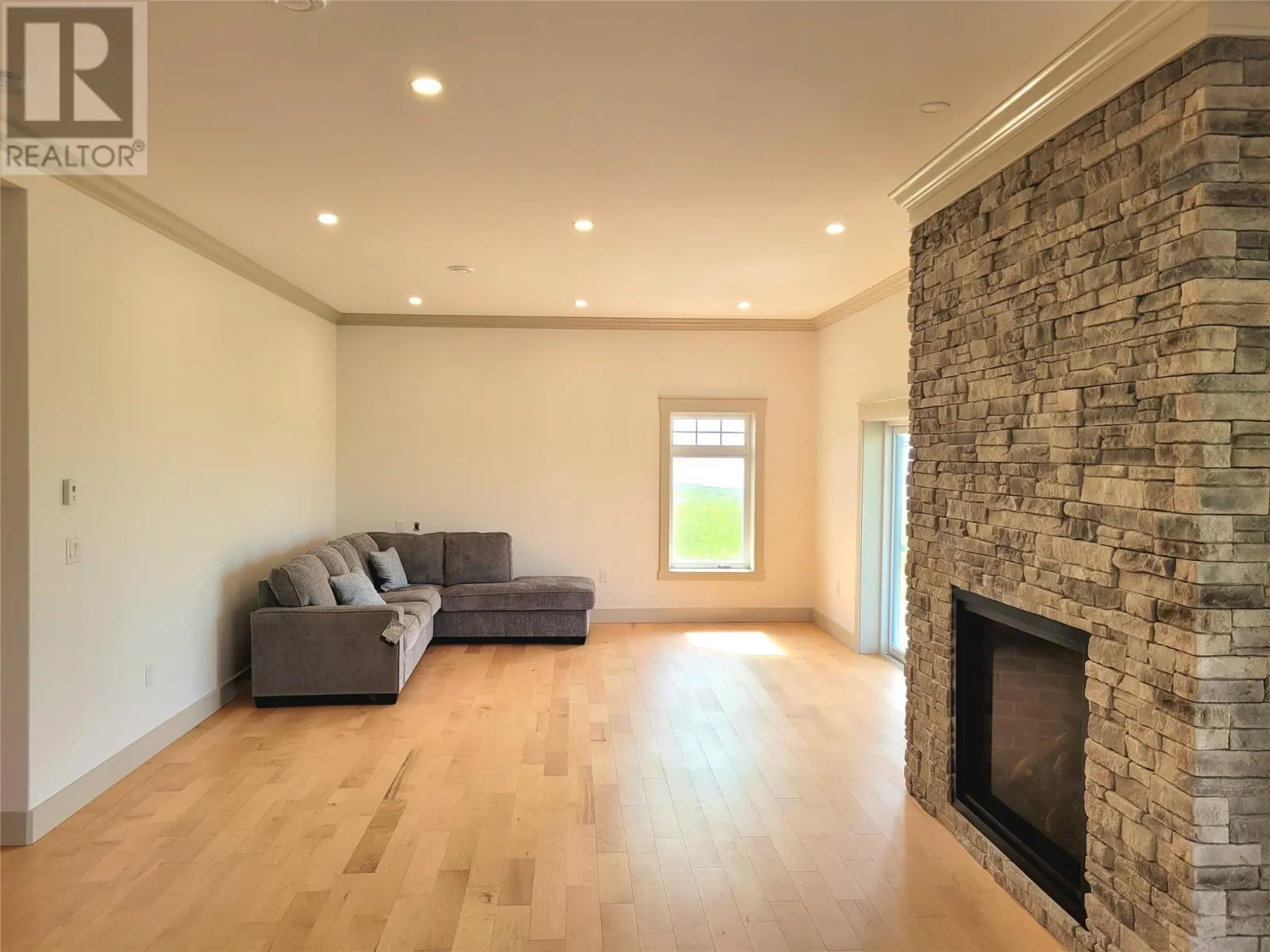 Peace and tranquility awaits! Enjoy breathtaking panoramic views of beautiful Bay St. George. This new, custom built 2780 square foot home is situated on a 3.2 acre level lot with over 400 feet of ocean frontage. Located next to Romaine's River, this property is less than 10 minutes away from Stephenville. The main level features 10 foot ceilings, a large open concept Chefâs kitchen, dining, and living room that is accentuated with a gorgeous propane fireplace. The kitchen boasts granite countertops, high-end cabinetry, a large island with a live edge maple countertop, and new appliances. Two large patio doors in this space lead out to a beautiful stamped concrete patio. A spacious primary bedroom with ensuite, main floor bathroom and laundry room, and access to the attached garage complete the main floor of this home. The second level of this home maybe even more impressive than the first. At the top of the stairs you are welcomed into the great room. The brickwork of the propane fireplace, and the high cathedral ceilings will take your breath away. Large windows and patio doors allow an abundance of natural light into the space. A second kitchen area with custom cabinetry, granite countertops, fridge, and cooktop is perfect for entertaining. Patio doors lead out to a 10â x 45â deck where you can sit back, relax and take in stunning views of the bay. Two more bedrooms and a washroom finish off the remainder of the second level. The entire home is built with ICF forms to the rafters making this an extremely energy efficient and quiet home. This unique property really is a gem. Sit back on the deck, listen to the waves crash on the shore, and watch a large variety of marine life from the comfort of your home. It doesn't get any better than this! Pictures simply can not capture the beauty of this property!! (id:27476)