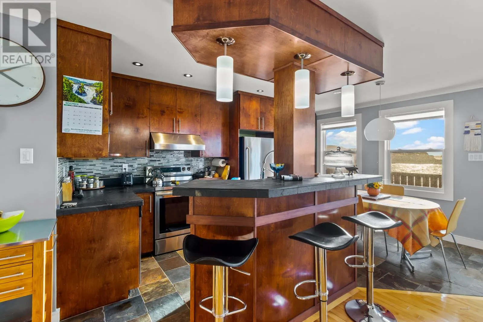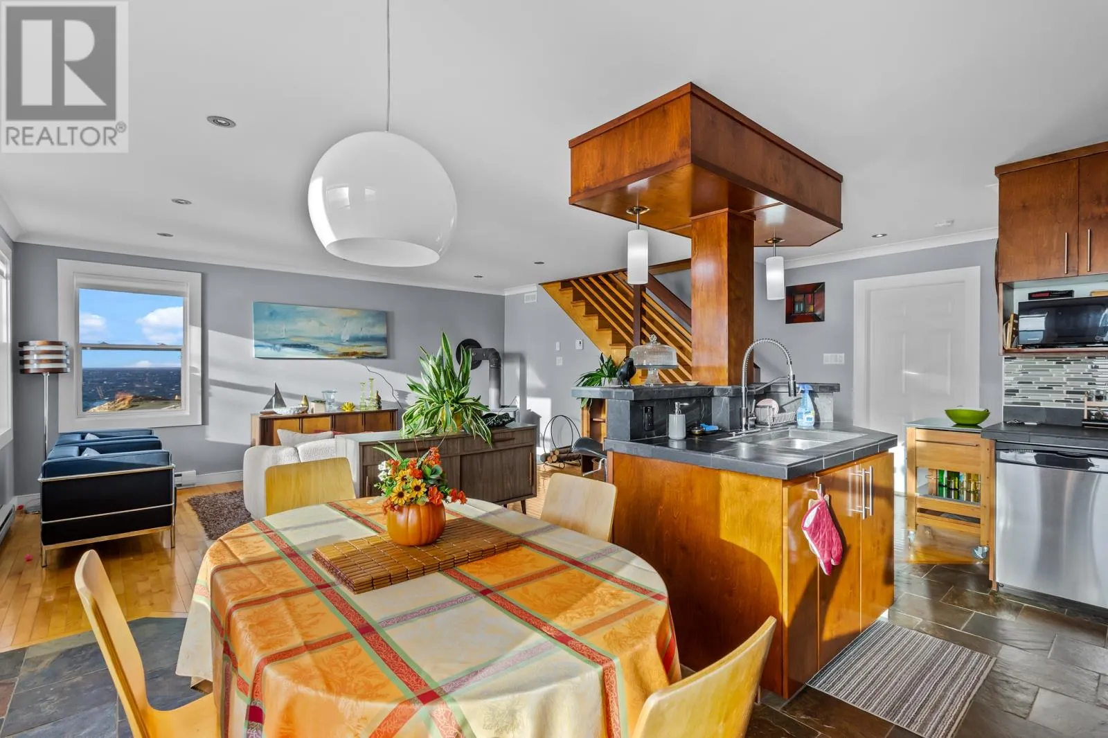 Perched cliffside at the edge of the ocean, this one-of-a-kind single-family home in Portugal Cove offers unmatched panoramic views and timeless Newfoundland charm. Every detail has been thoughtfully designed to celebrate craftsmanship, character, and the beauty of its surroundings. This home welcomes you from a large driveway with ample parking to an attached garage that leads into a porch, laundry area and half bath, all leading into an open-concept living space that captures ocean views from your front windows and exceptional patio space that stretches across the front of the home. The kitchen and dining area is truly a showstopperâfeaturing black slate counters, distinctive cabinetry, and a design that perfectly blends rustic warmth with modern elegance - the living space also features a woodstove, perfect to make this Holiday Season warm and cozy. A Hallmark movie couldn't do it like this. The Newfoundland birch flooring throughout adds richness and warmth, complemented by a custom-designed railing along the stairs and second-floor landing. Upstairs, youâll find three spacious bedrooms, a large full bath, and a charming bonus roomâcomplete with reclaimed and salvaged wood details, including vintage doors and accents from the original home that once stood here. Every inch of this property tells a story, offering a rare blend of history, craftsmanship, and coastal beauty. Experience the serenity of oceanfront living just minutes from the cityâwhere breathtaking views and timeless design meet. As per Seller Direction there will no conveyance of offers prior to 4pm November 17th, all offers to be left open until 9pm November 17th. (id:27476)