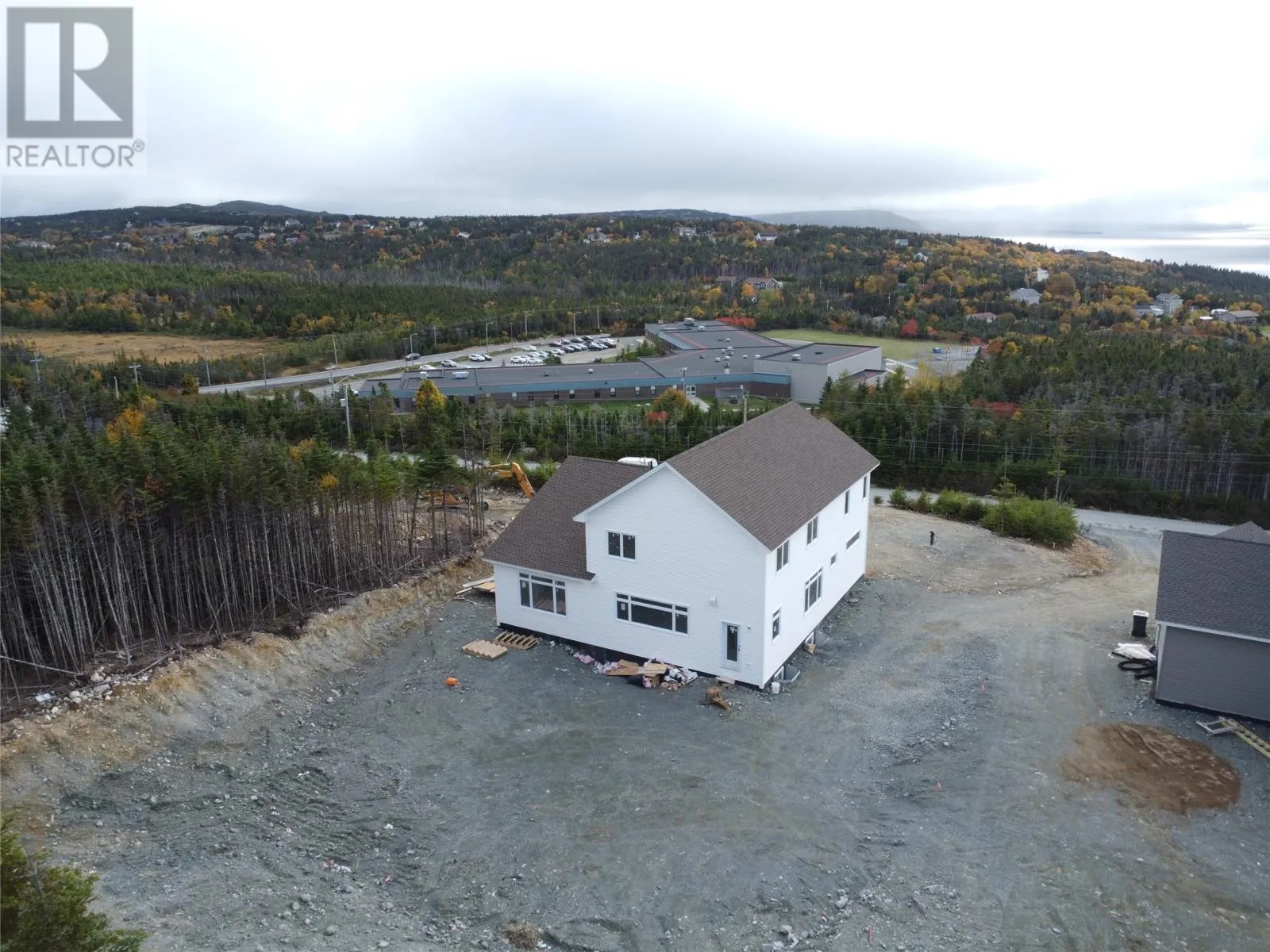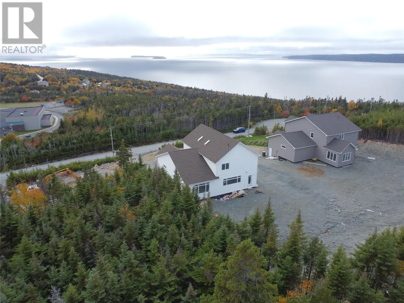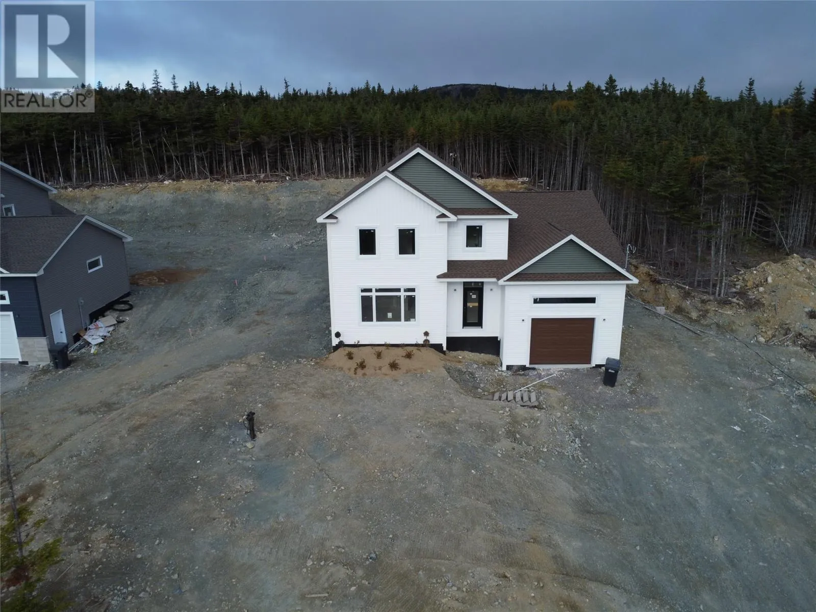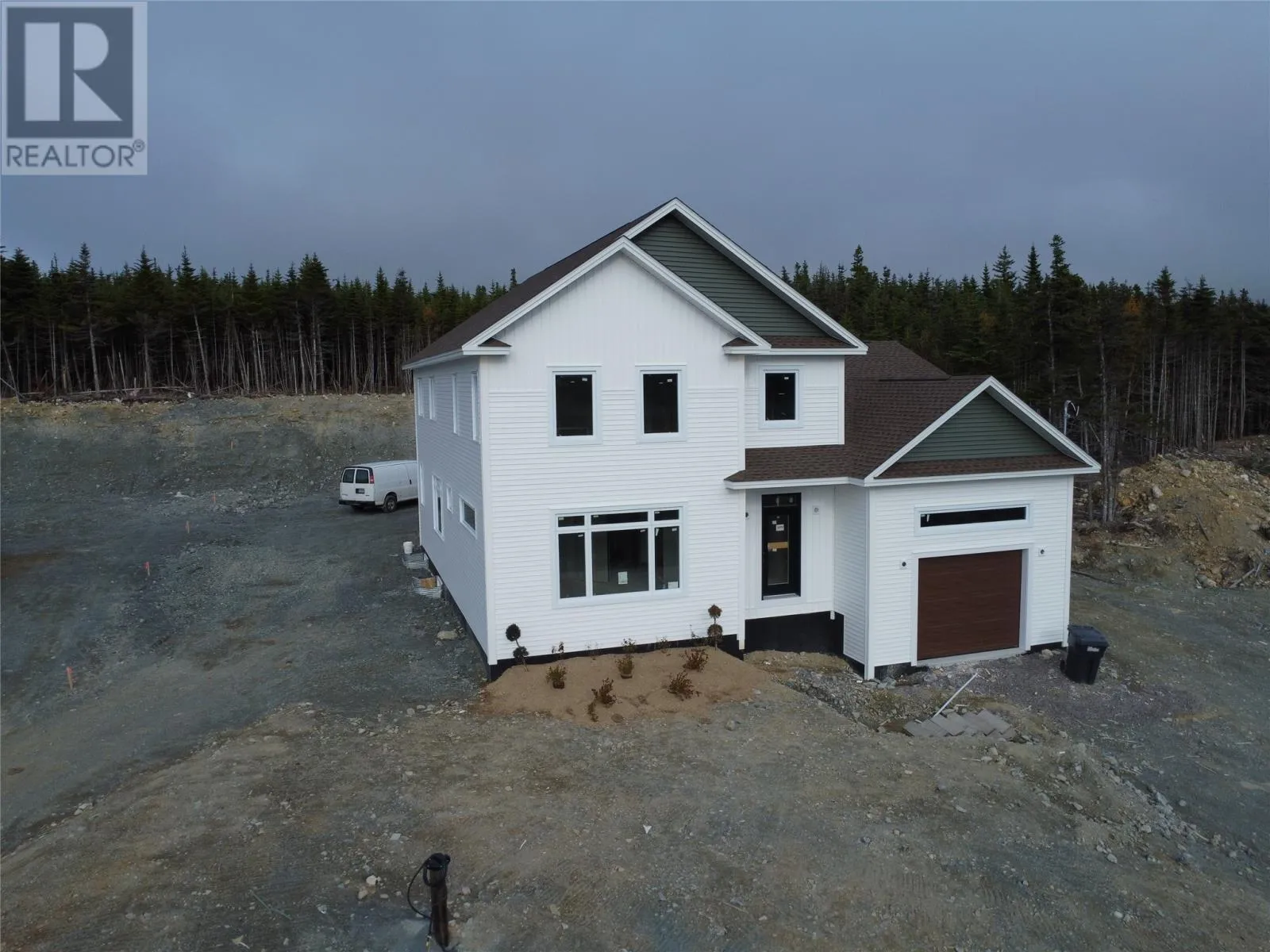 Absolutely stunning 2-storey NP Homes residence, ideally located on a quiet cul-de-sac in a family-friendly neighborhood, offering breathtaking ocean vistas! This newly constructed family home sits on a generously sized lot, providing privacy, panoramic ocean & tree views, & ample parking with potential for side driveway access to the rearâperfect for a future detached garage or additional drive-in access. The inviting front porch & foyer lead into a bright, thoughtfully designed interior, featuring abundant windows that flood the space with natural light & frame the surrounding scenery. The main floor impresses with 9-foot ceilings & spacious open-concept living, dining, & kitchen areas. The living room has a vaulted ceiling & is anchored by a propane fireplace with custom mantle, tile surround, & detailed millwork, while the gourmet kitchen showcases quartz countertops, ceiling-height cabinetry, a large sit-up island, stylish backsplash, & stainless steel appliance package, with an adjoining walk-in pantry with sink & abundant storage & dining area. Completing the main level are a dedicated large office, powder room, foyer & a convenient mudroom with laundry. Upstairs, the hardwood staircase leads to 4 generous bedrooms & a main family bath. The primary suite offers stunning views & features an elegant accent wall, walk-in closet, & spa-inspired ensuite with freestanding soaker tub, double quartz vanity, & custom shower. The large unfinished basement presents endless possibilities for future development. Additional features include a double paved driveway & an 8-year Lux Home Warranty. This exceptional property blends high-quality finishes such as upgraded electrical & plumbing fixture packages, oak hardwood floors, in-floor heat in ensuite & pantry, custom cabinetry throughout, as well as spectacular ocean views, direct access to the East Coast Trail, & a prime cul-de-sac location situated adjacent to elementary school. Truly a must-see! (id:27476)