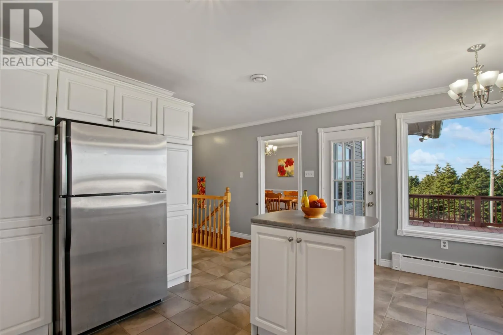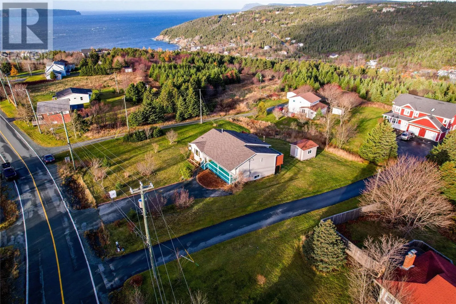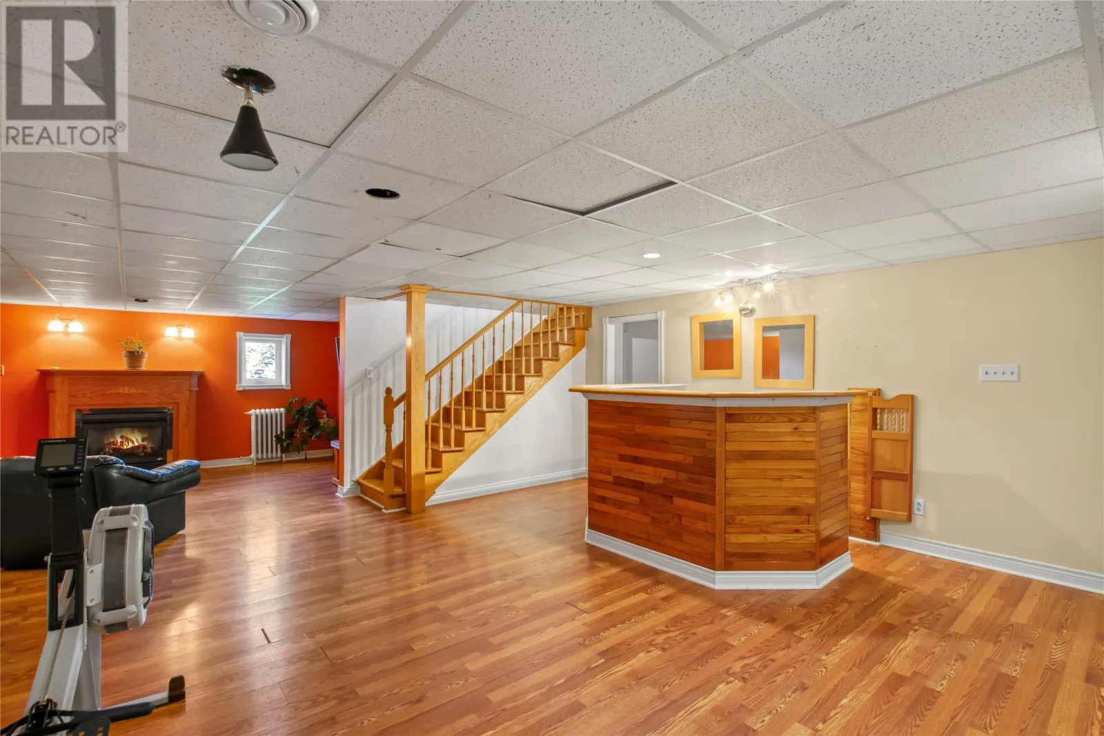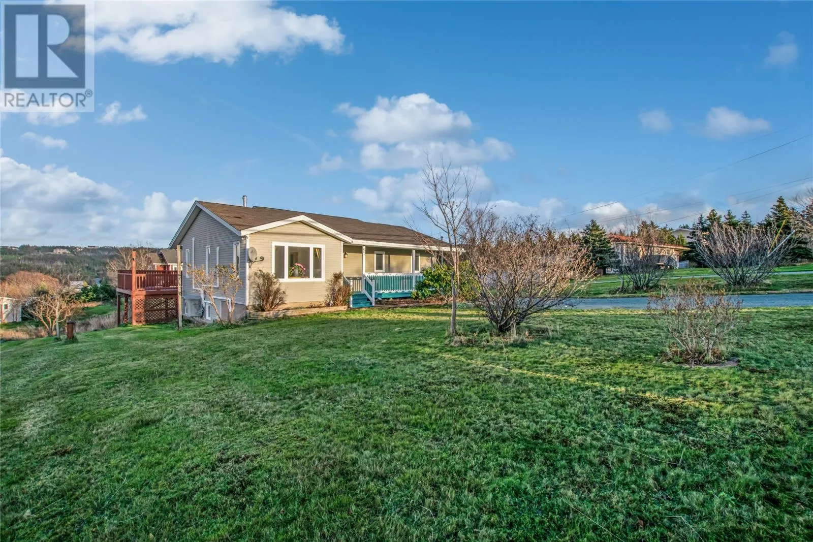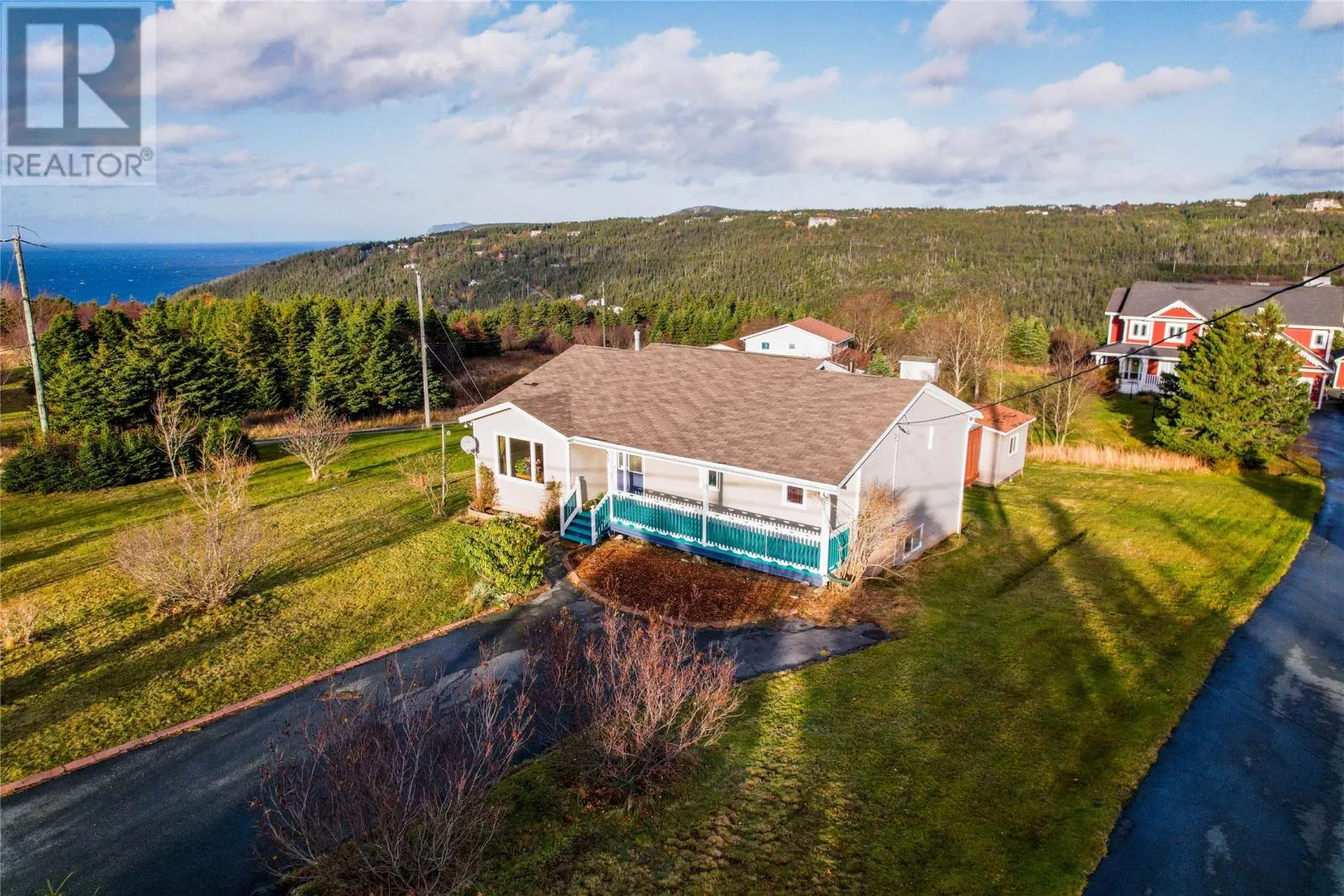 Located in a sought-after, family-friendly area of Portugal CoveâSt. Philips, this well-maintained bungalow offers space, comfort, and charm with oversized windows throughout, filling the interior with natural light and frame stunning ocean views toward Bell Island and Conception Bay South! The bright and spacious main floor features a welcoming layout, including a large living room with recently updated hardwood flooring and a dual-sided propane fireplace shared with the separate dining room. The eat-in kitchen includes an adjoining laundry/pantry room for added convenience, along with direct access to the expansive rear patio and gardenâperfect for entertaining or relaxing outdoors. The main level includes three spacious bedrooms and a main family bathroom with a double vanity. The primary bedroom boasts a private ensuite and direct access to its own patio with a hot tub. The fully developed walk-out basement offers plenty of additional living space, featuring a large rec room with a wet bar and fireplace, two additional bedrooms, an office, powder room, and ample storage. Enjoy the comfort and efficiency of hot water radiation heat, complemented by a newly installed 3-head mini-split system for year-round temperature control. Other recent updates include a new electrical panel and hot tub (2022). Situated on a large, private lot set back from the road, this property combines peaceful surroundings with a convenient locationâan exceptional opportunity to enjoy coastal living in one of Portugal CoveâSt. Philipsâ most desirable neighborhoods. Don't wait! No conveyence of offers until Tuesday, November 18, 2025 @ 12:00pm (noon) and left open for acceptance until 5:00pm the same day (id:27476)