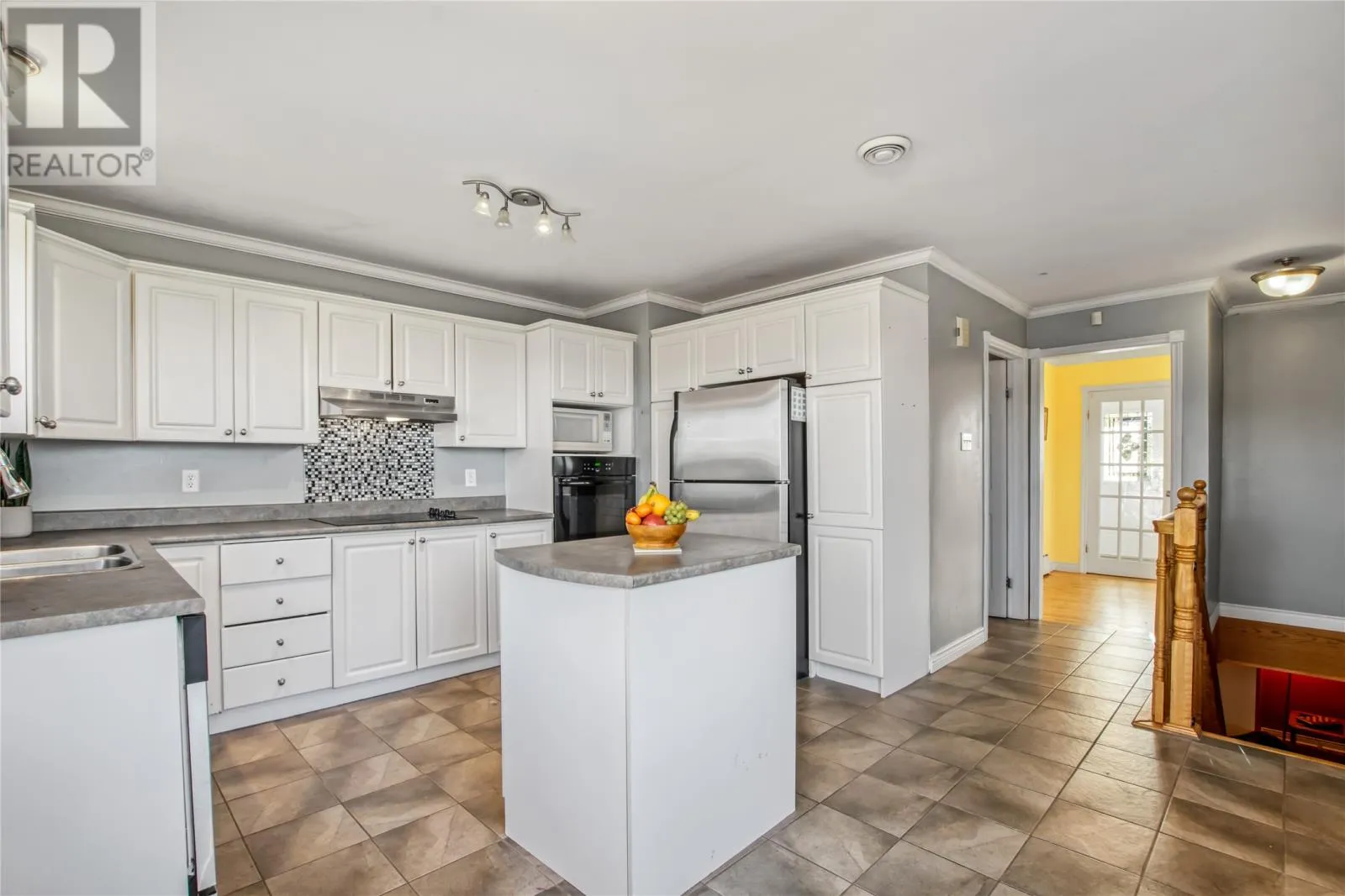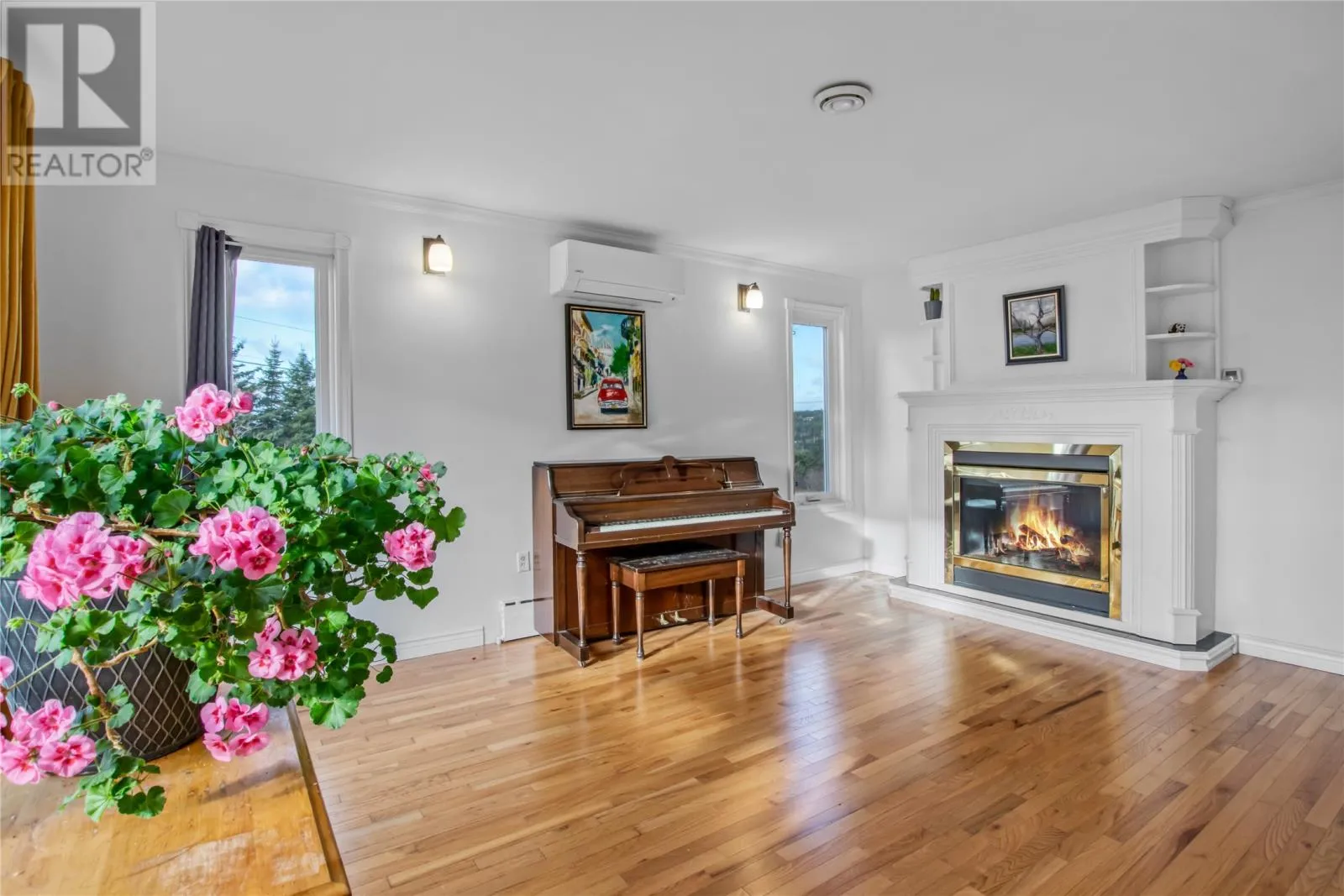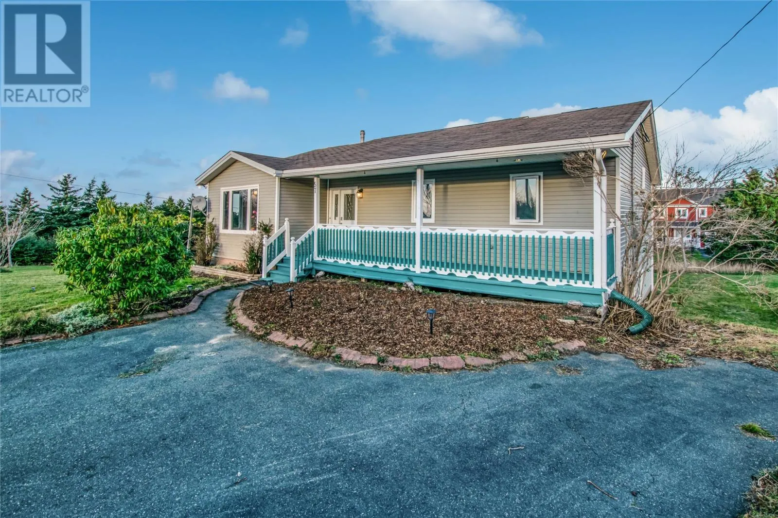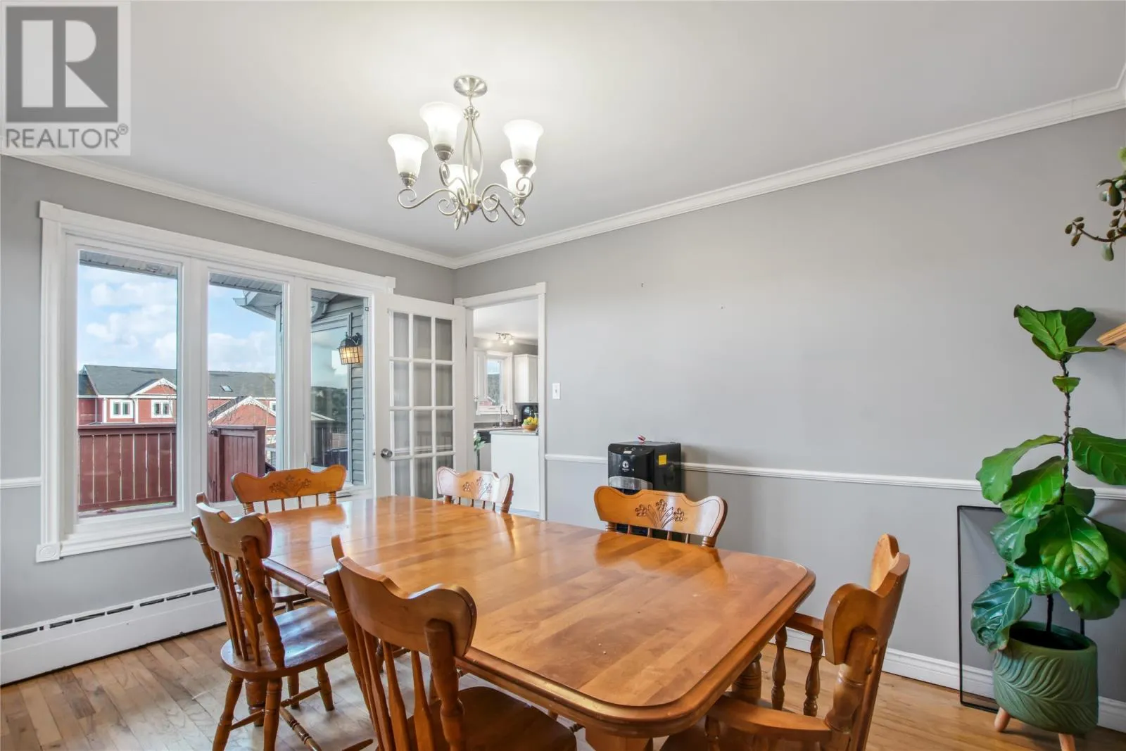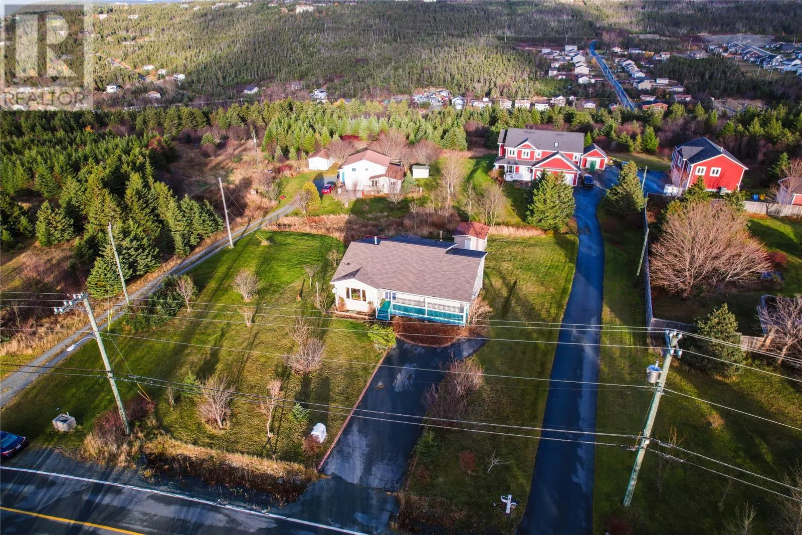 Located in a sought-after, family-friendly area of Portugal CoveâSt. Philips, this well-maintained bungalow offers space, comfort, and charm with oversized windows throughout, filling the interior with natural light and frame stunning ocean views toward Bell Island and Conception Bay South! The bright and spacious main floor features a welcoming layout, including a large living room with recently updated hardwood flooring and a dual-sided propane fireplace shared with the separate dining room. The eat-in kitchen includes an adjoining laundry/pantry room for added convenience, along with direct access to the expansive rear patio and gardenâperfect for entertaining or relaxing outdoors. The main level includes three spacious bedrooms and a main family bathroom with a double vanity. The primary bedroom boasts a private ensuite and direct access to its own patio with a hot tub. The fully developed walk-out basement offers plenty of additional living space, featuring a large rec room with a wet bar and fireplace, two additional bedrooms, an office, powder room, and ample storage. Enjoy the comfort and efficiency of hot water radiation heat, complemented by a newly installed 3-head mini-split system for year-round temperature control. Other recent updates include a new electrical panel and hot tub (2022). Situated on a large, private lot set back from the road, this property combines peaceful surroundings with a convenient locationâan exceptional opportunity to enjoy coastal living in one of Portugal CoveâSt. Philipsâ most desirable neighborhoods. Don't wait! No conveyence of offers until Tuesday, November 18, 2025 @ 12:00pm (noon) and left open for acceptance until 5:00pm the same day (id:27476)