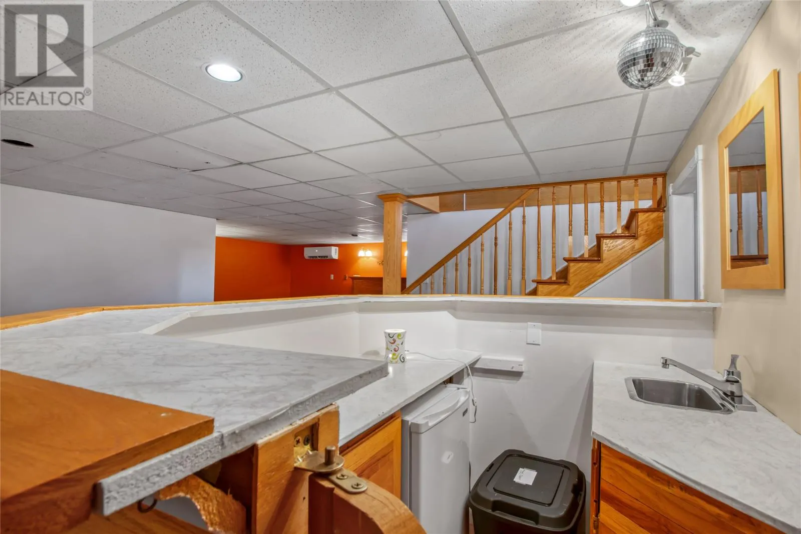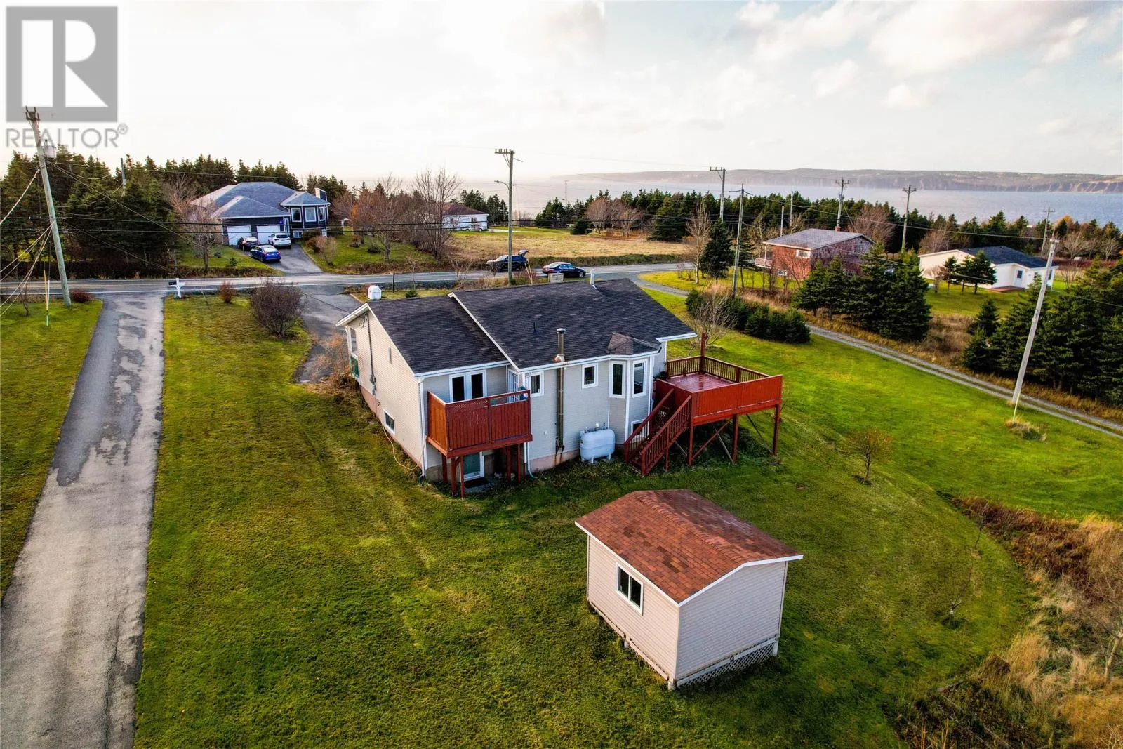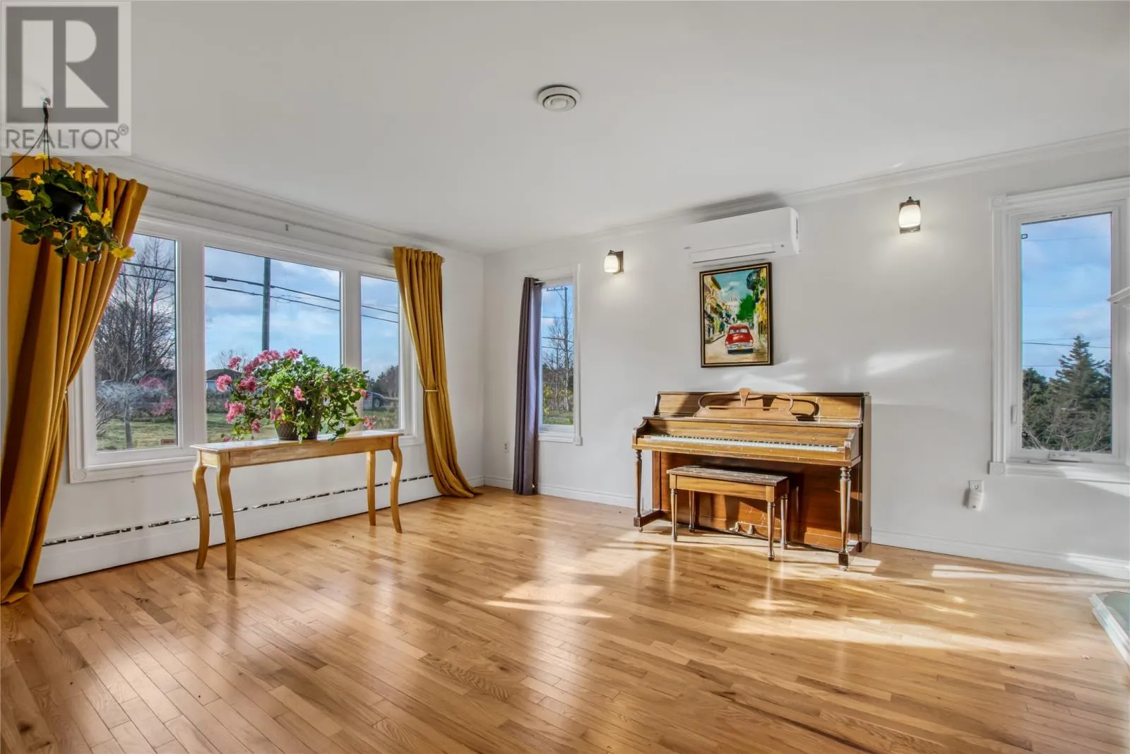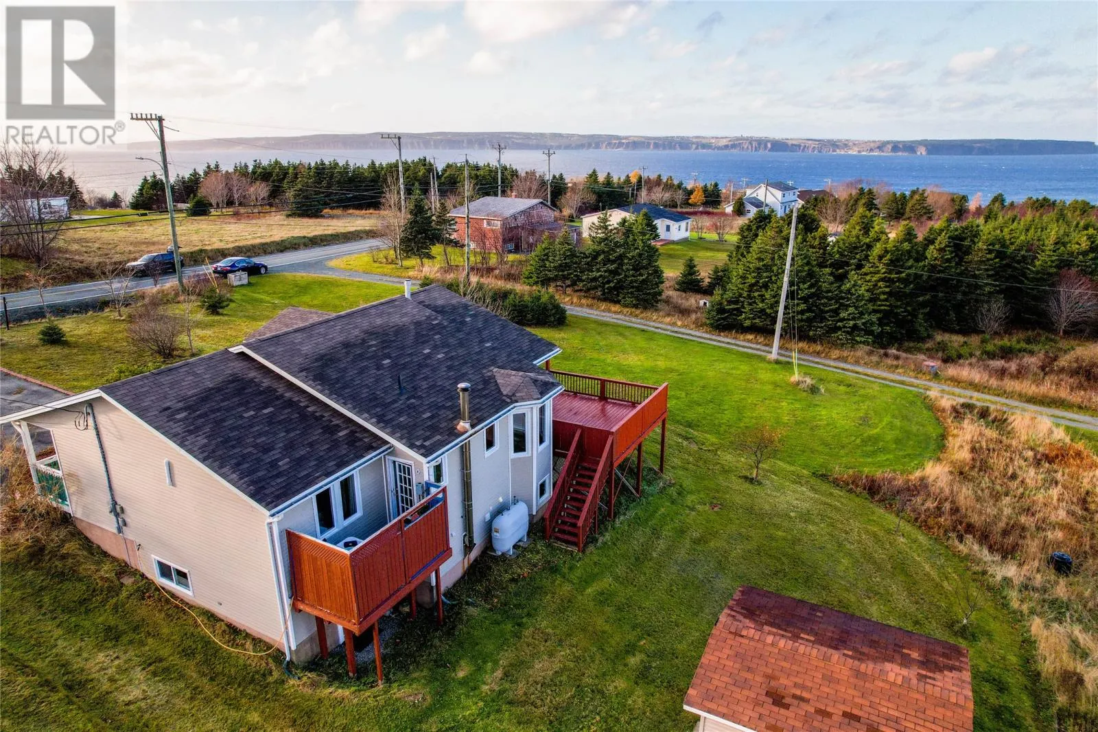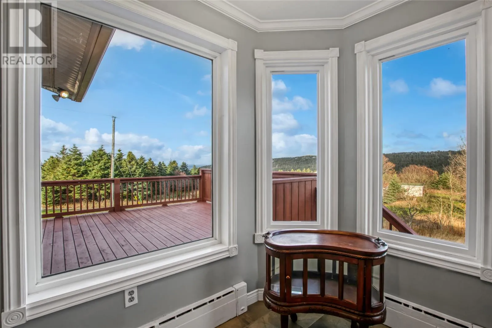 Located in a sought-after, family-friendly area of Portugal CoveâSt. Philips, this well-maintained bungalow offers space, comfort, and charm with oversized windows throughout, filling the interior with natural light and frame stunning ocean views toward Bell Island and Conception Bay South! The bright and spacious main floor features a welcoming layout, including a large living room with recently updated hardwood flooring and a dual-sided propane fireplace shared with the separate dining room. The eat-in kitchen includes an adjoining laundry/pantry room for added convenience, along with direct access to the expansive rear patio and gardenâperfect for entertaining or relaxing outdoors. The main level includes three spacious bedrooms and a main family bathroom with a double vanity. The primary bedroom boasts a private ensuite and direct access to its own patio with a hot tub. The fully developed walk-out basement offers plenty of additional living space, featuring a large rec room with a wet bar and fireplace, two additional bedrooms, an office, powder room, and ample storage. Enjoy the comfort and efficiency of hot water radiation heat, complemented by a newly installed 3-head mini-split system for year-round temperature control. Other recent updates include a new electrical panel and hot tub (2022). Situated on a large, private lot set back from the road, this property combines peaceful surroundings with a convenient locationâan exceptional opportunity to enjoy coastal living in one of Portugal CoveâSt. Philipsâ most desirable neighborhoods. Don't wait! No conveyence of offers until Tuesday, November 18, 2025 @ 12:00pm (noon) and left open for acceptance until 5:00pm the same day (id:27476)