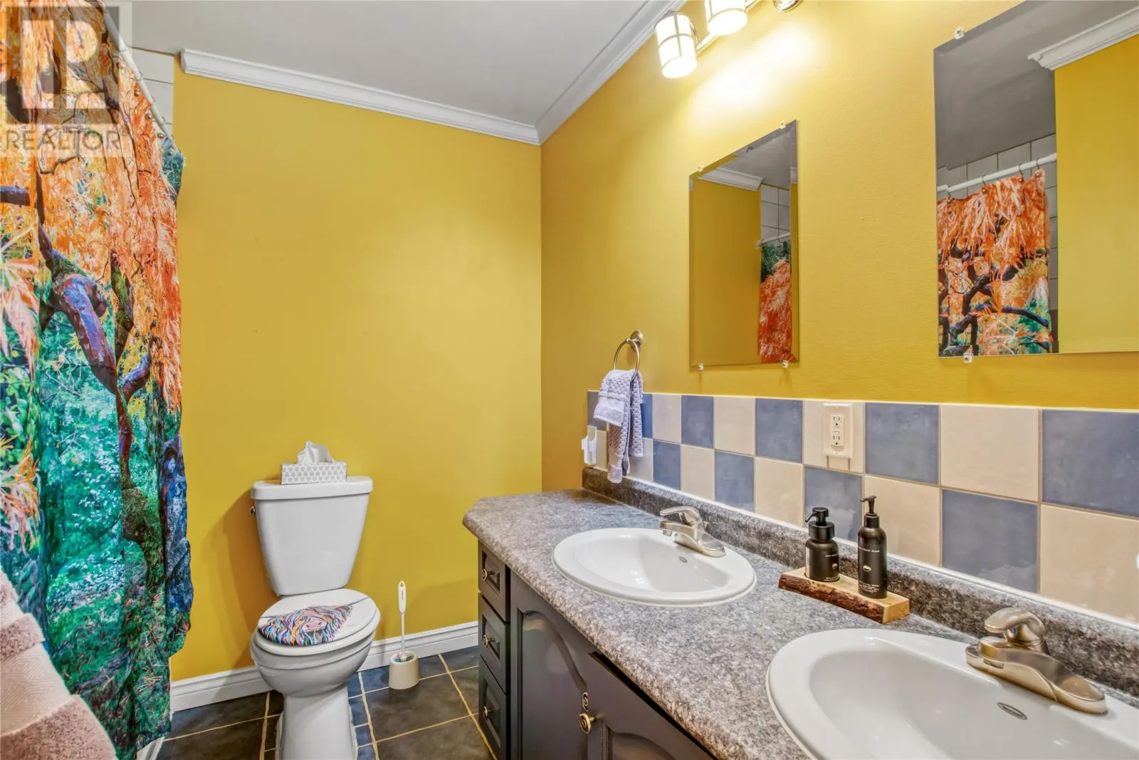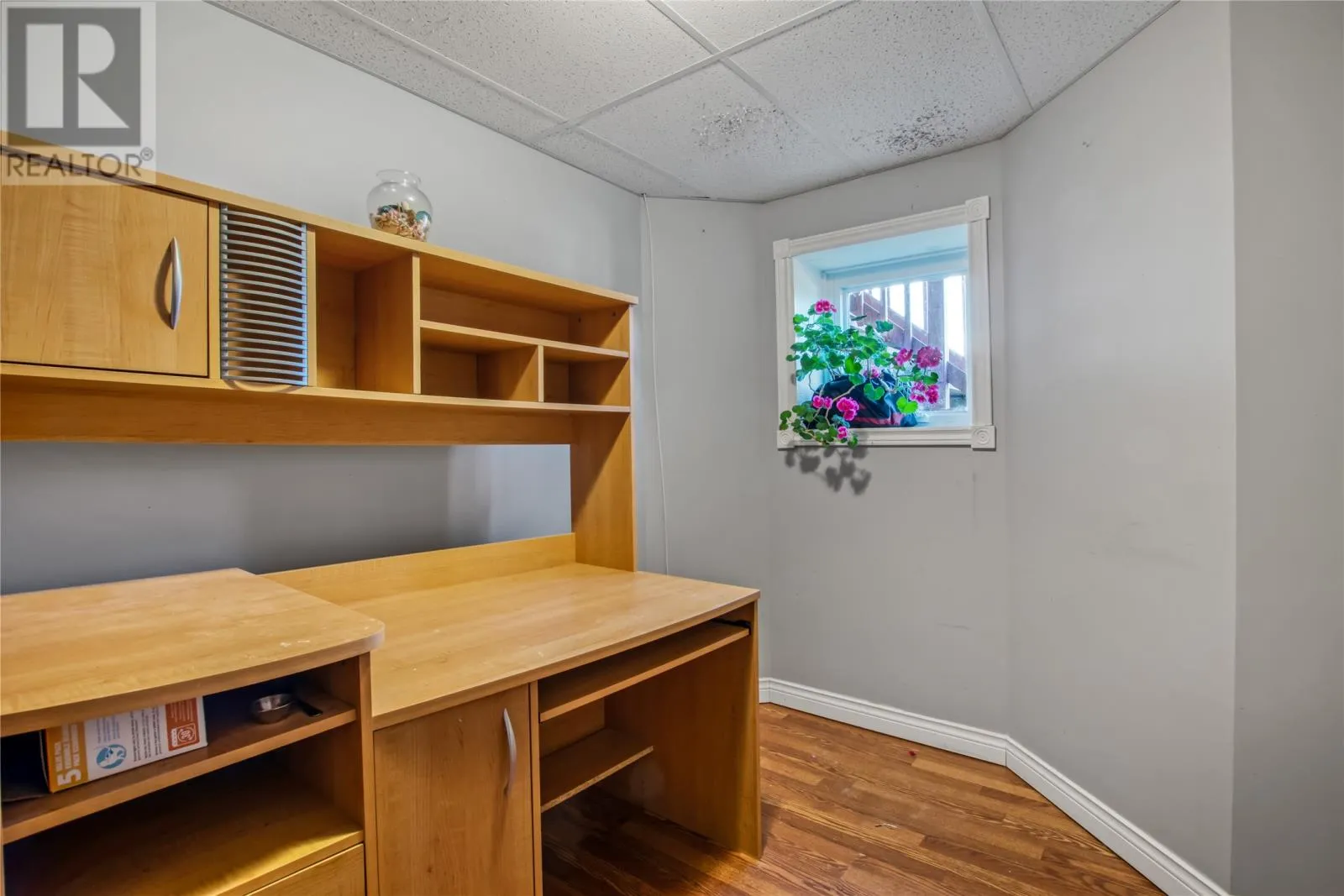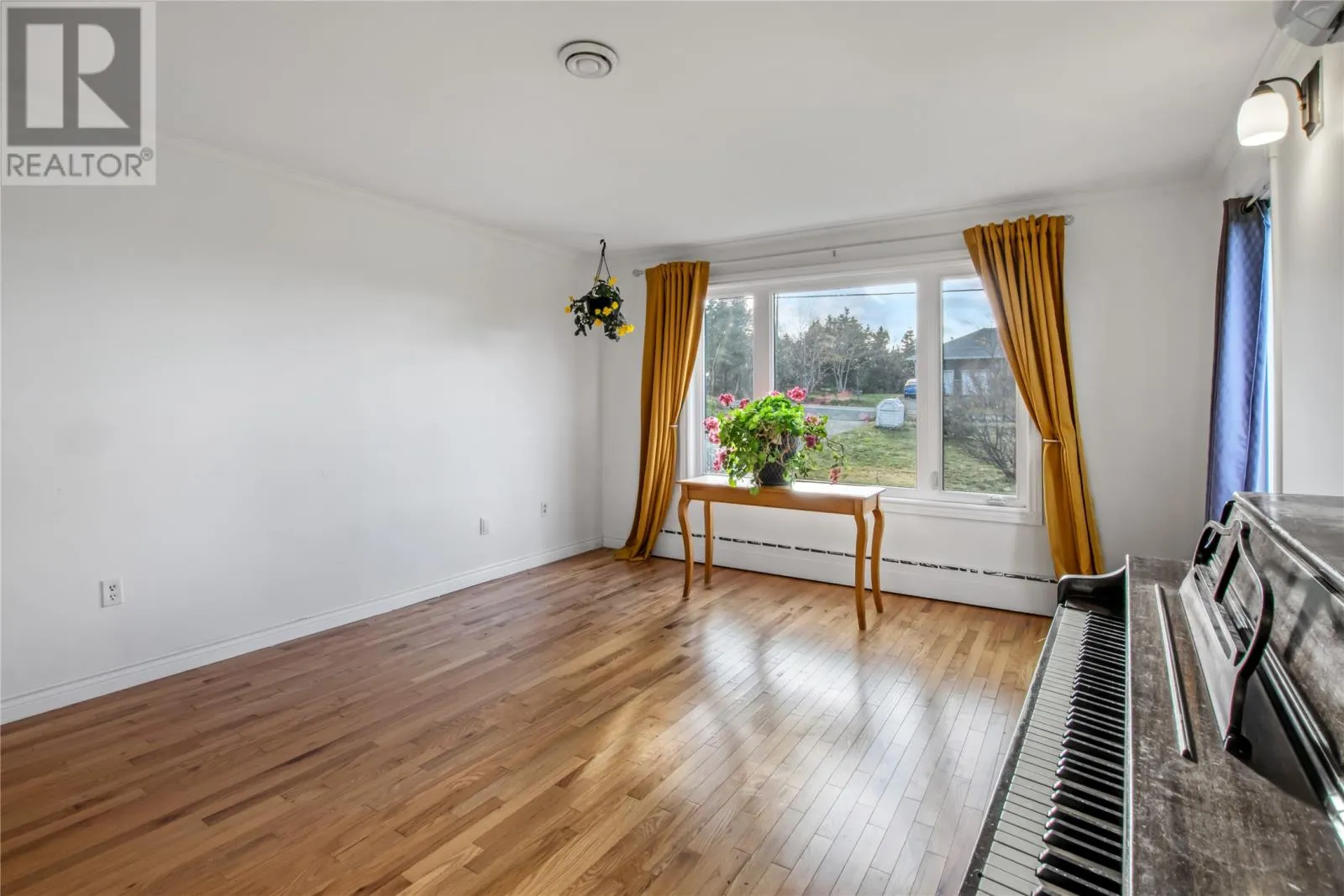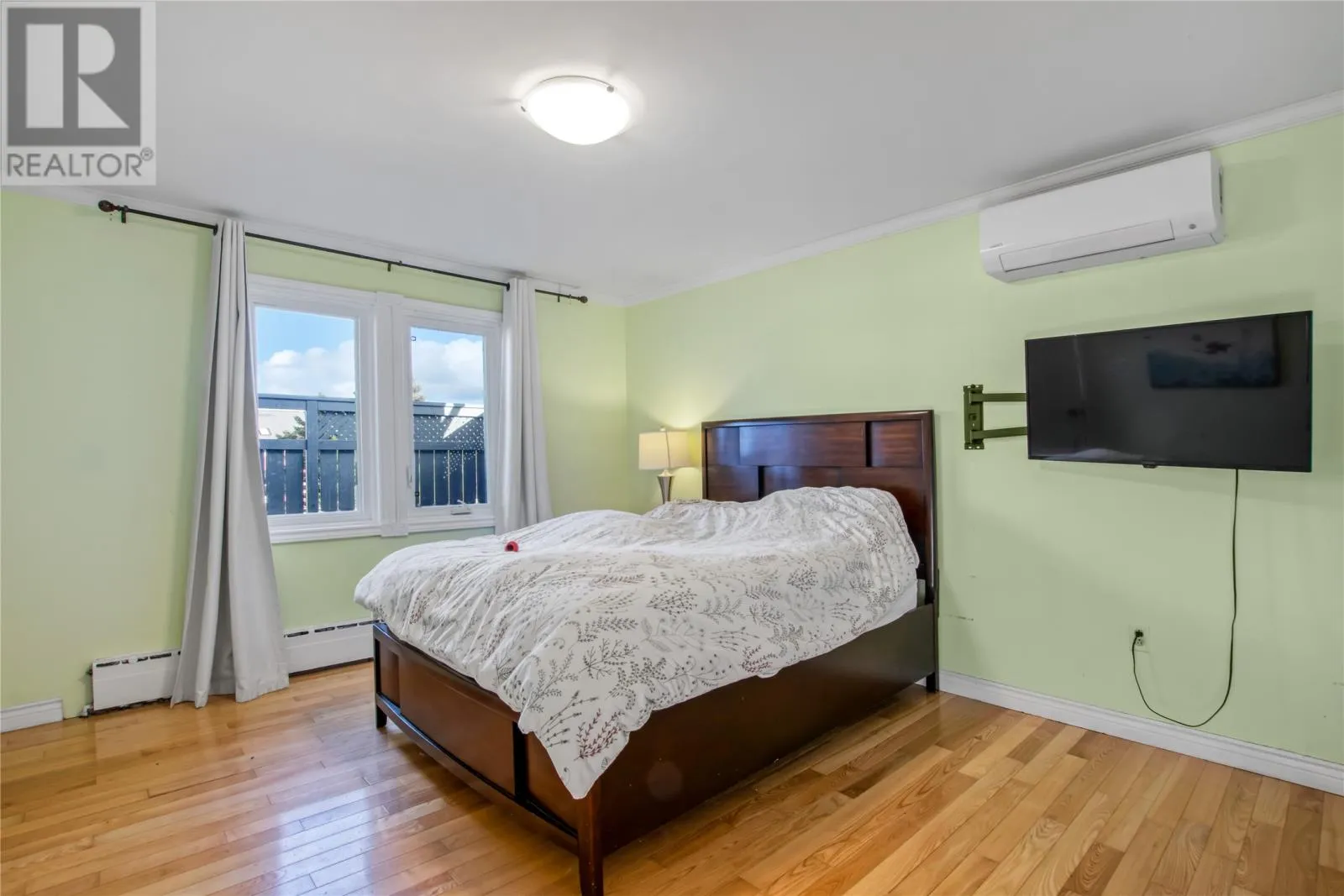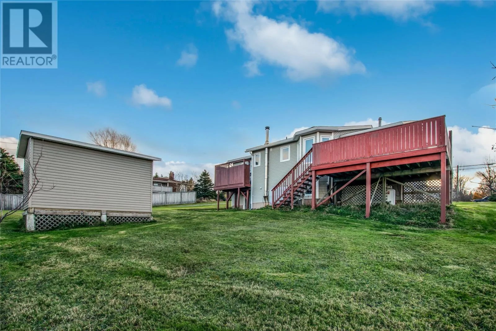 Located in a sought-after, family-friendly area of Portugal CoveâSt. Philips, this well-maintained bungalow offers space, comfort, and charm with oversized windows throughout, filling the interior with natural light and frame stunning ocean views toward Bell Island and Conception Bay South! The bright and spacious main floor features a welcoming layout, including a large living room with recently updated hardwood flooring and a dual-sided propane fireplace shared with the separate dining room. The eat-in kitchen includes an adjoining laundry/pantry room for added convenience, along with direct access to the expansive rear patio and gardenâperfect for entertaining or relaxing outdoors. The main level includes three spacious bedrooms and a main family bathroom with a double vanity. The primary bedroom boasts a private ensuite and direct access to its own patio with a hot tub. The fully developed walk-out basement offers plenty of additional living space, featuring a large rec room with a wet bar and fireplace, two additional bedrooms, an office, powder room, and ample storage. Enjoy the comfort and efficiency of hot water radiation heat, complemented by a newly installed 3-head mini-split system for year-round temperature control. Other recent updates include a new electrical panel and hot tub (2022). Situated on a large, private lot set back from the road, this property combines peaceful surroundings with a convenient locationâan exceptional opportunity to enjoy coastal living in one of Portugal CoveâSt. Philipsâ most desirable neighborhoods. Don't wait! No conveyence of offers until Tuesday, November 18, 2025 @ 12:00pm (noon) and left open for acceptance until 5:00pm the same day (id:27476)