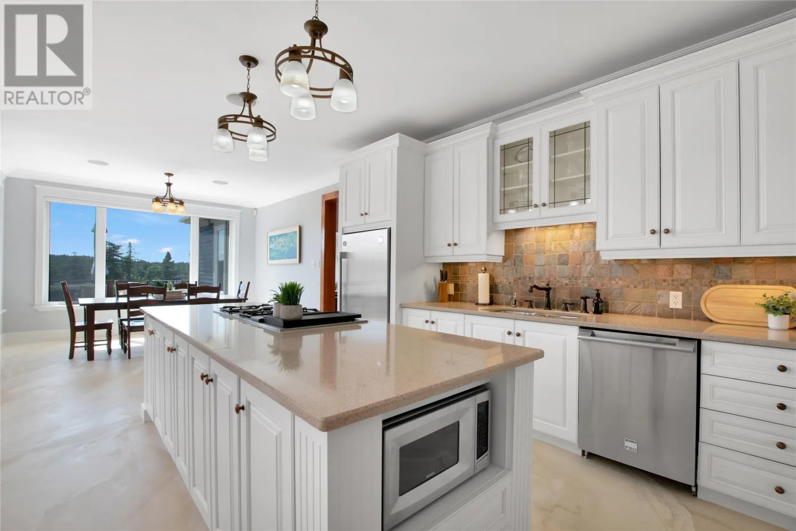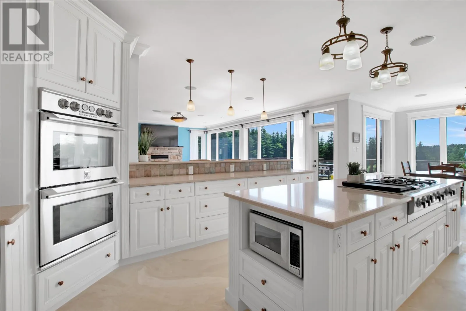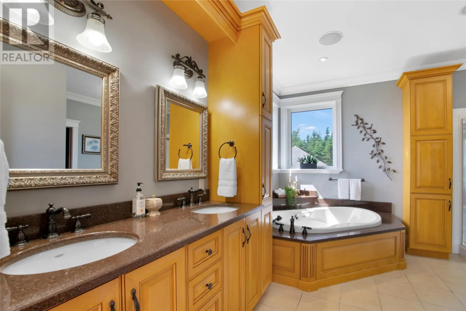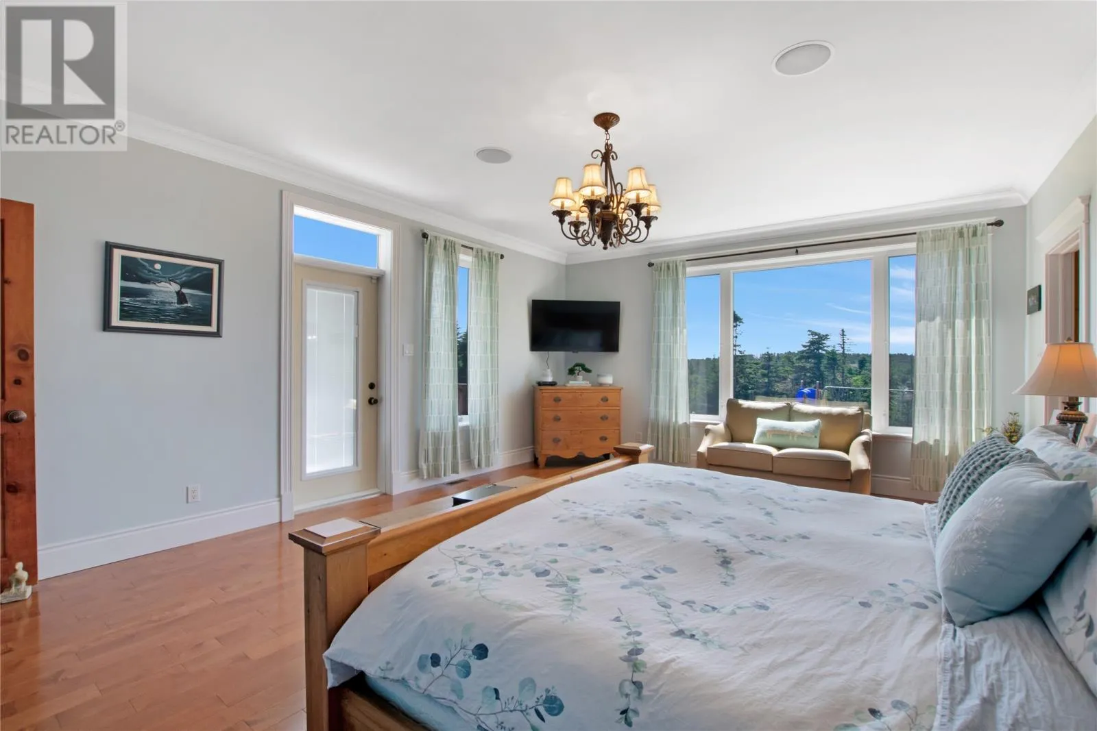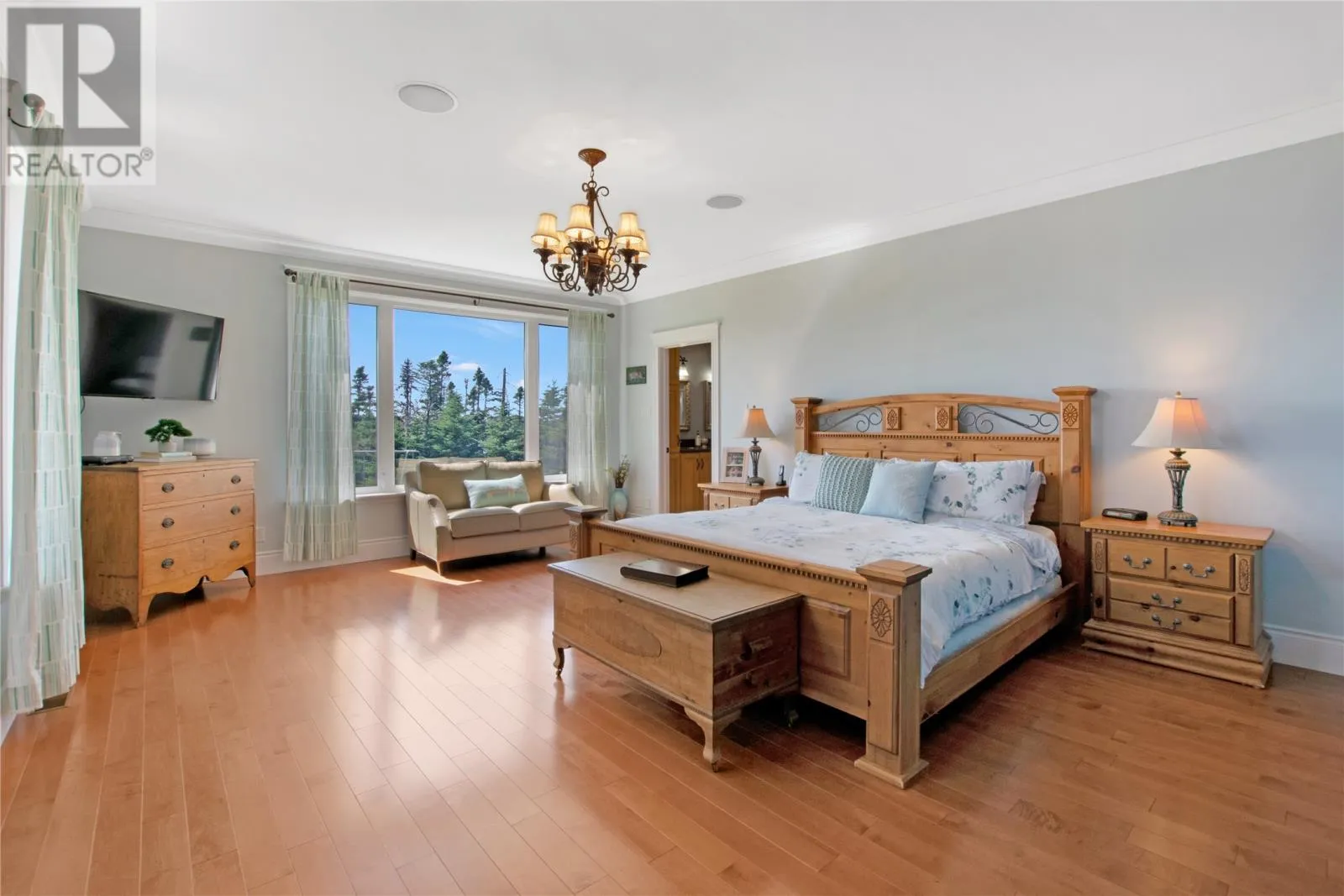 The finest of country living, only 15 minutes drive from the city! Careful consideration was used while developing this estate style property, situated on an over 2.5 acre, private, professionally landscaped lot with over 200ft of water frontage on Oliver's Pond. This custom built, executive bungalow was designed for functional family living while keeping entertaining in mind. The welcoming entry & foyer lead to the stunning great room, featuring cozy wood burning f/p & a wall of glass overlooking the rear grounds & pond. The gourmet timeless white eat-in kitchen, with dining area, is a true chef's delight with sit up penninsula, large centre island, solid surface counter tops & backsplash, professional series appliances with gas cooktop, walk-in pantry, & wet bar leading to the formal dining room & home office with built-ins just off the front foyer. The impressive primary suite is a true retreat with walk-in closet & spa-inspired ensuite with jetted tub, double vanity, separate shower & toilet closet. Ideal for privacy & convenience, a family room opens to three additional well-proportioned bedrooms with walk-in closets, jack-and-jill ensuite & main bathroom. An oversized 2 car garage leads to a mudroom, with laundry, walk-in closet & powder room. The ultmiate layout for family living! The massive fully developed lower level is wide open & consists of an entertainment area, games space, home gym, full bath, utility room & an additional 2-bay garage. The basement lends itself to reconfigure as separate rooms, if desired, & the basement garage could easily be converted to a nanny/care taker's suite. Low maintenance exterior is finished in Cape Cod siding. This home is finished with all the extras including; energy efficient heat pumps for heating & cooling, 9ft ceilings throughout the main floor, luxurious finishes, detached garage, outdoor fireplace, large patio deck with glass railing & hot tub, stamped concrete, & ample parking, just to name a few. A must see! (id:27476)