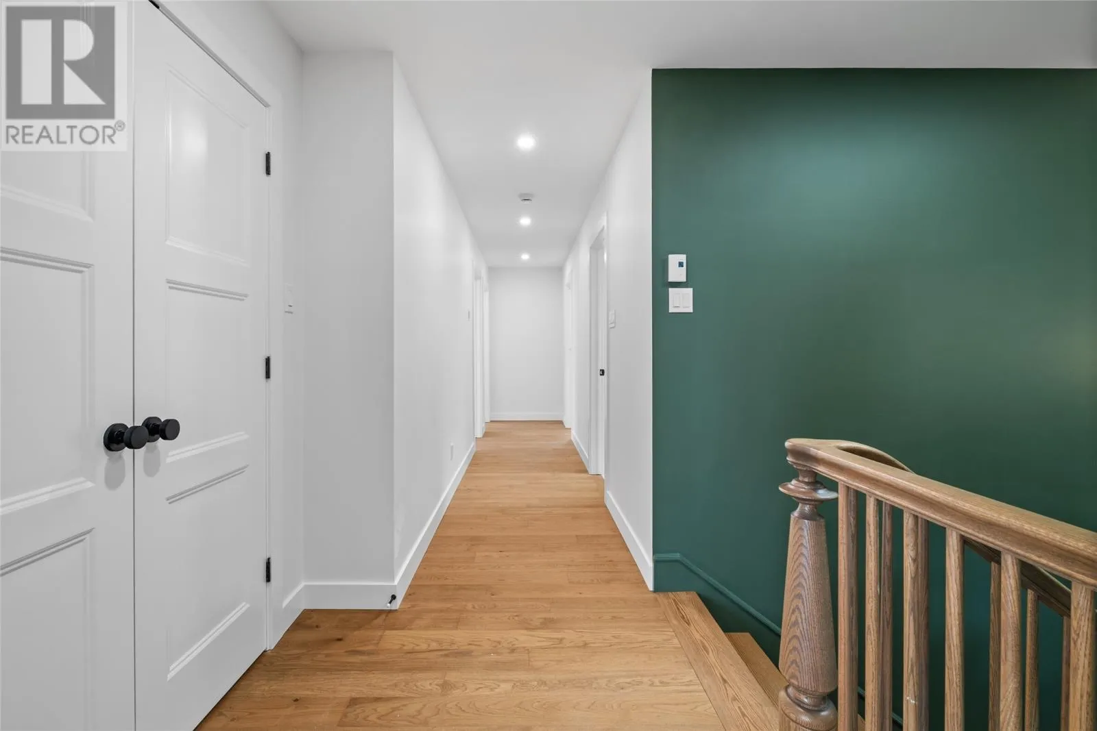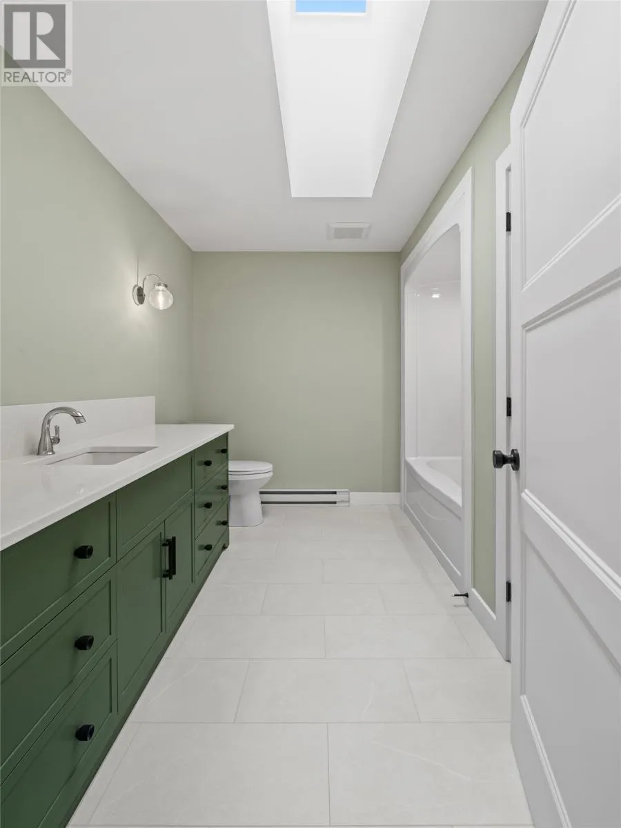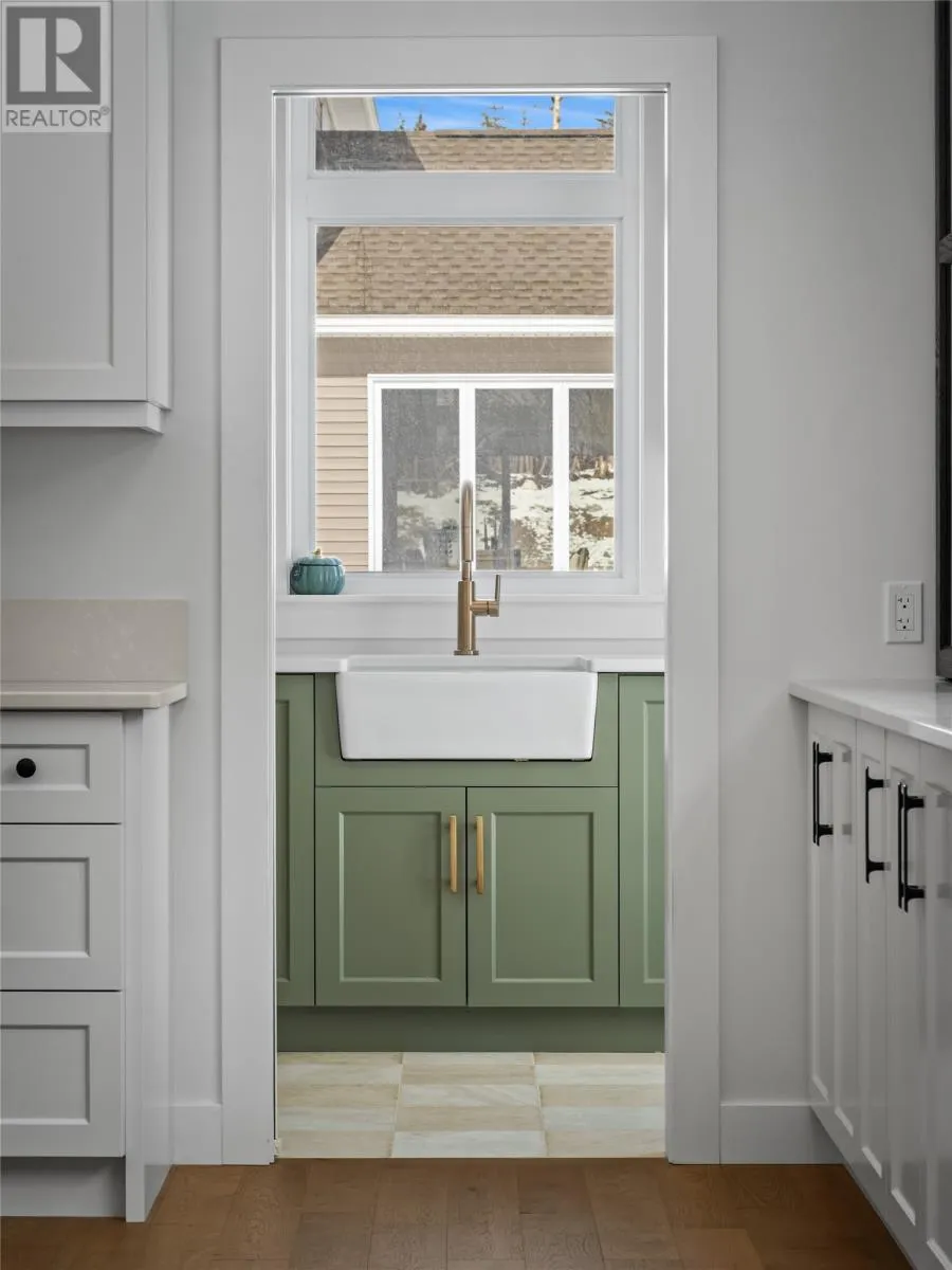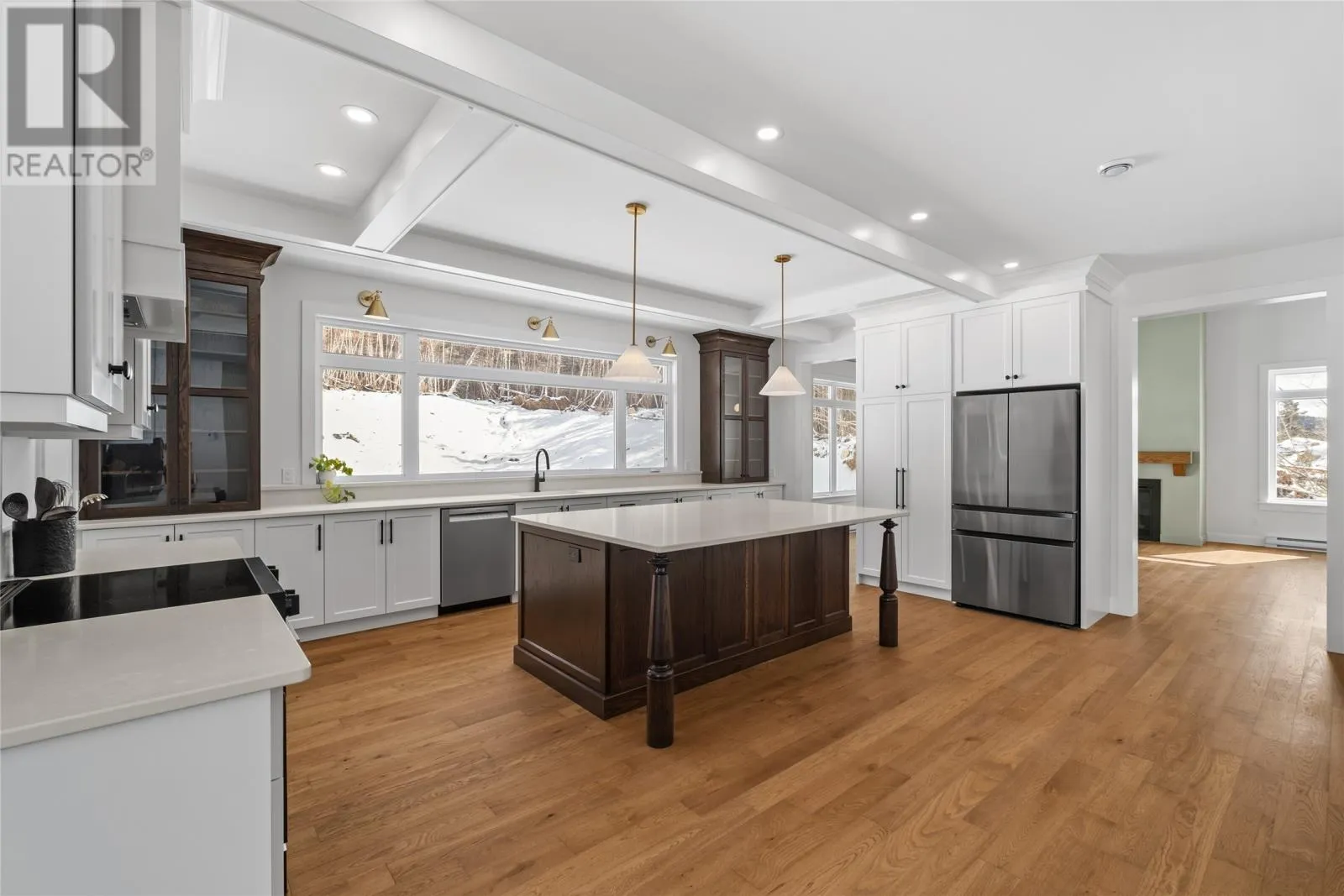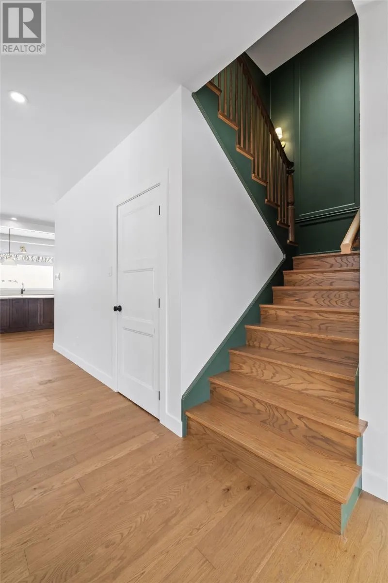 Absolutely stunning 2-storey NP Homes residence, ideally located on a quiet cul-de-sac in a family-friendly neighborhood, offering breathtaking ocean vistas! This newly constructed family home sits on a generously sized lot, providing privacy, panoramic ocean & tree views, & ample parking with potential for side driveway access to the rearâperfect for a future detached garage or additional drive-in access. The inviting front porch & foyer lead into a bright, thoughtfully designed interior, featuring abundant windows that flood the space with natural light & frame the surrounding scenery. The main floor impresses with 9-foot ceilings & spacious open-concept living, dining, & kitchen areas. The living room has a vaulted ceiling & is anchored by a propane fireplace with custom mantle, tile surround, & detailed millwork, while the gourmet kitchen showcases quartz countertops, ceiling-height cabinetry, a large sit-up island, stylish backsplash, & stainless steel appliance package, with an adjoining walk-in pantry with sink & abundant storage & dining area. Completing the main level are a dedicated large office, powder room, foyer & a convenient mudroom with laundry. Upstairs, the hardwood staircase leads to 4 generous bedrooms & a main family bath. The primary suite offers stunning views & features an elegant accent wall, walk-in closet, & spa-inspired ensuite with freestanding soaker tub, double quartz vanity, & custom shower. The large unfinished basement presents endless possibilities for future development. Additional features include a double paved driveway & an 8-year Lux Home Warranty. This exceptional property blends high-quality finishes such as upgraded electrical & plumbing fixture packages, oak hardwood floors, in-floor heat in ensuite & pantry, custom cabinetry throughout, as well as spectacular ocean views, direct access to the East Coast Trail, & a prime cul-de-sac location situated adjacent to elementary school. Truly a must-see! (id:27476)