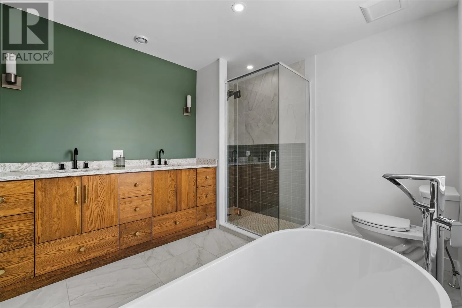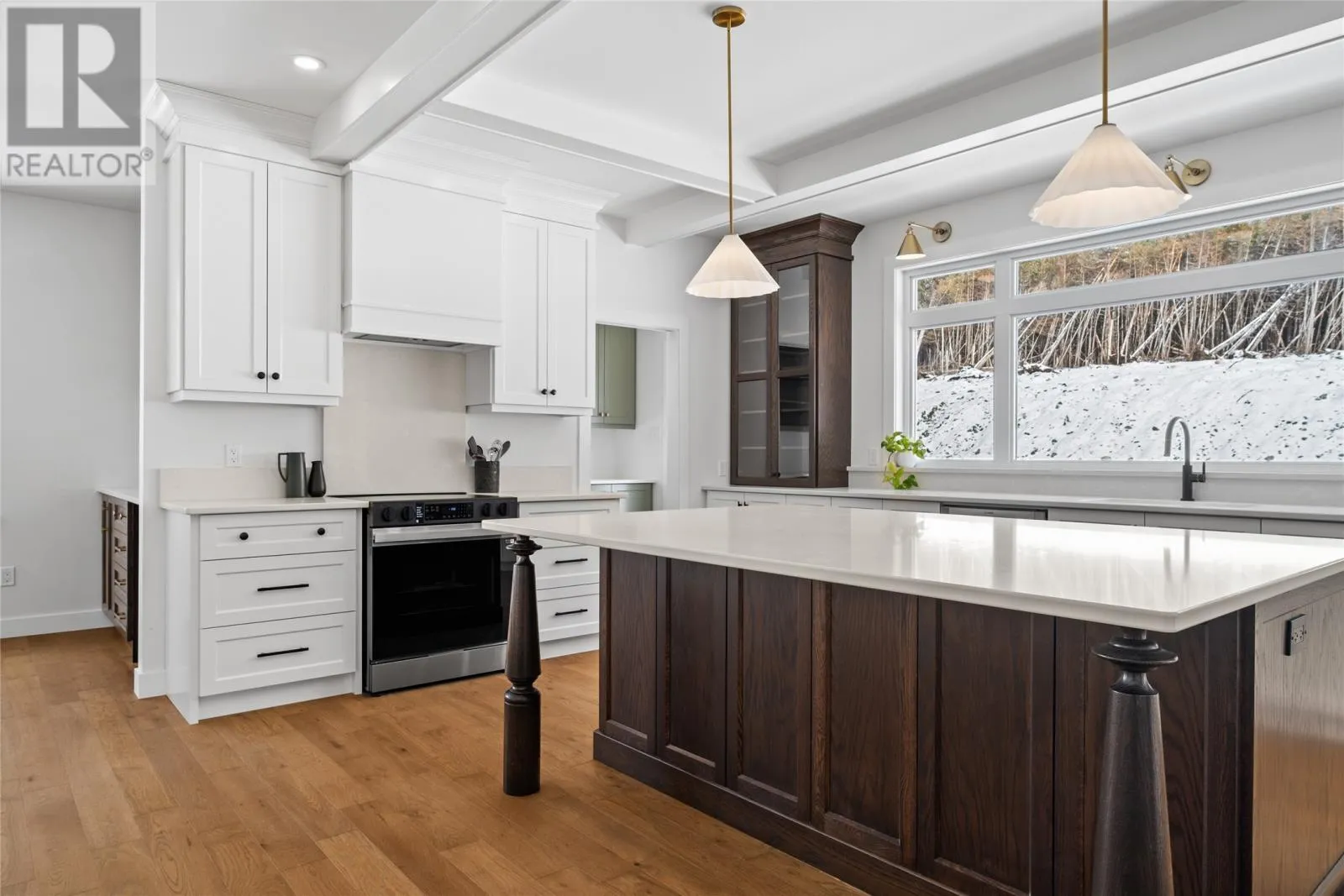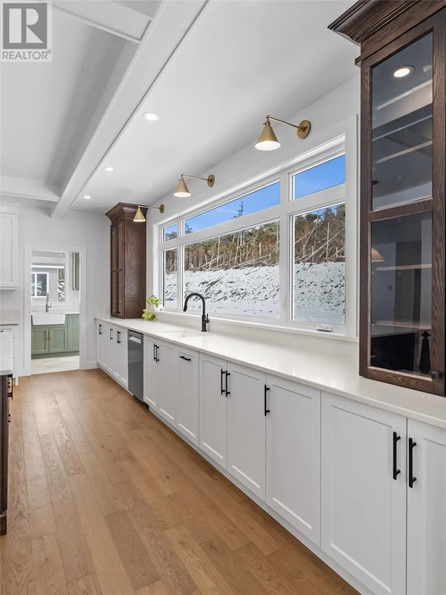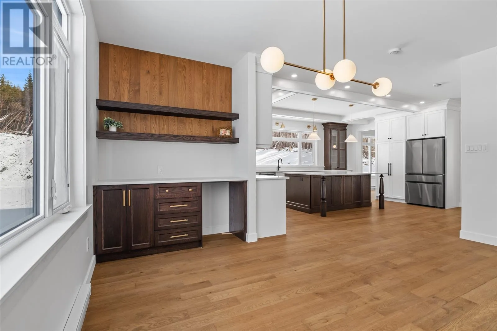 Absolutely stunning 2-storey NP Homes residence, ideally located on a quiet cul-de-sac in a family-friendly neighborhood, offering breathtaking ocean vistas! This newly constructed family home sits on a generously sized lot, providing privacy, panoramic ocean & tree views, & ample parking with potential for side driveway access to the rearâperfect for a future detached garage or additional drive-in access. The inviting front porch & foyer lead into a bright, thoughtfully designed interior, featuring abundant windows that flood the space with natural light & frame the surrounding scenery. The main floor impresses with 9-foot ceilings & spacious open-concept living, dining, & kitchen areas. The living room has a vaulted ceiling & is anchored by a propane fireplace with custom mantle, tile surround, & detailed millwork, while the gourmet kitchen showcases quartz countertops, ceiling-height cabinetry, a large sit-up island, stylish backsplash, & stainless steel appliance package, with an adjoining walk-in pantry with sink & abundant storage & dining area. Completing the main level are a dedicated large office, powder room, foyer & a convenient mudroom with laundry. Upstairs, the hardwood staircase leads to 4 generous bedrooms & a main family bath. The primary suite offers stunning views & features an elegant accent wall, walk-in closet, & spa-inspired ensuite with freestanding soaker tub, double quartz vanity, & custom shower. The large unfinished basement presents endless possibilities for future development. Additional features include a double paved driveway & an 8-year Lux Home Warranty. This exceptional property blends high-quality finishes such as upgraded electrical & plumbing fixture packages, oak hardwood floors, in-floor heat in ensuite & pantry, custom cabinetry throughout, as well as spectacular ocean views, direct access to the East Coast Trail, & a prime cul-de-sac location situated adjacent to elementary school. Truly a must-see! (id:27476)