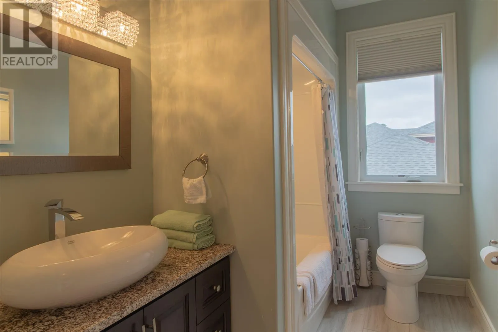 Welcome to 5 Blue Sky Drive! A breathtaking executive bungalow in the highly sought-after Oceanâs Edge Estates of St. Philipâs, offering panoramic ocean views, refined finishes, and endless versatility. Priced at $949,900, this move-in-ready home spans over 4,500 sq. ft. of meticulously crafted living space and sits on a beautifully landscaped, fully fenced 0.34-acre lot overlooking Conception Bay. Designed with comfort and functionality in mind, it perfectly balances elegance with everyday livability. Step inside to an open-concept main floor with vaulted ceilings, rich hardwood floors, and an abundance of natural light. The custom kitchen features Star Beach granite countertops, a walk-in pantry, oversized island, and high-end stainless-steel appliances, flowing seamlessly into the great room with a propane fireplace and floor-to-ceiling windows that frame stunning ocean sunsets. The spacious primary suite is a true retreat, offering its own private deck, walk-in closet, and spa-inspired ensuite with a soaker tub, double vanity, and glass rainfall shower. Two additional large bedrooms, a full bath, and main-floor laundry complete the level. The walk-out lower level offers incredible potential - already partially developed with a family room, hobby area, and bathroom, with the ability to easily convert into a full in-law suite, executive office, or income-generating apartment. Thoughtful extras include a pet spa with a dedicated wash station, a large workshop, in-floor heating, mini-split heat pumps, and an oversized double garage with paved parking for multiple vehicles. Most of the furniture can stay, making this an exceptional turnkey opportunity for buyers seeking convenience without compromise. Just 20 minutes from downtown St. Johnâs, this ocean-view property is ideal for executives, growing families, or multigenerational living. 5 Blue Sky Drive is more than a home-itâs a lifestyle of space, serenity, and sophistication on Newfoundlandâs beautiful coastline. (id:27476)
