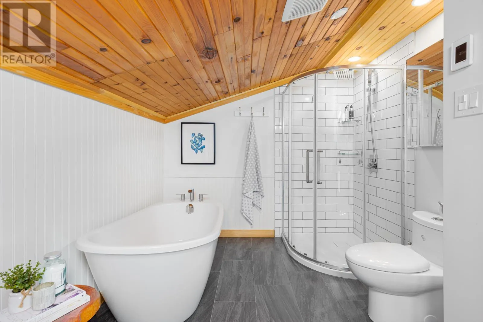 Set back from Tolt Road on a private, manicured 1 Acre lot, this impressive timber frame home is a suburban oasis just a few minutes drive from the city. The freshly paved driveway will lead you in from the road, past a newly constructed 20x30 double car garage with a loft, fully wired and insulated. Up entering the main house you will immediately be struck by the charm of the vaulted ceilings and exposed beams, the allure of the corner fireplace with stone surround in the main living room and sublime ocean views enjoyed from the loft that sits at the apex of a wall of south facing glazed windows. The expansize master suite features a newly remodeled bathroom, all levels benefit from the recent installation of a mini split heat pump system and the fully developed basement features a second bedroom and a great sized rec room. All of this on a maincured and tastefully landscaped lot in sought after St. Philips. (id:27476)