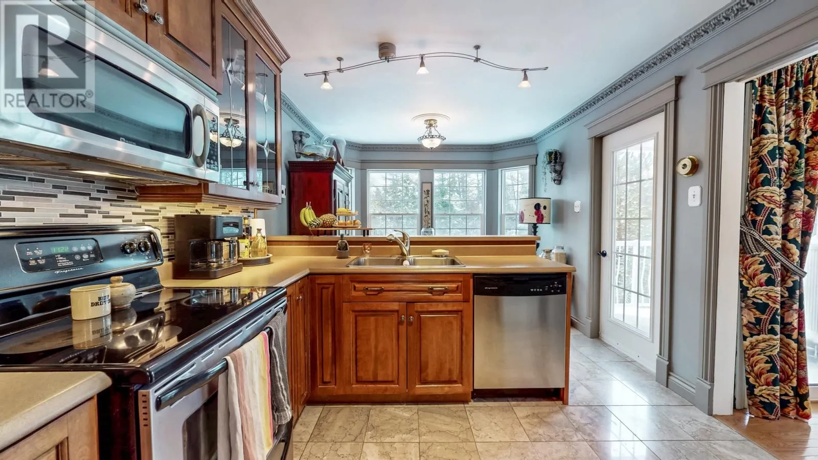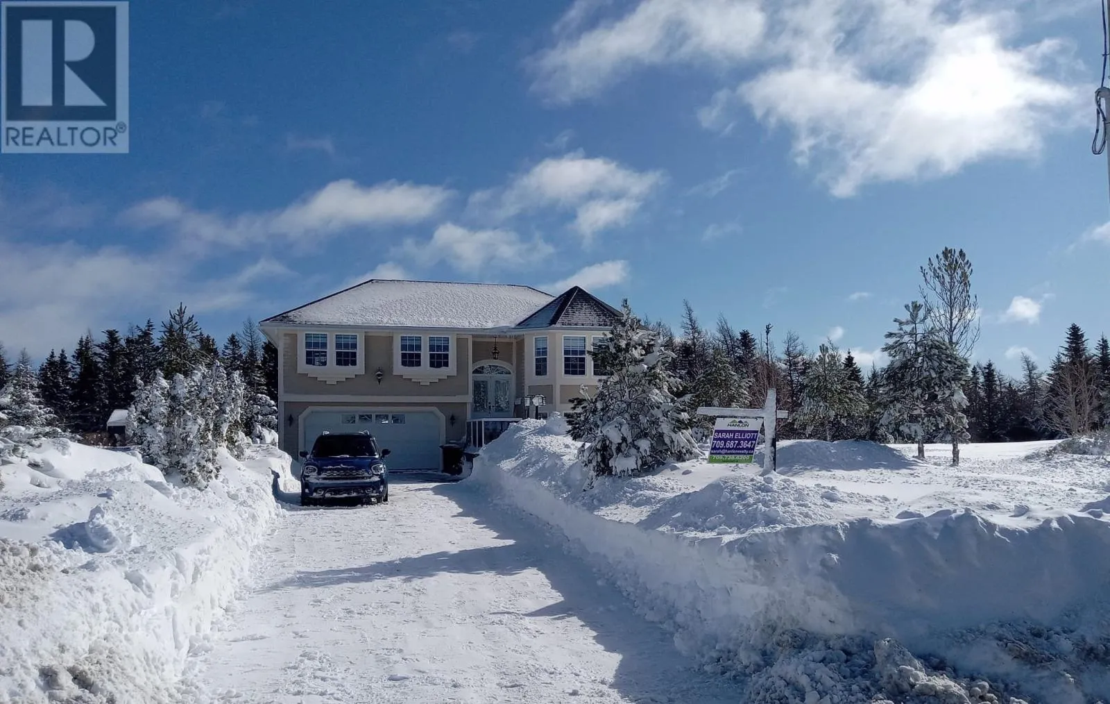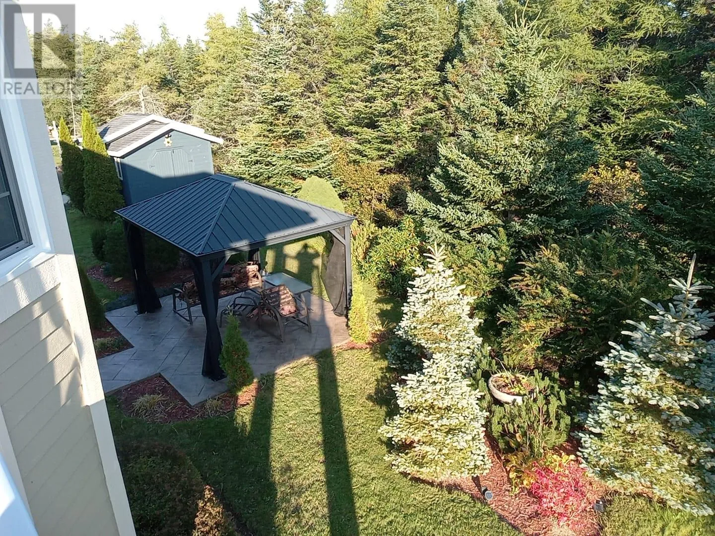 This cul-de-sac is tucked away off Windsor Heights in the scenic community of Portugal Cove, just 10 minutes from St. Johnâs. Here, tranquility, privacy, & pride of ownership come together on a stunning 1/2 acre, fully landscaped lot backing onto mature trees. This well maintained, fully developed split-entry bungalow offers 3 bedrooms & 3 bathrooms, thoughtfully constructed with 3/4 inch plywood & quality finishes throughout. In addition to electric baseboard heating, the home features a cozy propane fireplace in the living room, a wood pellet stove in the bright lower-level family room, & another in the completely finished attached double garage â providing warmth & efficiency year-round. Outside, the beautifully landscaped grounds showcase mature trees, shrubs, & vibrant perennials that bloom from spring through fall. Stamped concrete enhances the front steps as well as the backyard walkway & gazebo area, adding both durability & curb appeal. Inside, the airy eat-in kitchen is filled with natural light from large bay windows & offers access to the covered upper balcony â perfect for morning coffee. The living area mirrors this bright bay window design. The fully above-grade lower level features a spacious family room with matching bay windows & walkout access to the covered lower terrace. The primary bedroom includes a private ensuite w/walk-in shower featuring a luxurious, sauna-like body spray system. The 2nd bedroom is generously sized, while the 3rd is currently configured as a dressing room & can easily be converted back. The oversized bathroom/laundry room on the lower level provides convenience & storage space. A shed w/electricity houses a Generac generator, ensuring peace of mind during power outages. A 2nd shed has been disassembled & may be reassembled on the existing concrete slab if desired. A rare opportunity to own a well cared-for home in a peaceful setting â just minutes from city amenities while enjoying the natural beauty this property offers. (id:27476)