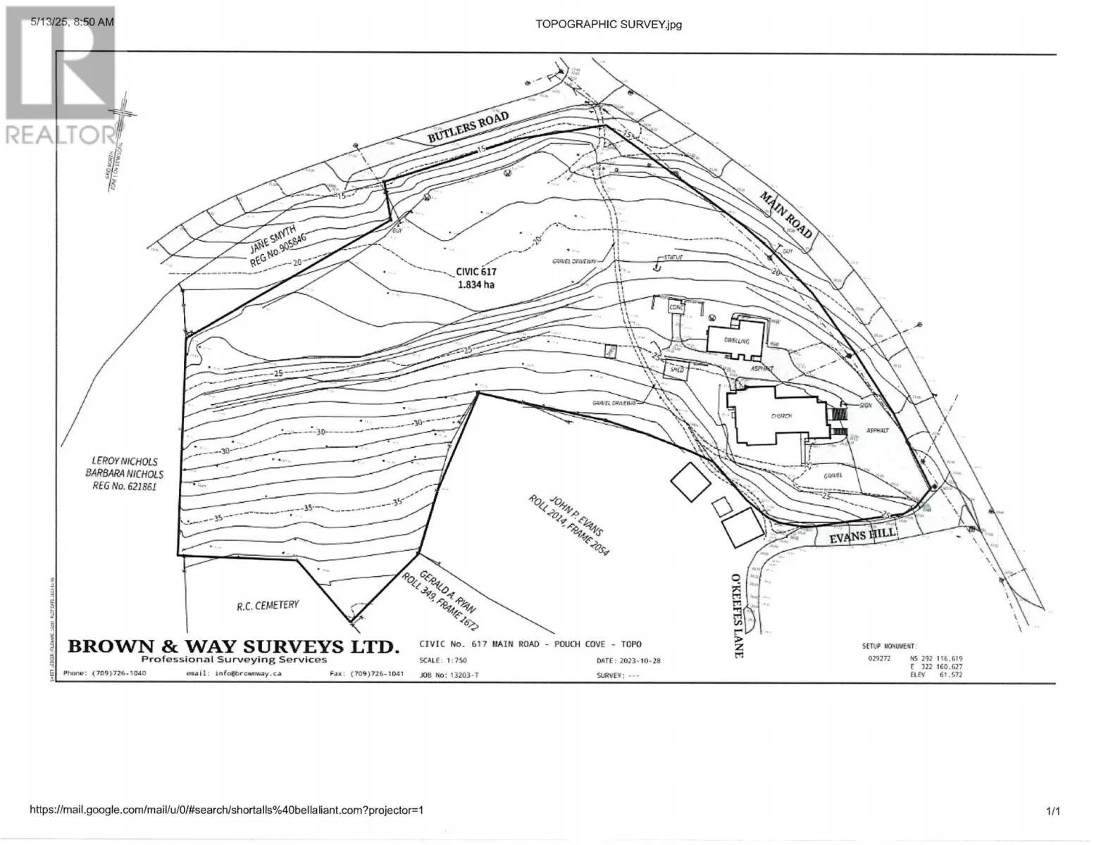 Welcome to 617 Main Road â a truly rare opportunity in the heart of scenic Pouch Cove. This expansive 4.5-acre parcel of land offers breathtaking ocean views and endless possibilities for development or uses. With its generous size, gentle topography, and direct access from Main Road, the property is well-suited for future residential development, a private retreat, or a creative project that complements the charm of the community. Rich in local history, on the site St. Agnesâ Church â a landmark whose cornerstone was laid in 1916, the same year Pouch Cove gained ecclesiastical independence from Holy Trinity. This area carries both cultural significance and long-standing community spirit. Whether you're looking to build, invest, or simply secure a slice of coastal Newfoundland, this property offers a blend of natural beauty, historical context, and practical potential. Donât miss your chance to own a piece of Pouch Coveâs story. (id:27476)