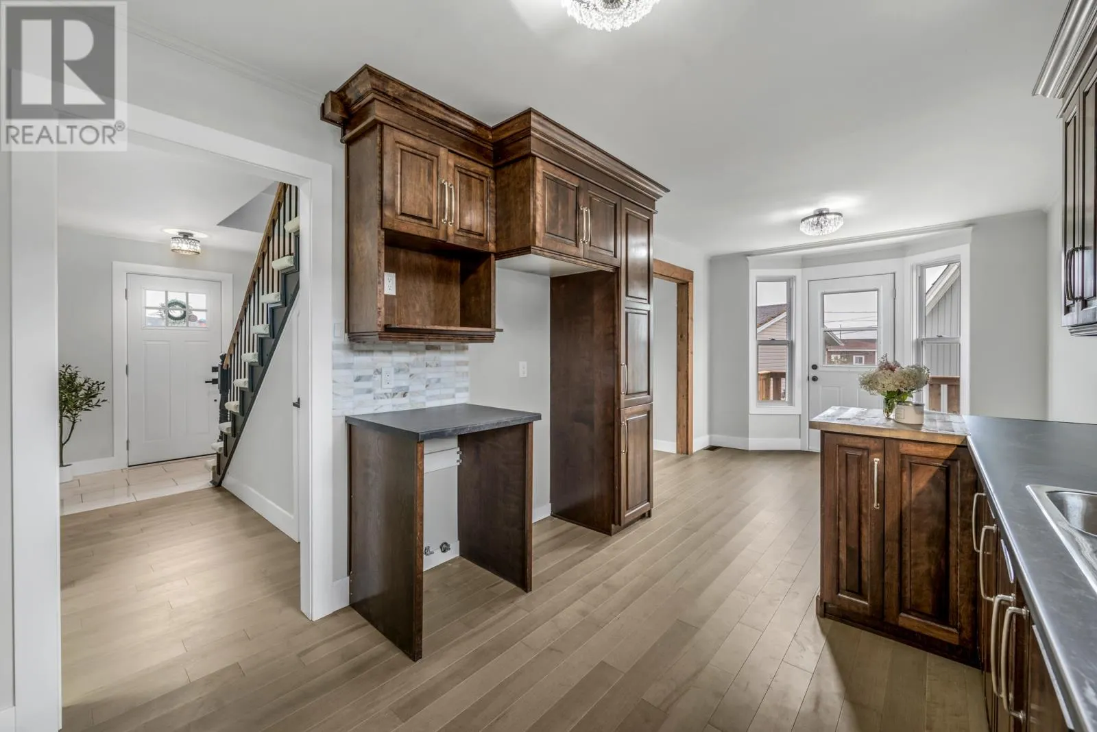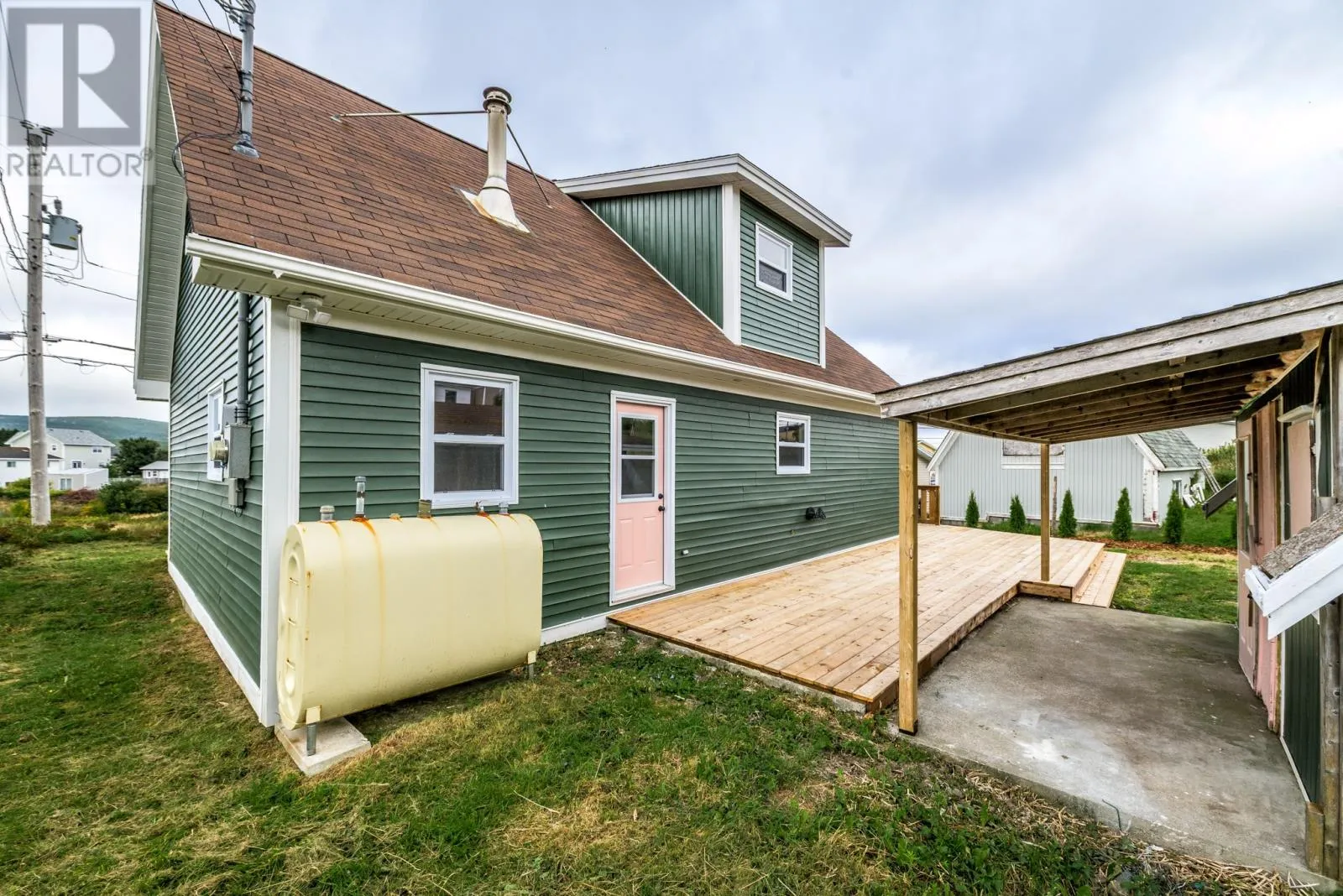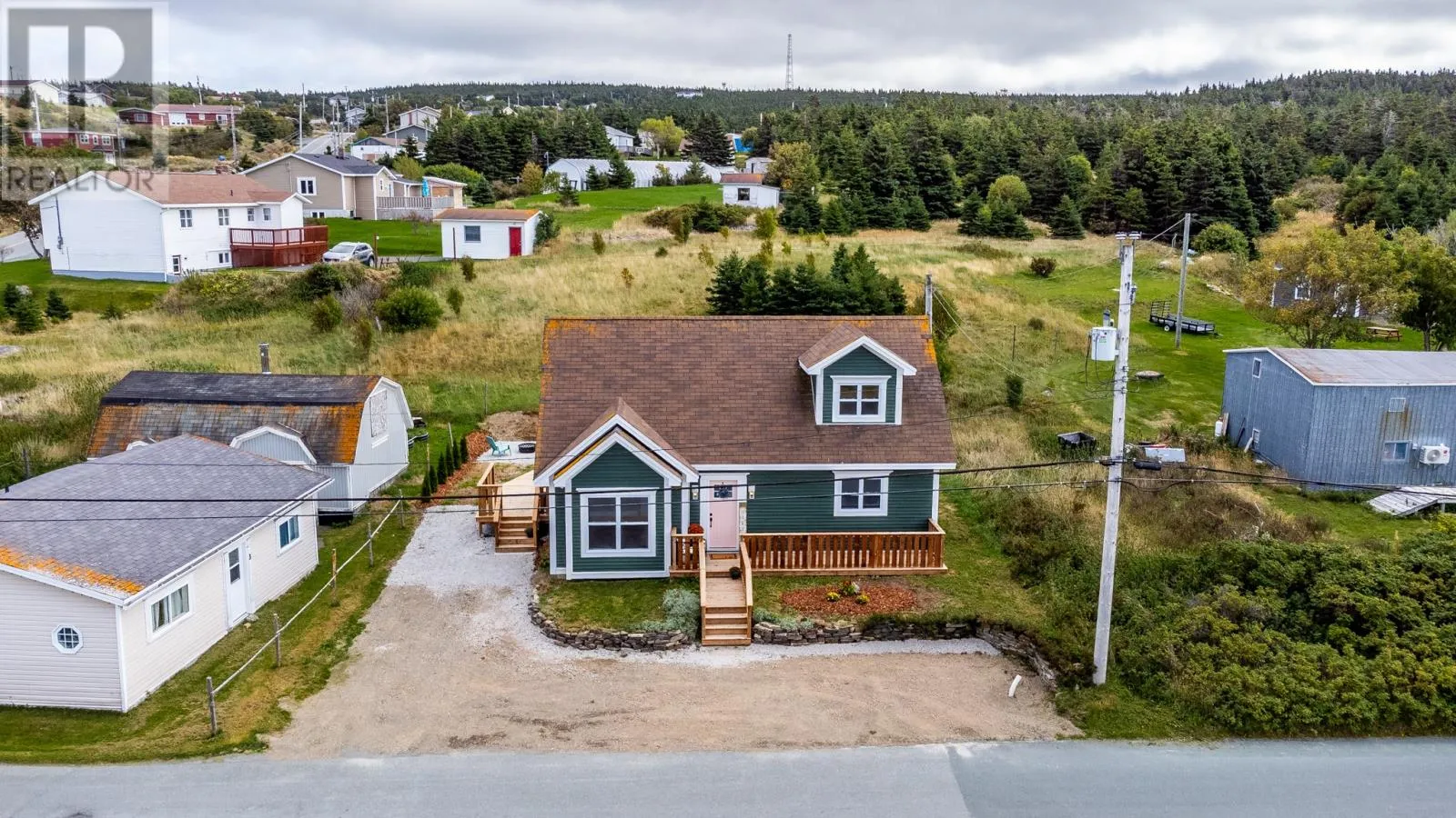 Welcome to 5 Marsh Road in the scenic town of Pouch Cove. This home has seen many upgrades in the last few months and is waiting for new owners. Five New Appliances added to this great home as an extra bonus. As you walk up to the newly built front deck, you are greeted with warmth as you enter into the front entrance. Once inside you will find a nice living room off to your left, with has vaulted ceilings and decorated wooden beams. As you walk down the hallway you enter the open concept kitchen and living room area. There is a rear porch and storage area. There is a large laundry room and den also on the main floor. As you walk with the staircase you will find a bedroom, main bathroom and Primary bedroom. Outside you will find a storage shed plus a wrap around side deck and a little fire pit area. This would make for a great home for a first time home buyer or someone looking to door size. This property is a must see and you won't be disappointed. (id:27476)