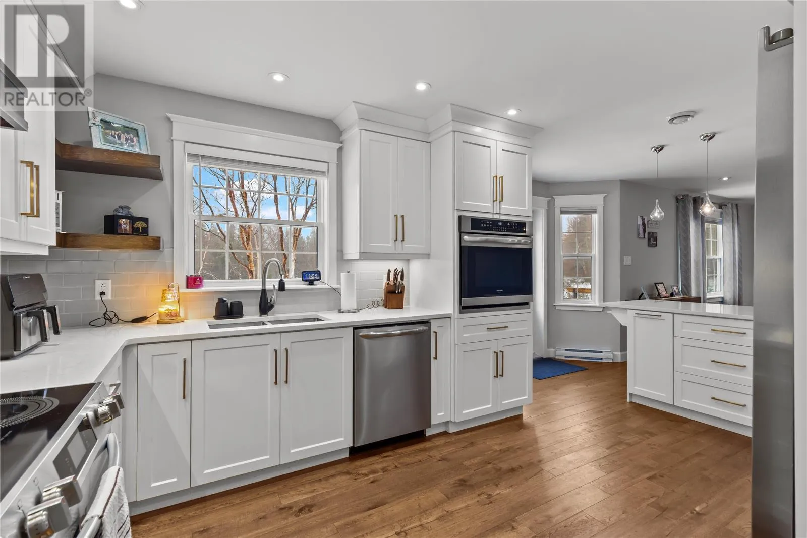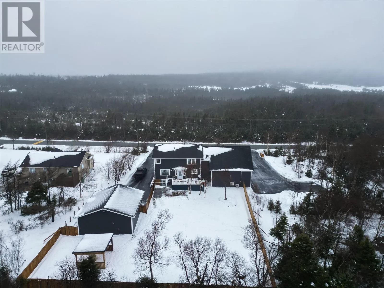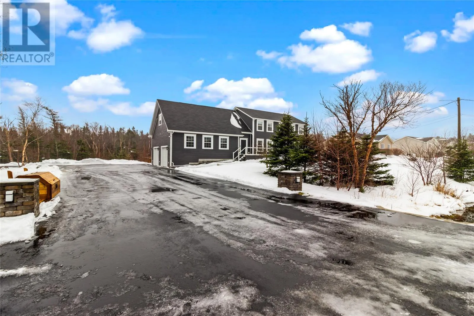 Situated on a meticulously maintained, 3/4 acre lot in Pouch Cove, this stunning family home is a must see! The main floor has hardwood throughout. The spacious living room is cozy with a stone accented fireplace. Stunning bright white kitchen with quartz counters, large island, built in wall oven, walk in pantry with in-floor heat, and access to the spacious 2 tiered deck which overlooks your private, fully fenced backyard oasis. This floor also has laundry for your convenience, as well as a half bath with heated floors. Upstairs you will find the primary suite which boasts a large walk in closet and spa inspired ensuite with heated floors, double vanity, shower and jetted tub. There are 2 additional bedrooms on this floor, each with their own walk in closets, and a main bath with heated floors. Above the garage you will find a massive bonus room which was recently developed and is currently used as a bedroom. Downstairs there is a family room with bar, additional bedroom, office space, storage room, and backyard access. This property has a large 30x30 attached garage and 28x30 detached garage with mini split. Ideal for a work shop or vehicle storage. There are 2 expansive paved driveways ideal for RV parking and up to 12 vehicles. The beautiful grounds have been updated in recent months with an abundance of stamped concrete in front and back including the stairs and walkway. There is also a new fence. The manicured lot backs onto a green belt and has mature trees, raised flower beds, dry river bed, and fire pit area. This home has 400 amp service, 5 mini splits, water softener, custom blinds and much more. This home has it all! (id:27476)