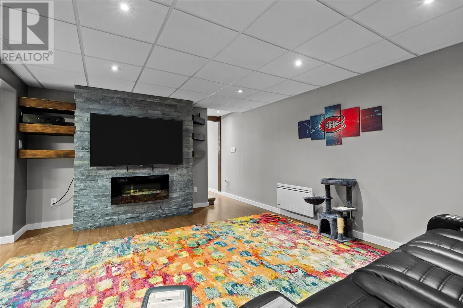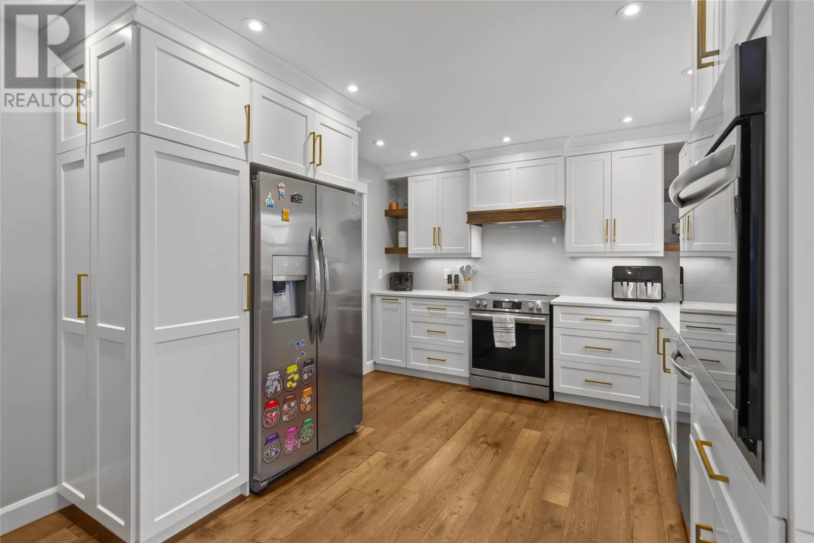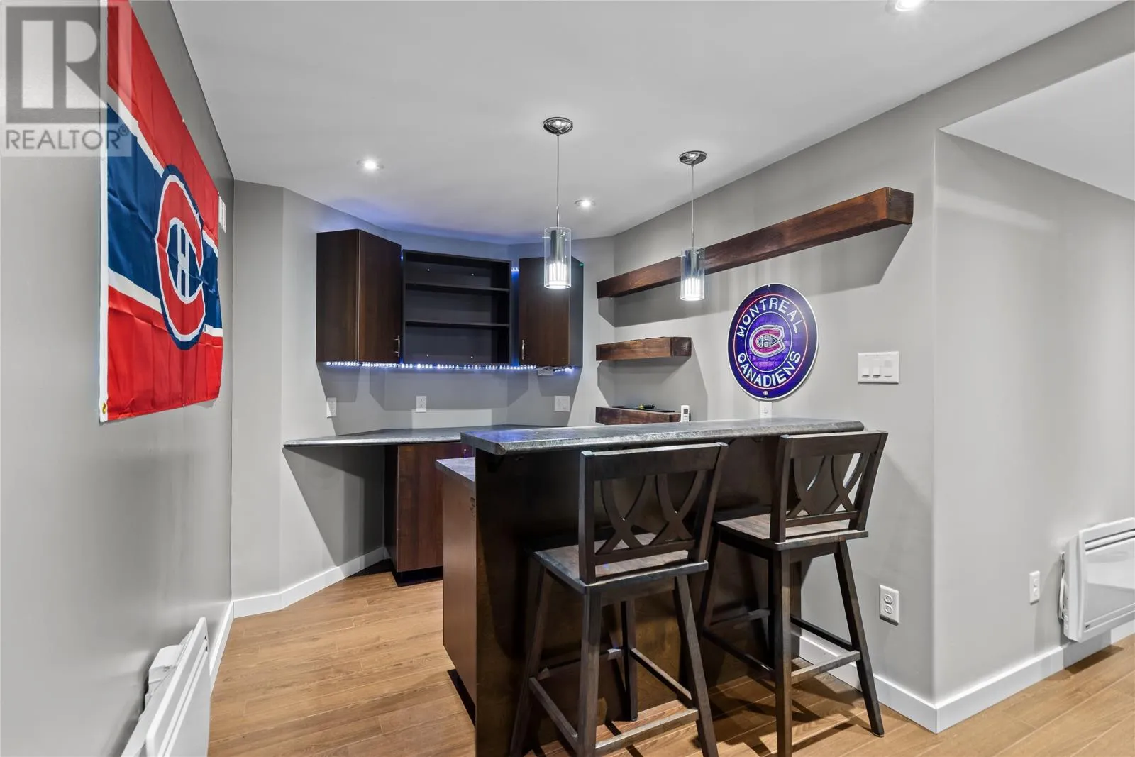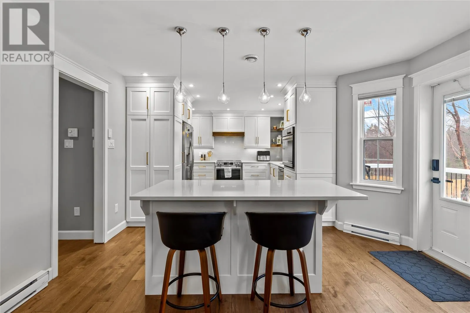 Situated on a meticulously maintained, 3/4 acre lot in Pouch Cove, this stunning family home is a must see! The main floor has hardwood throughout. The spacious living room is cozy with a stone accented fireplace. Stunning bright white kitchen with quartz counters, large island, built in wall oven, walk in pantry with in-floor heat, and access to the spacious 2 tiered deck which overlooks your private, fully fenced backyard oasis. This floor also has laundry for your convenience, as well as a half bath with heated floors. Upstairs you will find the primary suite which boasts a large walk in closet and spa inspired ensuite with heated floors, double vanity, shower and jetted tub. There are 2 additional bedrooms on this floor, each with their own walk in closets, and a main bath with heated floors. Above the garage you will find a massive bonus room which was recently developed and is currently used as a bedroom. Downstairs there is a family room with bar, additional bedroom, office space, storage room, and backyard access. This property has a large 30x30 attached garage and 28x30 detached garage with mini split. Ideal for a work shop or vehicle storage. There are 2 expansive paved driveways ideal for RV parking and up to 12 vehicles. The beautiful grounds have been updated in recent months with an abundance of stamped concrete in front and back including the stairs and walkway. There is also a new fence. The manicured lot backs onto a green belt and has mature trees, raised flower beds, dry river bed, and fire pit area. This home has 400 amp service, 5 mini splits, water softener, custom blinds and much more. This home has it all! (id:27476)