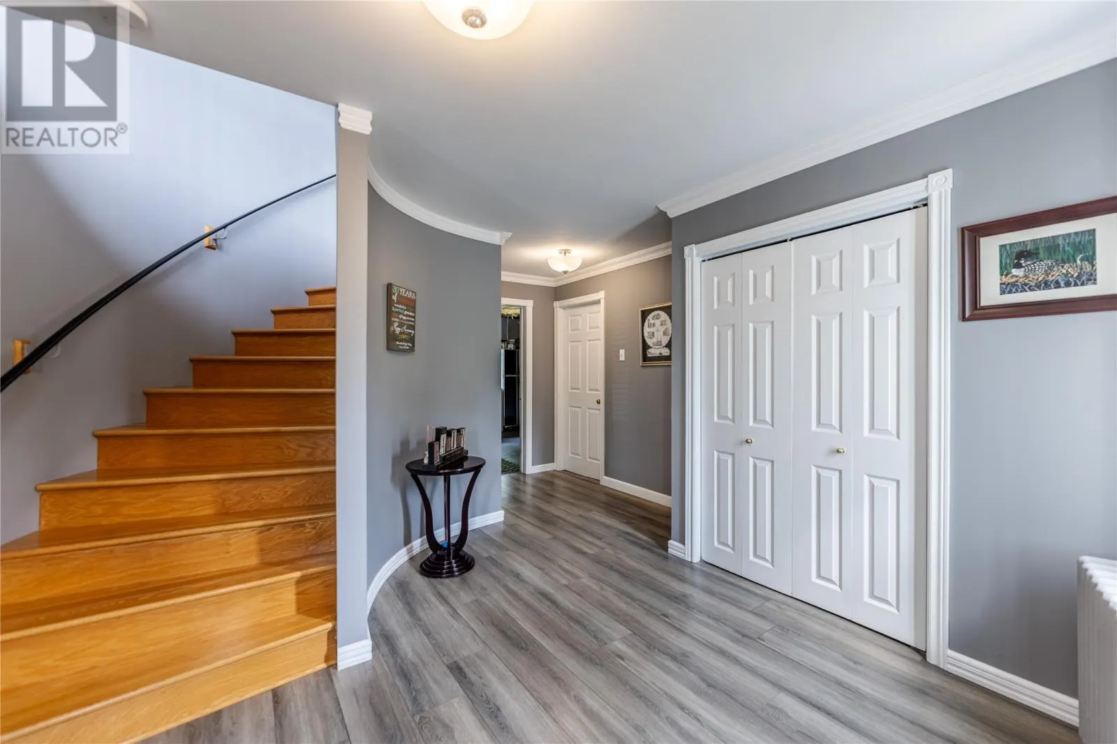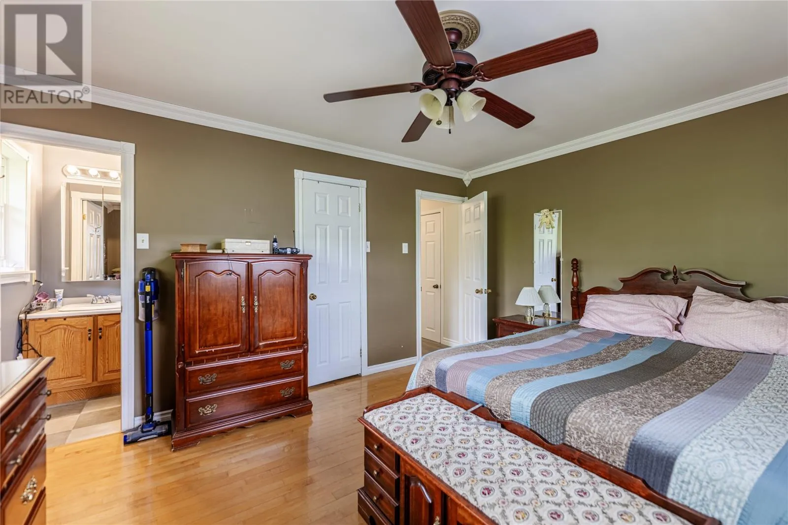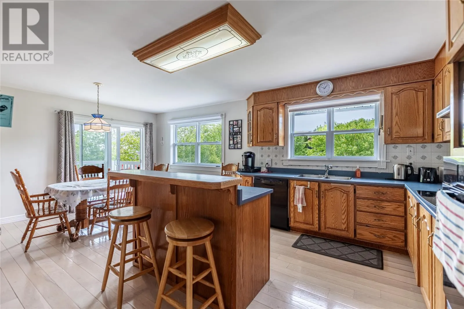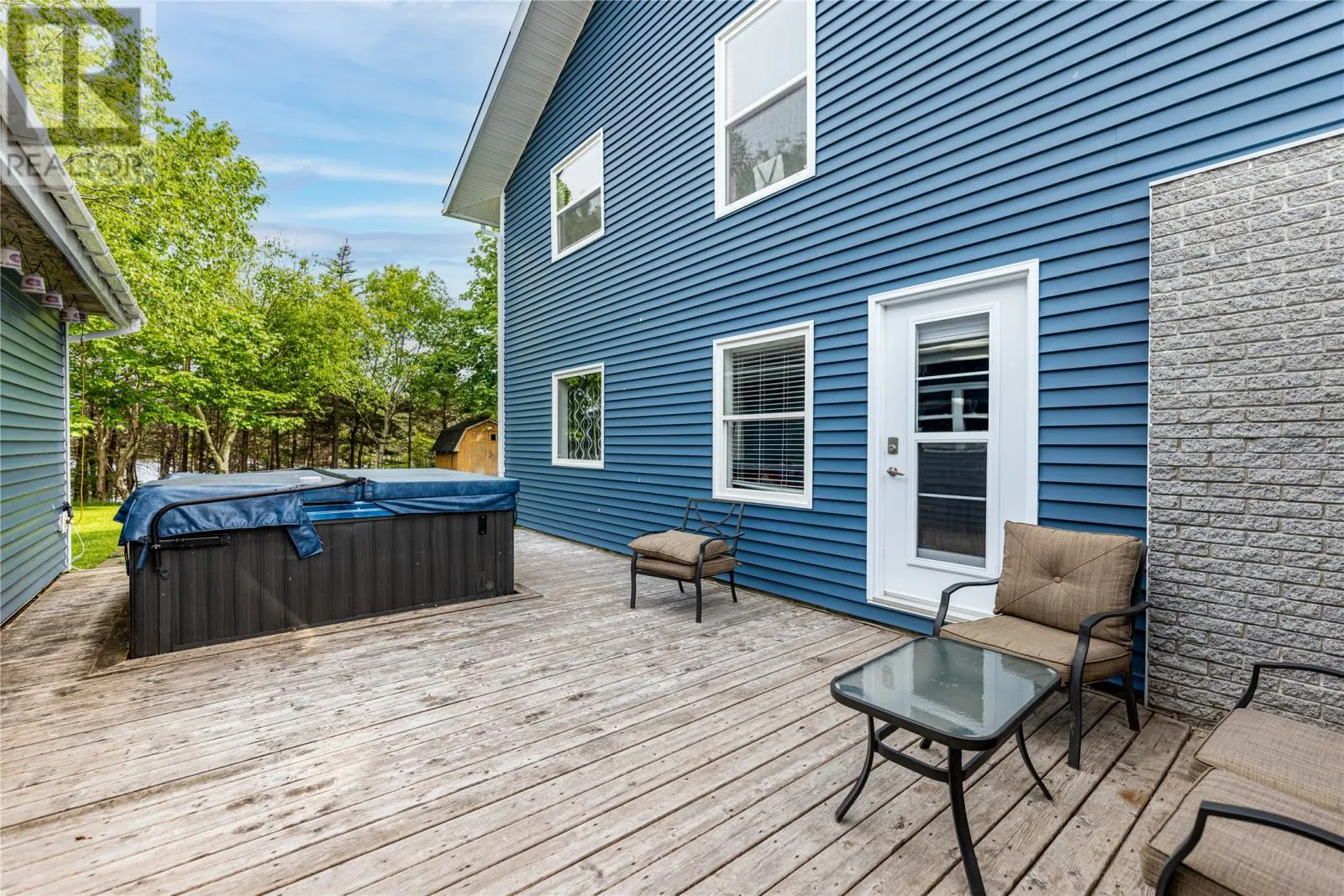 There is no better living space than walking out to you backyard and having your very own lake frontage. The stunning large family home is located on Tilton Pond in Spaniard's Bay. This uniquely design home boasts a large foyer with a grand entrance and lots of room for that growing family. This 4 bedroom, 2.5 bathroom home sits on well manicure lot with mature trees and access to the pond. On the second level there are two bedrooms and master bedroom with an ensuite. There is a large living room with lots of natural light and a kitchen with access to a covered patio for year round BBQing. Back to the lower level this home offers a home office, another bedroom and a full bathroom. There is a large utility room, in house garage for getting out of the weather when you come home. Off the family room you will head out to a deck area that features a relaxing hot tub and view of the pond. The 24'x 28' detached garage is great for storing all your recreation vehicles and equipment or a workshop, it even has a developed loft as a bonus storage araa. There was an extensive renovation completed in 2019 with windows, doors, flooring, siding and the roof was done ten years ago. This property is an oasis that offers an everyday vacation home when you come home from work. (id:27476)