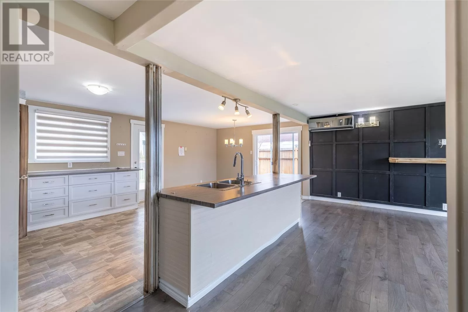 Welcome to 8 Gosseâs Road (also known as Reddyâs Road) located in the quiet and scenic community of Tilton, Spaniardâs Bay. This detached bungalow sits on a beautifully landscaped lot lined with mature cedar trees and offers exceptional curb appeal, a spacious gravel driveway with rear yard access, and a large 20x32 detached garage with concrete flooringâperfect for storage, recreational vehicles, or workshop needs. The main level features a bright and open-concept layout with a spacious kitchen that includes a modern sit-up island, full pantry, and cozy dining nook with access to the rear patio. The living area is enhanced by large windows for natural light and an energy-efficient mini split providing both heating and cooling. Down the hall youâll find three well-proportioned bedrooms, a beautifully renovated bathroom with ceramic tile extending to the ceiling, and a main floor laundry room for added convenience. The basement level is undeveloped but has been partially started, with one framed bedroom and a roughed-in bathroom already gyproced and wired. With its own separate walkout entrance, the basement offers great potential for future development as an in-law suite or secondary unit (pending all necessary permits and approvals). The backyard includes a private patio space and firepit area, ideal for outdoor relaxation or entertaining. Located just a short drive from all major amenities in Bay Roberts and only about an hour from St. Johnâs, this home provides excellent value whether you're entering the market, downsizing, or searching for a renovation opportunity. Being sold âAs Is, Where Isâ with Schedule A to accompany all offers. Buyers to verify all measurements and intended use. (id:27476)