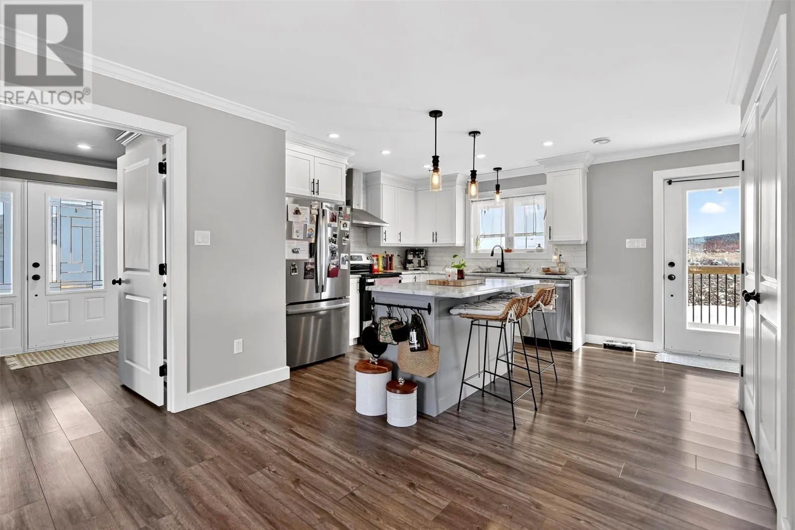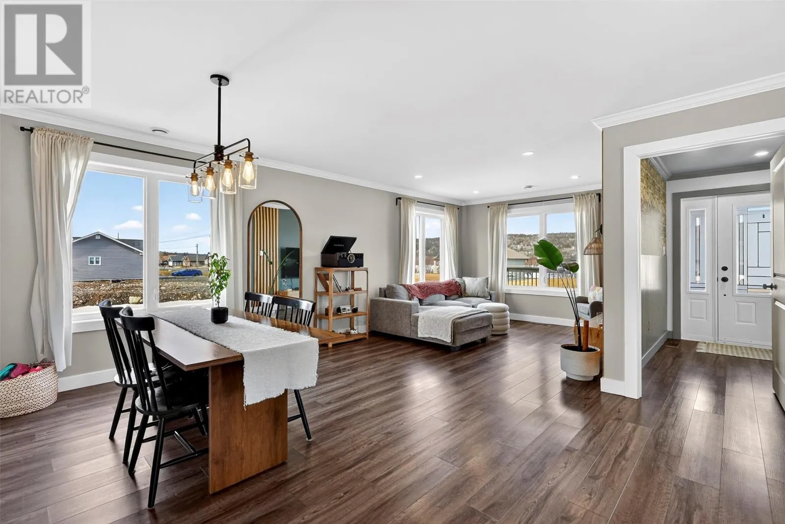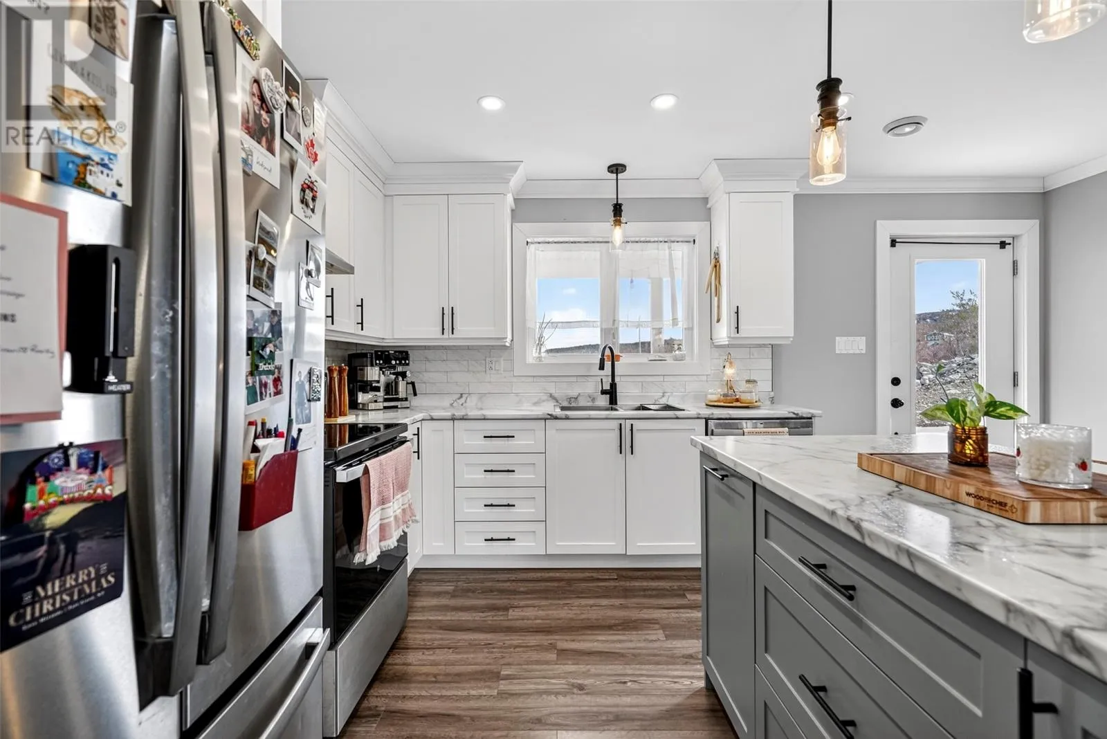 Welcome to 17 Jack Pine Drive in Spaniards Bay, located in the desirable Northern Pines Subdivision. This thoughtfully designed 4 year old home offers a peaceful pond view, a paved driveway, front landscaping, and a spacious backyardâperfect for outdoor enjoyment. The covered front entrance leads to an attached 19' x 20.5' garage, and the entire home is efficiently heated and cooled with a ducted heat pump system for year-round comfort. Step inside to an inviting open-concept layout featuring a custom kitchen with island, large walk-in pantry and included appliancesâfridge, stove, dishwasher, and range hood. A convenient laundry nook sits off the mudroom into the attached garage on a convenient landing, while the bright dining and living area provides an ideal space for both everyday living and entertaining. This home offers two well-appointed spare bedrooms, along with a private primary suite complete with a walk-in closet and a modern three-piece ensuite. A stylish three-piece main bathroom serves the rest of the home. The front porch also provides direct access to the attached garage, adding to the homeâs overall convenience and functionality. Beautifully finished and move-in ready, this property delivers comfort, efficiency, and contemporary design in a sought-after neighbourhood. (id:27476)