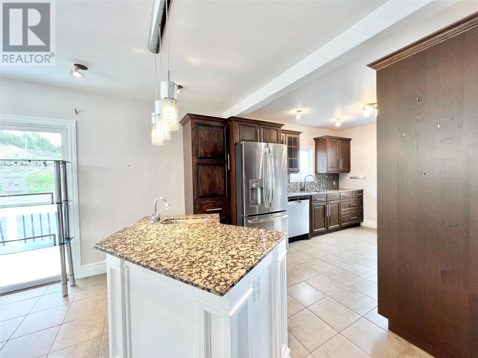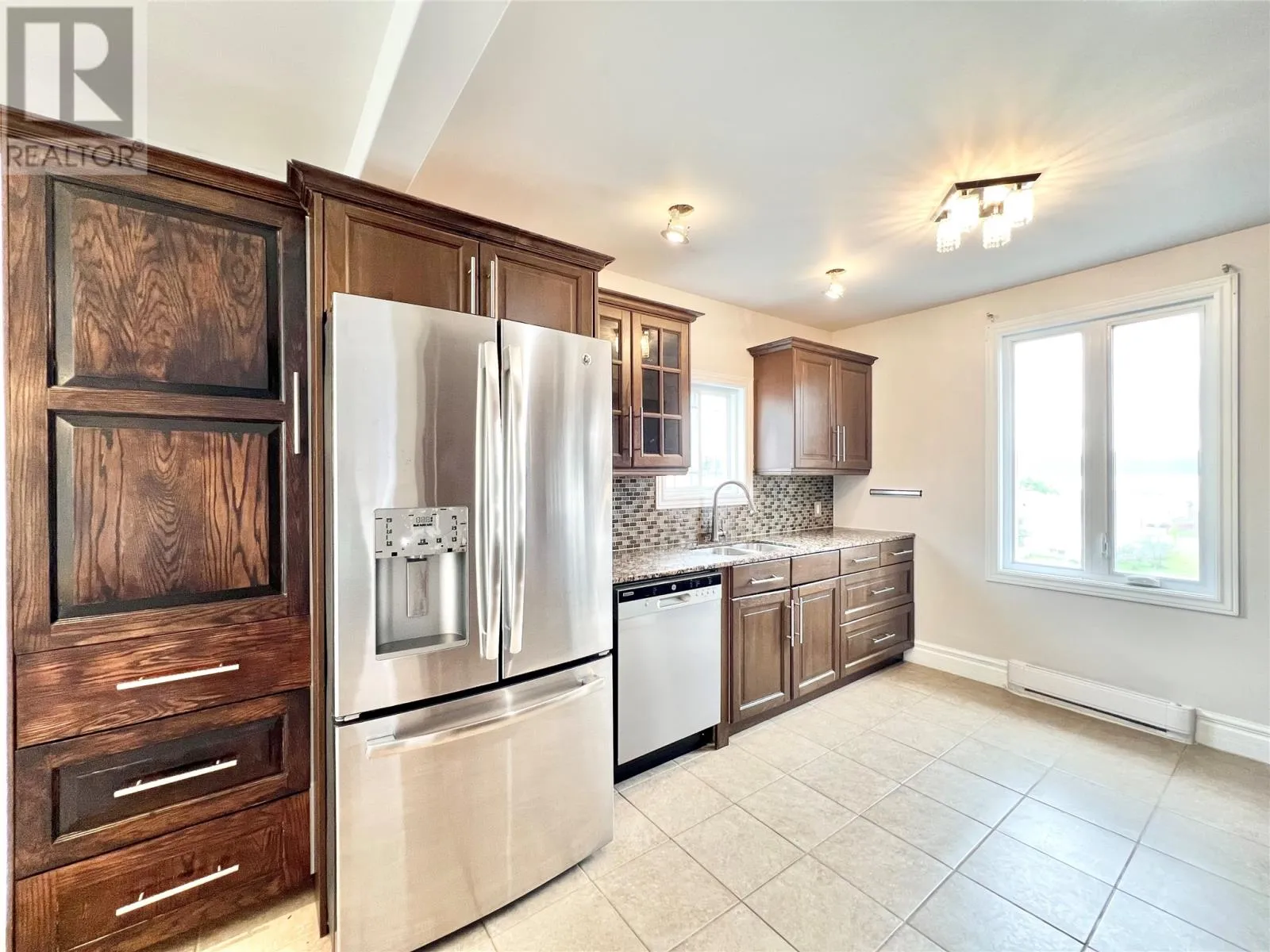 This well-maintained home of more than 2000 SF on both levels, offers views of Halls Bay and a thoughtfully designed layout. The main floor features a spacious primary bedroom with a walk-in closet, a full bathroom, and a bright living room that opens to an additional space through elegant French doorsâideal for a home office or playroom. The kitchen is equipped with ample cabinetry, an island with a sink, a dining area, and a convenient laundry room. The fully developed basement includes a versatile rec room, two bedrooms, a hobby room with potential for use as an additional bedroom, a full bathroom, and a dedicated storage room. Modern comforts include electric heating, two heat pumps, recent electrical upgrades, a new dishwasher (April 2024), and a new hot water tank (April 2022). The home also features 100AMP electrical service on each level. Outside, a 14' x 20' wired and insulated barn-style shed with a heat pump and newly built loft stairs provides excellent storage or workspace options. The fully fenced backyard is beautifully landscaped with raised garden beds and a back deck, perfect for outdoor enjoyment. A single-wide driveway accommodates up to three vehicles. Included in the sale are a refrigerator, stove, dishwasher, washer, and dryer. (id:27476)