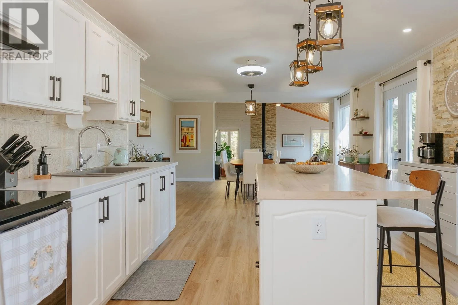 Heading East from Gander, go down the hill after Square Pond camp ground, and it's your first right at the bottom of the hill - you'll see a Camp Hancock sign. Turn right at the fork, keep going along the pond until you see the home on your left. It's clearly marked. Welcome to 14 Tuxedo Road, Square Pond! Just twenty minutes from Gander and easily accessible by car year-round, this three bedroom, two bathroom, four-season Square Pond stunner might be the most beautiful cottage weâve ever listed. Gorgeous inside and out, this waterfront home is close to civilization, but far enough away to forget about it all. Youâll have the charm of a classic cottage with the comfort and reliability of a full-time home. Step inside to a bright entryway with light floors and clean white walls. Sliding barn doors hide a spacious coat closet and the conveniently placed laundry area, keeping the space tidy and functional - this smart, well-organized entrance makes a great first impression. Framed by big windows overlooking the backyard and pond below, the open concept living area is warm and inviting. The redesigned kitchen, with freshly painted cabinets, a new island and coffee bar, flows into the dining room with doors to the back deck for easy indoor-outdoor living. In the living room, a wood-panelled ceiling, stone feature wall, and wood stove give cozy and practical, and the updated main bath features ceramic tile, radiant in-floor heat, and a custom tile shower. Off the main space you'll find three comfortable bedrooms, including a peaceful primary with a walk-in closet and new four-piece ensuite with shiplap, a freestanding tub, oversized glass shower, and wood-accented vanity. Down the hall, a new pantry adds storage and room for another fridge, while a bonus room is perfect for hobbies or a home office. Outside, enjoy privacy and plenty of space to relax with new front and back decks and two waterfront seating areas, including a newly stained deck. There are so many updates, weâve included a full list as a Supplement - ask your agent for details. Every space here feels intentional, every view reminds you why youâre here. If youâre searching for the good life, with a lifestyle that feels both elevated and effortless, welcome home. (id:27476)