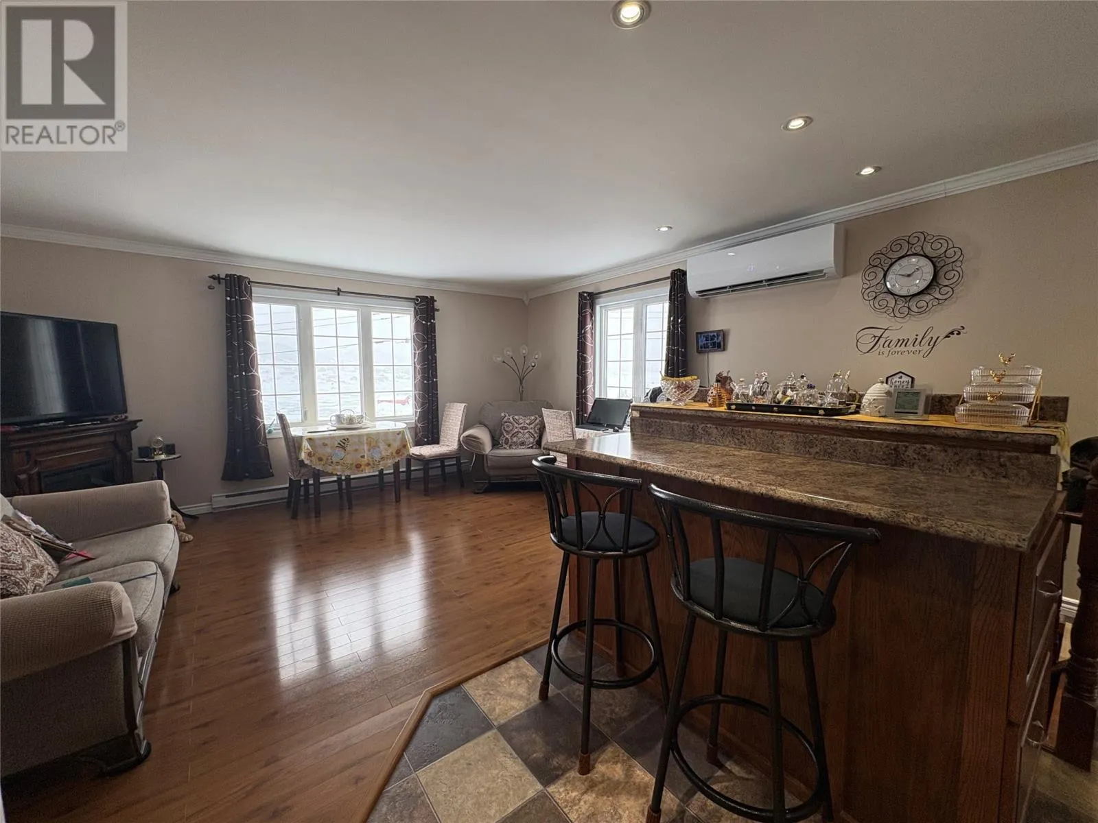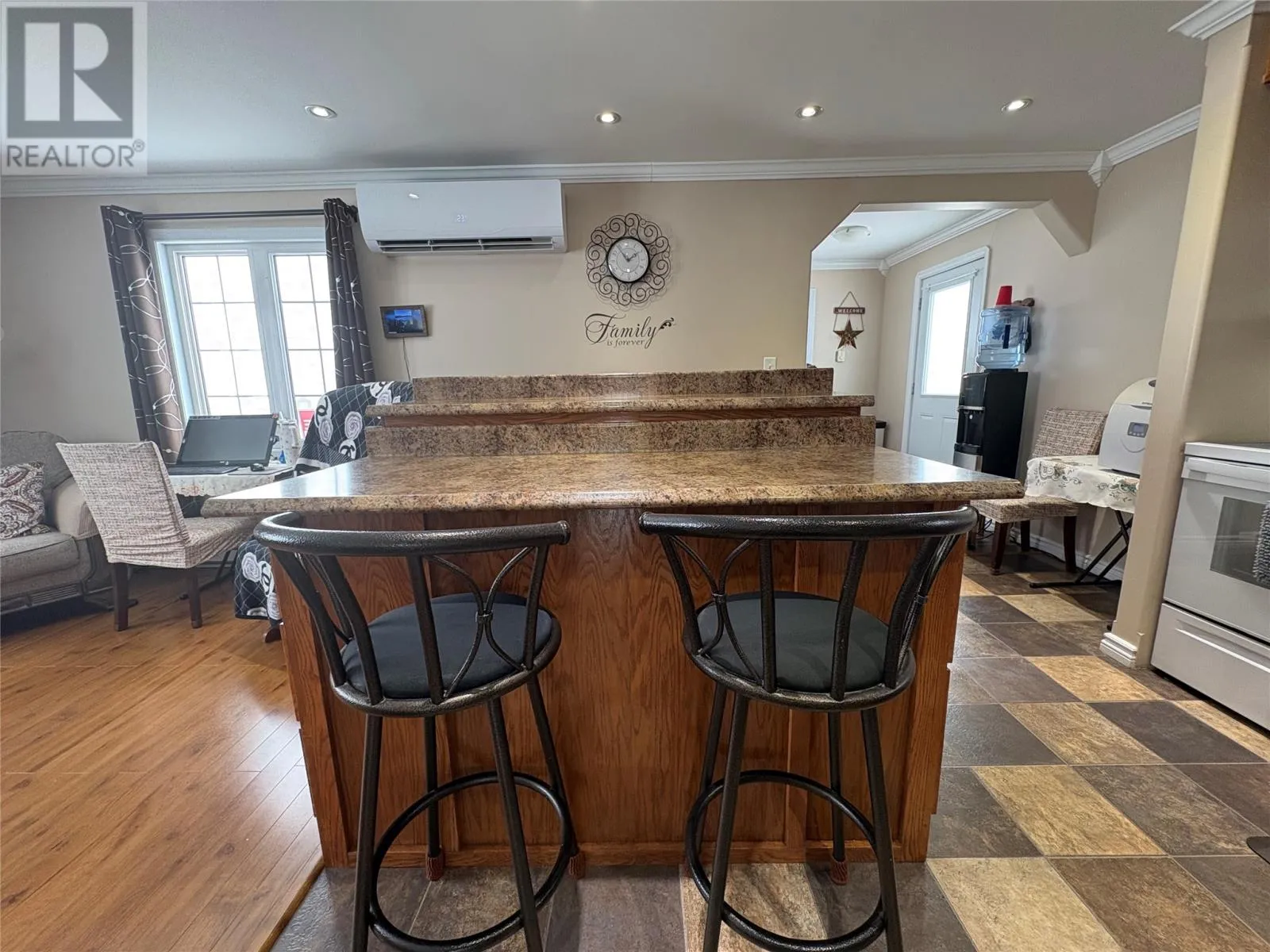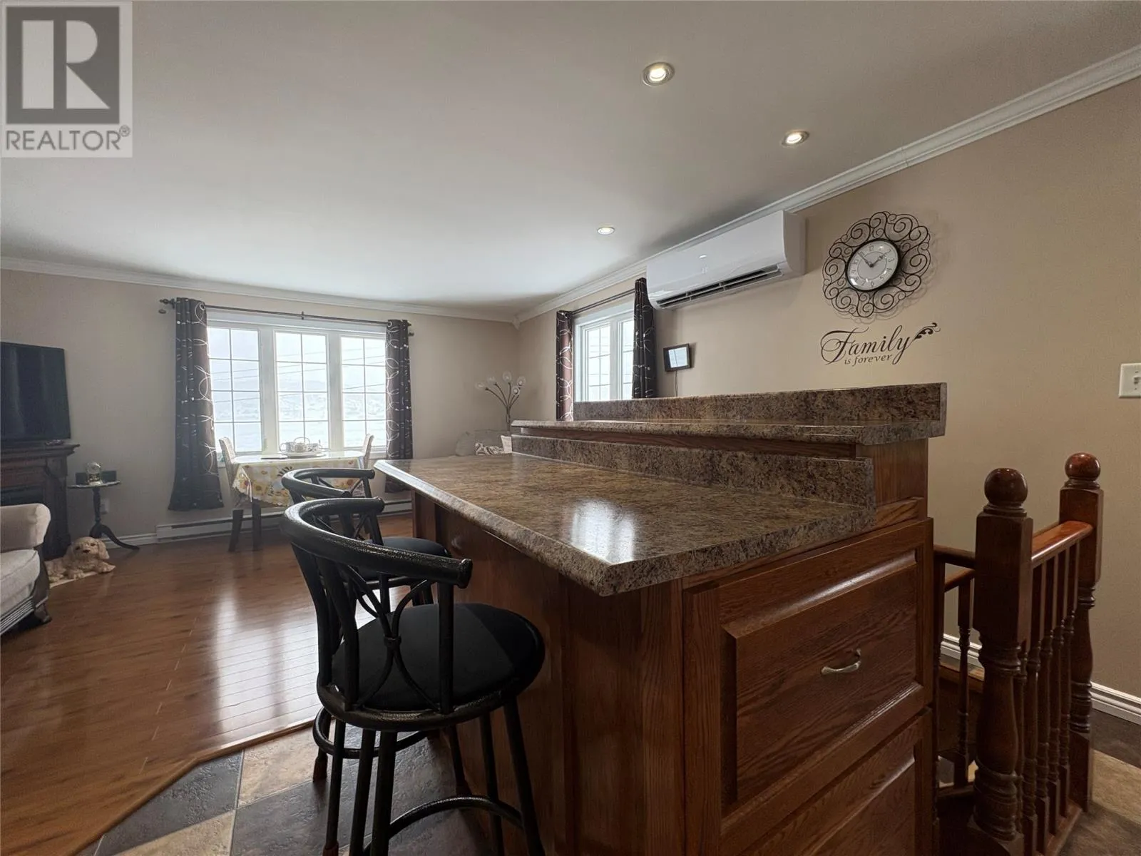 This lovingly cared-for, one-owner home showcases exceptional pride of ownership and offers an unbeatable view. The main floor features a bright, open-concept layout that connects the kitchen and living room, creating a warm and inviting space with panoramic scenery. The main level includes two well-sized bedrooms; the primary bedroom offers a generous layout with a walk-in closet, while the second bedroom is also spacious and comfortable. The main bathroom is a 3-piece bath with a full one-piece tub, and the convenience of main-floor laundry makes this home ideal for those who prefer single-level living. The lower level provides excellent additional space, including three rooms currently used for storage and pantry space, an extra bedroom, and a half bath. The home has a 200-amp electrical service and has seen thoughtful upgrades over the years, including a roof replacement in 2016 and both the front and back decks rebuilt in 2024, each measuring approximately 10Ã8. The driveway can accommodate up to ten vehicles, offering ample parking for guests or multiple household cars. Heating is electric, and an 18,000 BTU heat pump was added less than three years ago, providing efficient warmth in winter and refreshing cool air during the summer months. The hot water tank was manufactured in February 2018 and installed in 2019, and the plumbing has been updated to approximately 80 percent PEX and 20 percent copper. Outside, a large 20Ã32 wired shed sits behind the home, offering excellent space for storage, hobbies, or a workshop. This well-maintained property is an excellent choice for a first home or a next home, offering comfort, upgrades, and a peaceful setting with a view you will enjoy every day. (id:27476)