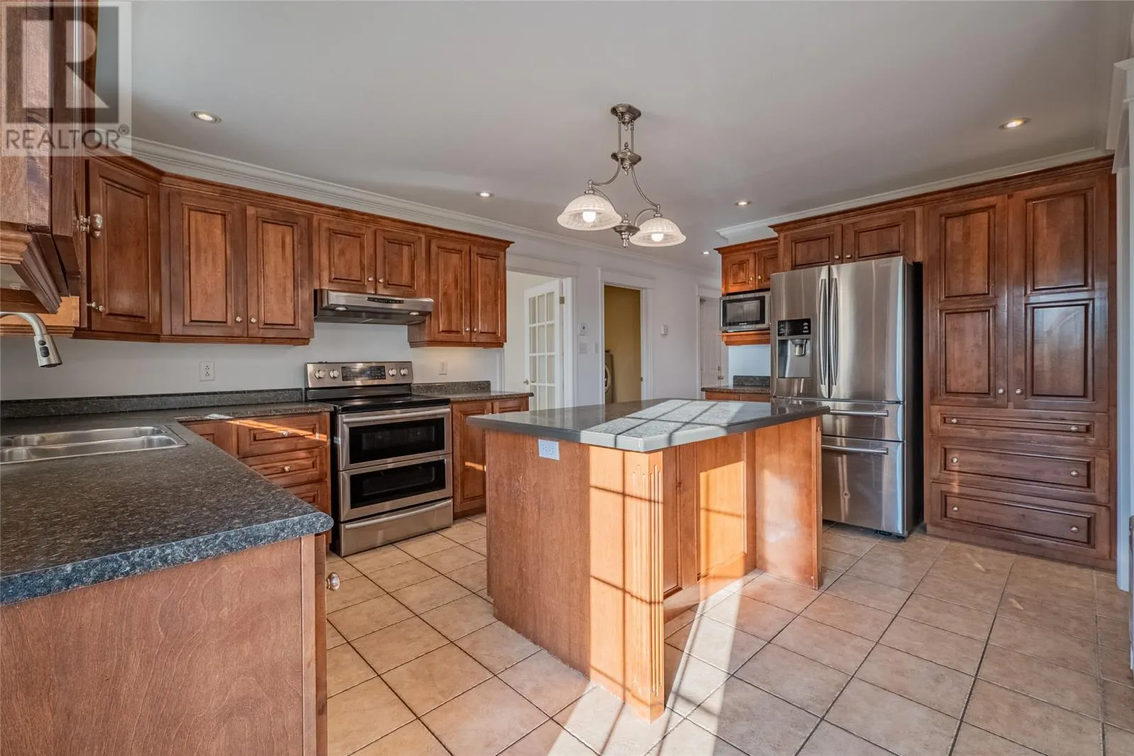 Off Carrick Drive and then Kensington Drive Located in King William Estatesâone of the area's most prestigious communitiesâthis thoughtfully maintained two-storey home sits on a generous lot and delivers refined comfort, smart functionality, and plenty of room for the active, successful family. A neighborhood where affluent young families and retirees live on spacious, beautifully landscaped properties. Children bike along safe, tree-lined streets, neighbors connect over shared values, and top-tier schools, parks, and recreational facilities are within easy reach. Positioned near excellent schools, extensive walking trails, and the Paul Reynolds Community Centre, it's the perfect setting for families who appreciate quality, convenience, and community. Enter through a sunny foyer that connects to comfortable living and dining rooms. The roomy eat-in kitchen features a handy sit-up island, stainless steel appliances, and sliding doors to the gardenâideal for breakfasts or hosting friends. Main-floor laundry adds convenience. Upstairs, three ample bedrooms include a roomy primary bedroom with four-piece ensuite and generous walk-in closet. The walk-out lower level with its own separate entrance offers two very large completed rooms and a full bathâeasily transformed into a private in-law suite perfect for multi-generational living, rental income, or extended family. With generous storage, this versatile space can serve as a movie room, play area, fitness spot, home office, or guest quarters. Step out to the wide patio with its serene valley outlook, a quiet retreat for barbecues or relaxing on your expansive lot. With flexible floor plans, generous living areas, a desirable larger lot, and a location in one of the region's most established neighborhoods, this exceptional home is made for families who value space, privacy, and prestige. The versatile layout, spacious rooms, in-law suite potential, and unbeatable location make this a dream for the active and growing family. (id:27476)