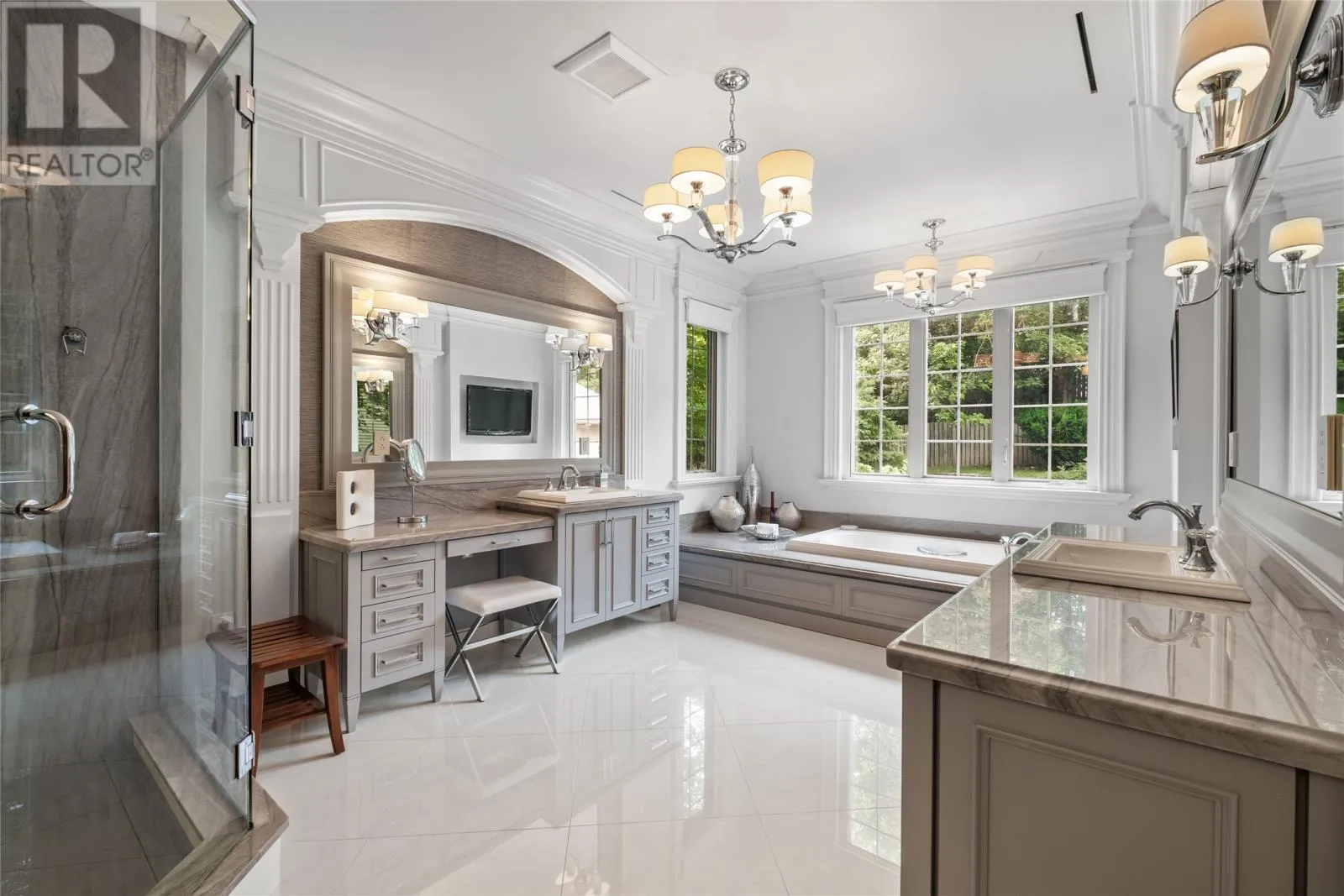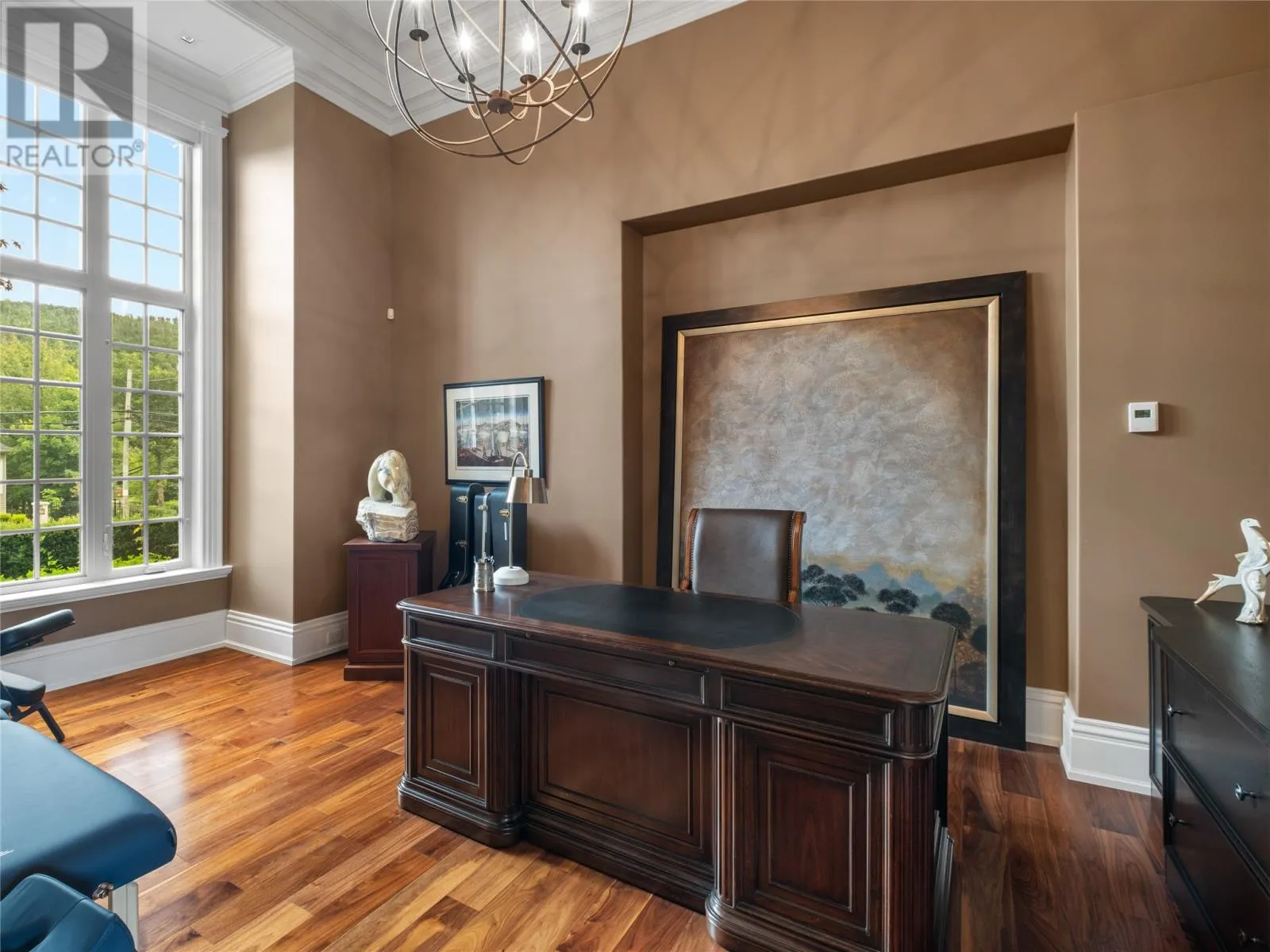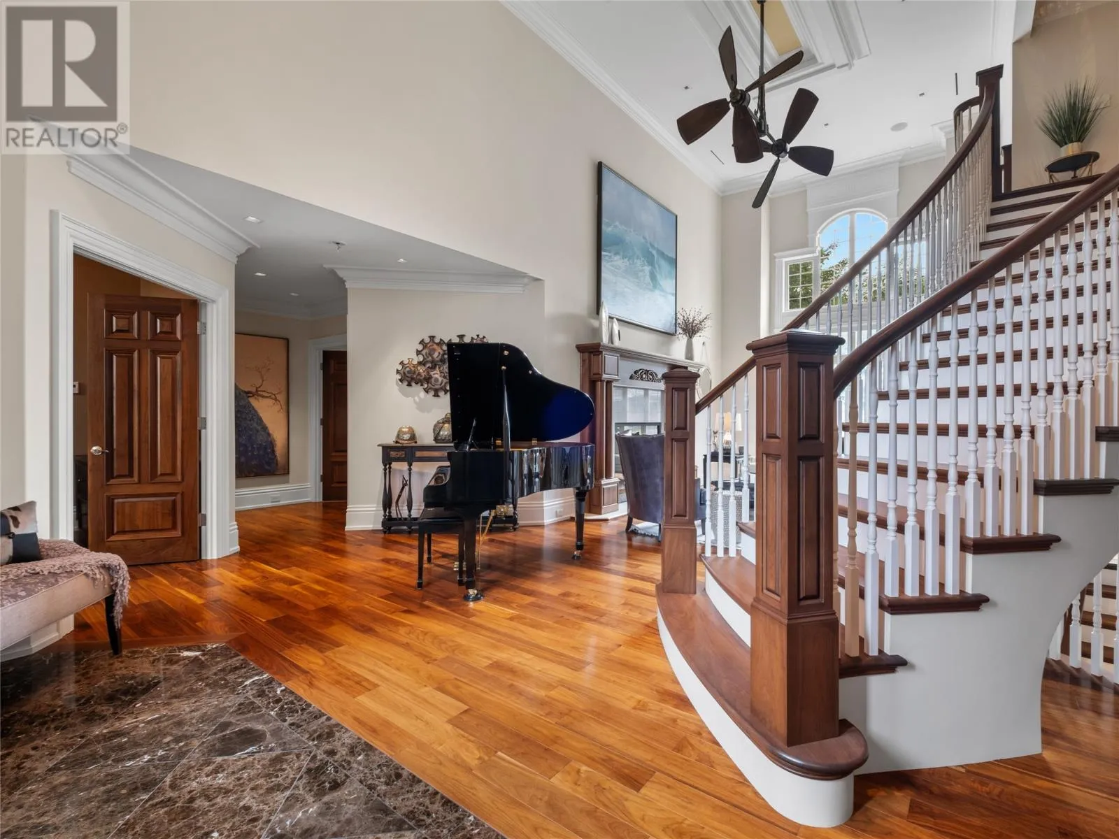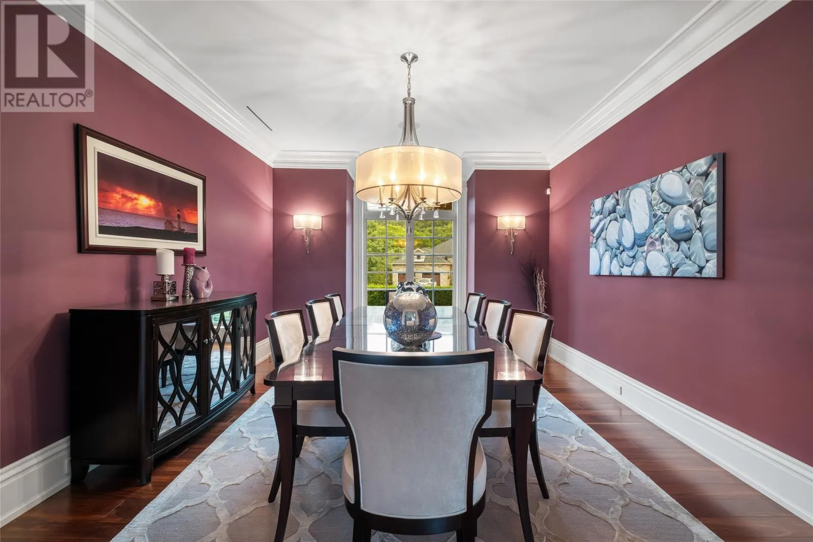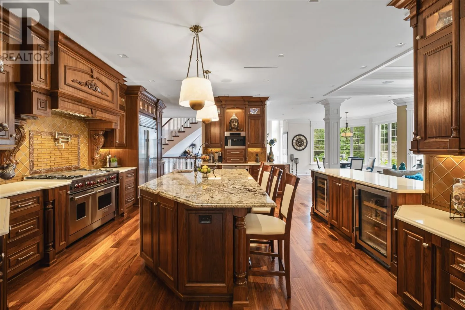 This magnificent family home is nestled on a 1/2-acre lot in a sought-after west end neighborhood, adjacent to Bowring Park & the 6km South Brook walking trail! Bboasting meticulously landscaped grounds, including all around landscape lighting, automatic sprinkler, & stone & concrete hardscapes, this home is sure to impress. Elegantly designed with an open-concept layout on the main floor, this 2-story home offers 4 spacious bedrooms & 5 luxurious bathrooms, catering to every modern comfort & convenience. The main floor presents a grand great room with soaring ceilings & a striking elegant fireplace, which seamlessly extends to the dining nook overlooking the rear gardens & kitchen. The chef-inspired walnut kitchen (completed by CherryNook) is a culinary dream, equipped with professional-grade appliances, pot-filler, ceiling-height cabinetry, solid surface countertops, & a sit-up island that comfortably accommodates 4. Additional features on the main floor include the primary suite with stunning ensuite with built-ins & impressive walk-in closet, a family room with f/p, laundry room, powder room, & two separate attached garages. The custom walnut staircase (by Precision) leads to the upper-level housing 3 generously sized bedrooms, all with ensuites. The deluxe lower level is an entertainer's paradise, featuring a wine cellar with kitchenette & tasting bar, a wet bar/billiards room, rec room, games area, full bath & tons of storage. With entertaining in mind, the rear gardens are equally as impressive featuring a covered backyard lounge area with custom stone f/p, indoor-outdoor living space with sit-up wet bar & professional grade appliances & BBQ, heaters & remote blinds, & 8 person in-ground hot tub. Every detail of this home has been thoughtfully crafted to offer unparalleled luxury & comfort including Lutron lighting & blind control, in-floor heating, custom trim finishes, 2 laundry rooms, & 50-year architectural shingles, just to name a few! (id:27476)
