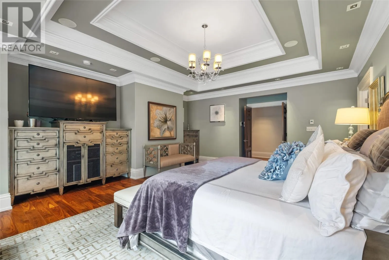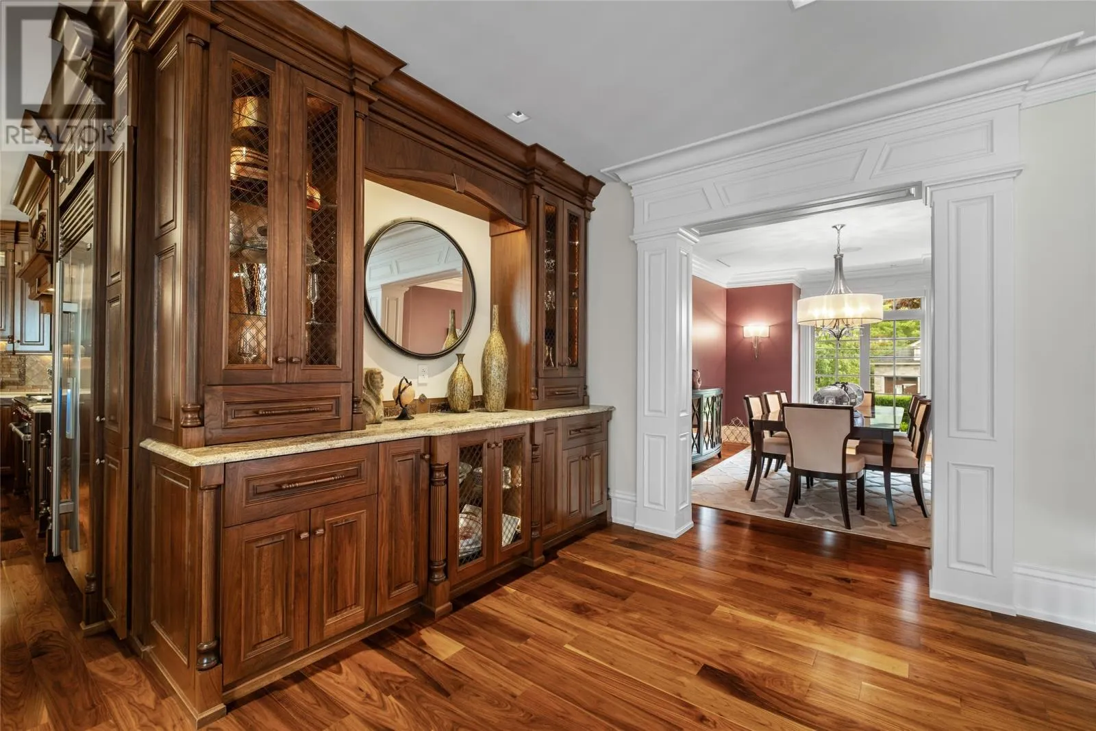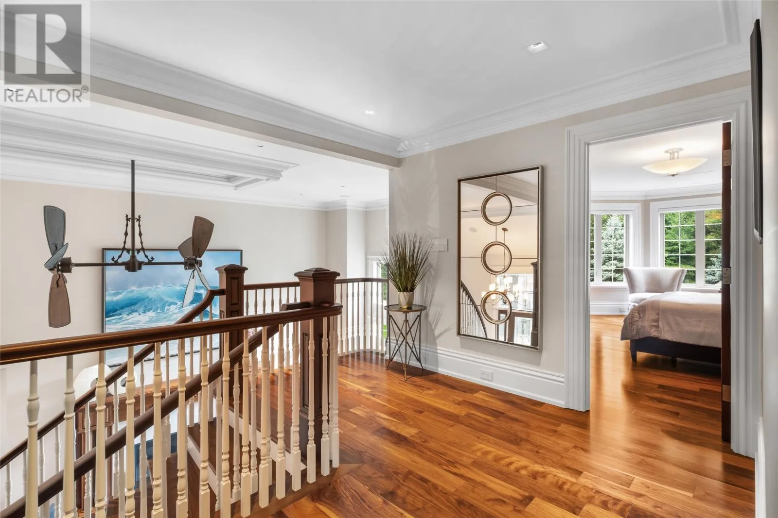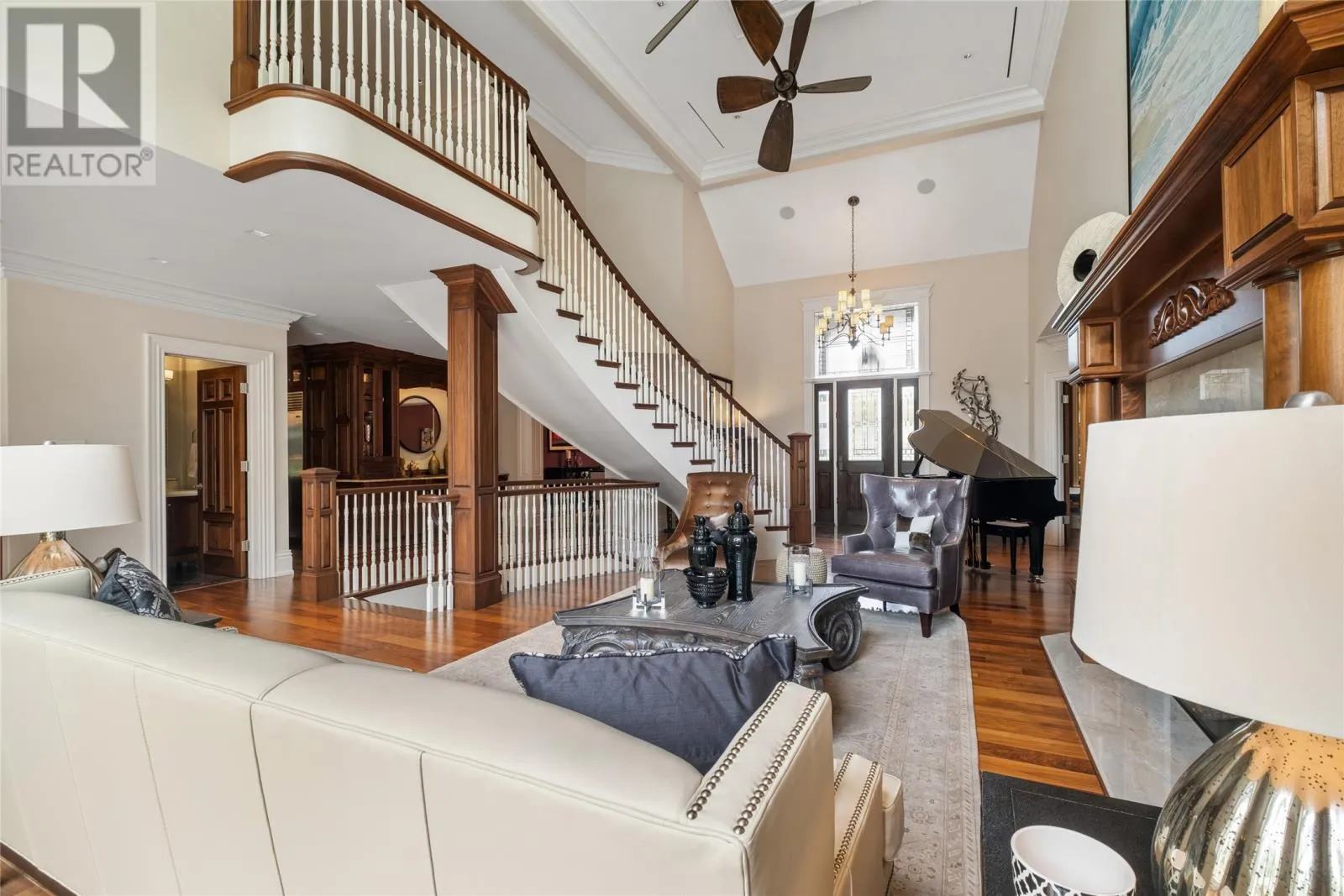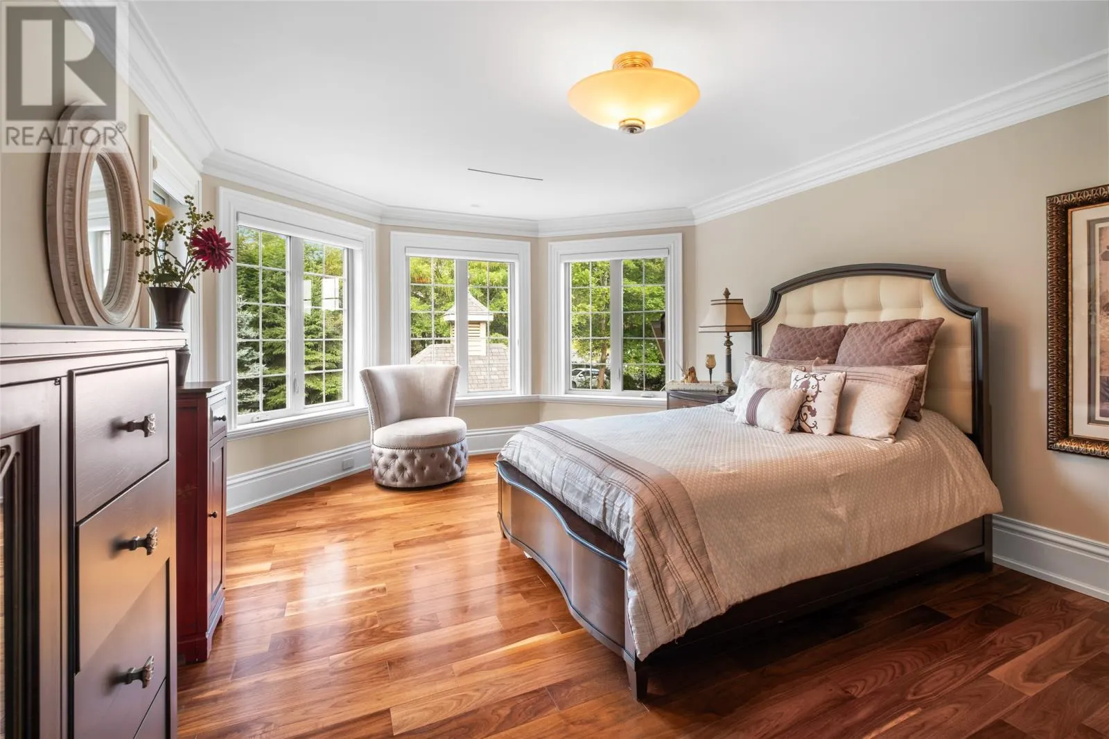 This magnificent family home is nestled on a 1/2-acre lot in a sought-after west end neighborhood, adjacent to Bowring Park & the 6km South Brook walking trail! Bboasting meticulously landscaped grounds, including all around landscape lighting, automatic sprinkler, & stone & concrete hardscapes, this home is sure to impress. Elegantly designed with an open-concept layout on the main floor, this 2-story home offers 4 spacious bedrooms & 5 luxurious bathrooms, catering to every modern comfort & convenience. The main floor presents a grand great room with soaring ceilings & a striking elegant fireplace, which seamlessly extends to the dining nook overlooking the rear gardens & kitchen. The chef-inspired walnut kitchen (completed by CherryNook) is a culinary dream, equipped with professional-grade appliances, pot-filler, ceiling-height cabinetry, solid surface countertops, & a sit-up island that comfortably accommodates 4. Additional features on the main floor include the primary suite with stunning ensuite with built-ins & impressive walk-in closet, a family room with f/p, laundry room, powder room, & two separate attached garages. The custom walnut staircase (by Precision) leads to the upper-level housing 3 generously sized bedrooms, all with ensuites. The deluxe lower level is an entertainer's paradise, featuring a wine cellar with kitchenette & tasting bar, a wet bar/billiards room, rec room, games area, full bath & tons of storage. With entertaining in mind, the rear gardens are equally as impressive featuring a covered backyard lounge area with custom stone f/p, indoor-outdoor living space with sit-up wet bar & professional grade appliances & BBQ, heaters & remote blinds, & 8 person in-ground hot tub. Every detail of this home has been thoughtfully crafted to offer unparalleled luxury & comfort including Lutron lighting & blind control, in-floor heating, custom trim finishes, 2 laundry rooms, & 50-year architectural shingles, just to name a few! (id:27476)