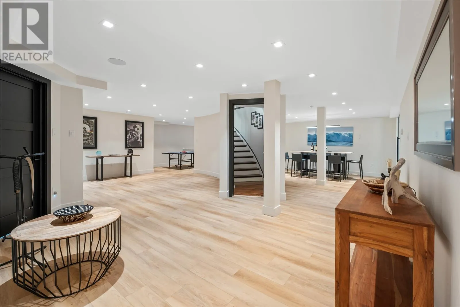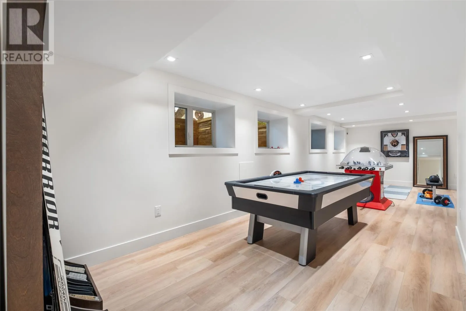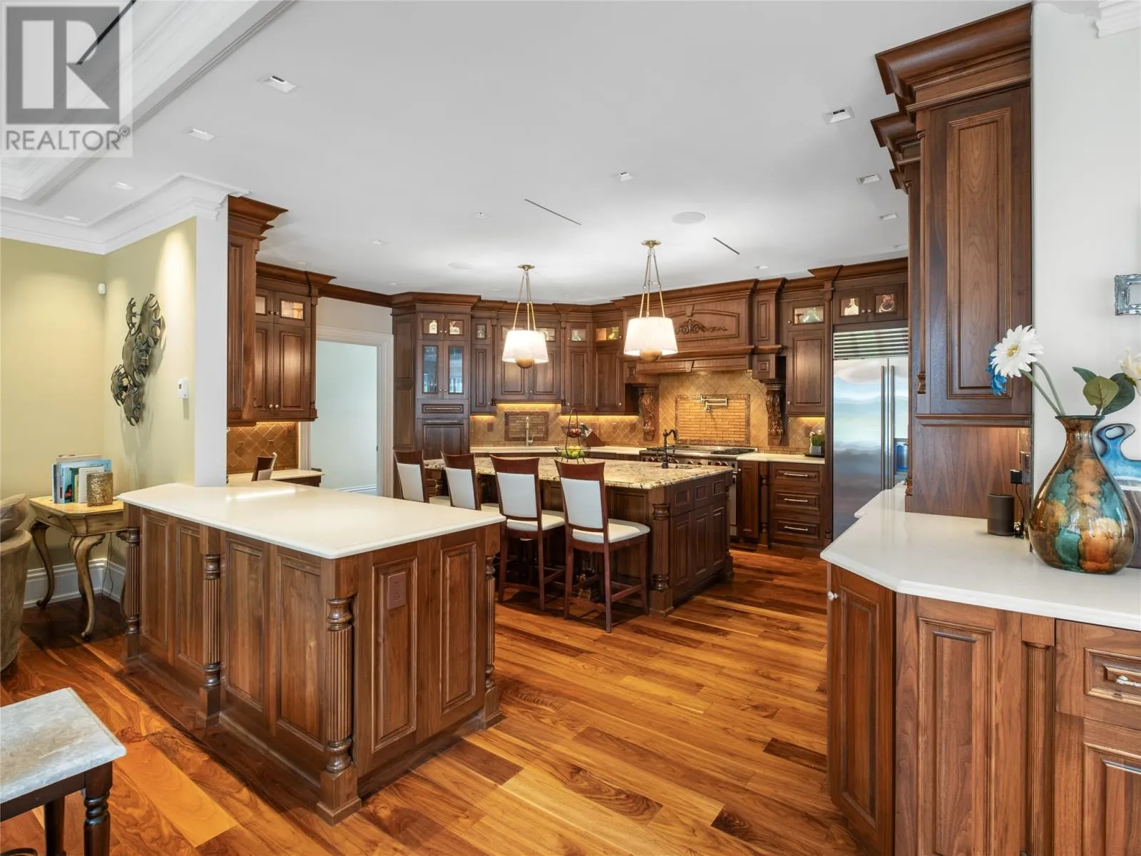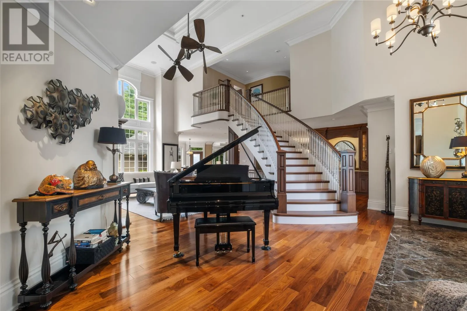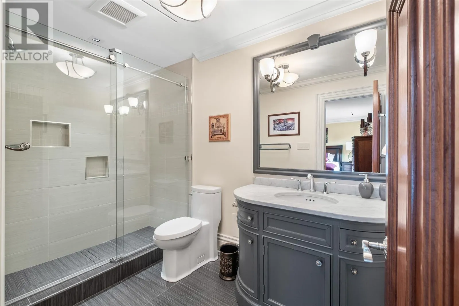 This magnificent family home is nestled on a 1/2-acre lot in a sought-after west end neighborhood, adjacent to Bowring Park & the 6km South Brook walking trail! Bboasting meticulously landscaped grounds, including all around landscape lighting, automatic sprinkler, & stone & concrete hardscapes, this home is sure to impress. Elegantly designed with an open-concept layout on the main floor, this 2-story home offers 4 spacious bedrooms & 5 luxurious bathrooms, catering to every modern comfort & convenience. The main floor presents a grand great room with soaring ceilings & a striking elegant fireplace, which seamlessly extends to the dining nook overlooking the rear gardens & kitchen. The chef-inspired walnut kitchen (completed by CherryNook) is a culinary dream, equipped with professional-grade appliances, pot-filler, ceiling-height cabinetry, solid surface countertops, & a sit-up island that comfortably accommodates 4. Additional features on the main floor include the primary suite with stunning ensuite with built-ins & impressive walk-in closet, a family room with f/p, laundry room, powder room, & two separate attached garages. The custom walnut staircase (by Precision) leads to the upper-level housing 3 generously sized bedrooms, all with ensuites. The deluxe lower level is an entertainer's paradise, featuring a wine cellar with kitchenette & tasting bar, a wet bar/billiards room, rec room, games area, full bath & tons of storage. With entertaining in mind, the rear gardens are equally as impressive featuring a covered backyard lounge area with custom stone f/p, indoor-outdoor living space with sit-up wet bar & professional grade appliances & BBQ, heaters & remote blinds, & 8 person in-ground hot tub. Every detail of this home has been thoughtfully crafted to offer unparalleled luxury & comfort including Lutron lighting & blind control, in-floor heating, custom trim finishes, 2 laundry rooms, & 50-year architectural shingles, just to name a few! (id:27476)