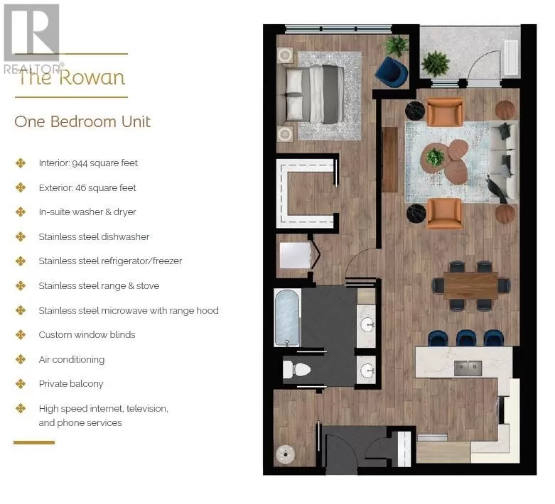 One Churchill Park is an immaculately maintained luxury apartment building centrally located in St. John's. With its numerous amenities, this building allows for plenty of opportunity for in-house social and independent activity, or the opportunity to host family and friends, via its common space, including an event room with full kitchen, large dining table for 10, television, seating area, and a large 2nd floor patio with seating and BBQs! There is also a gym! And that's not the best part - The Rowan has a warm and welcoming open concept living area, plenty of storage and a separate in-unit laundry room with storage! The expansive primary bedroom has a walk-in closet with access to main bath with custom tiled shower! This unit has several high-end features, including a tray ceiling in the entry, custom blinds, upgraded trim features, tile kitchen backsplash, and stainless-steel appliances, and more! All units included 6 appliances, basic cable, internet, basic phone, and one secured underground parking stall. The building includes separate storage lockers for each unit (4âx7â), an upgraded security system with secured access, and a full-time onsite building manager. NO CONDO FEES!! Available September 1st. (id:27476)