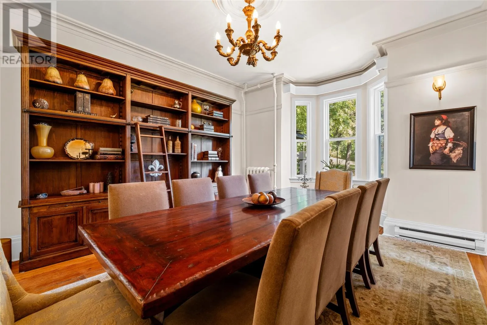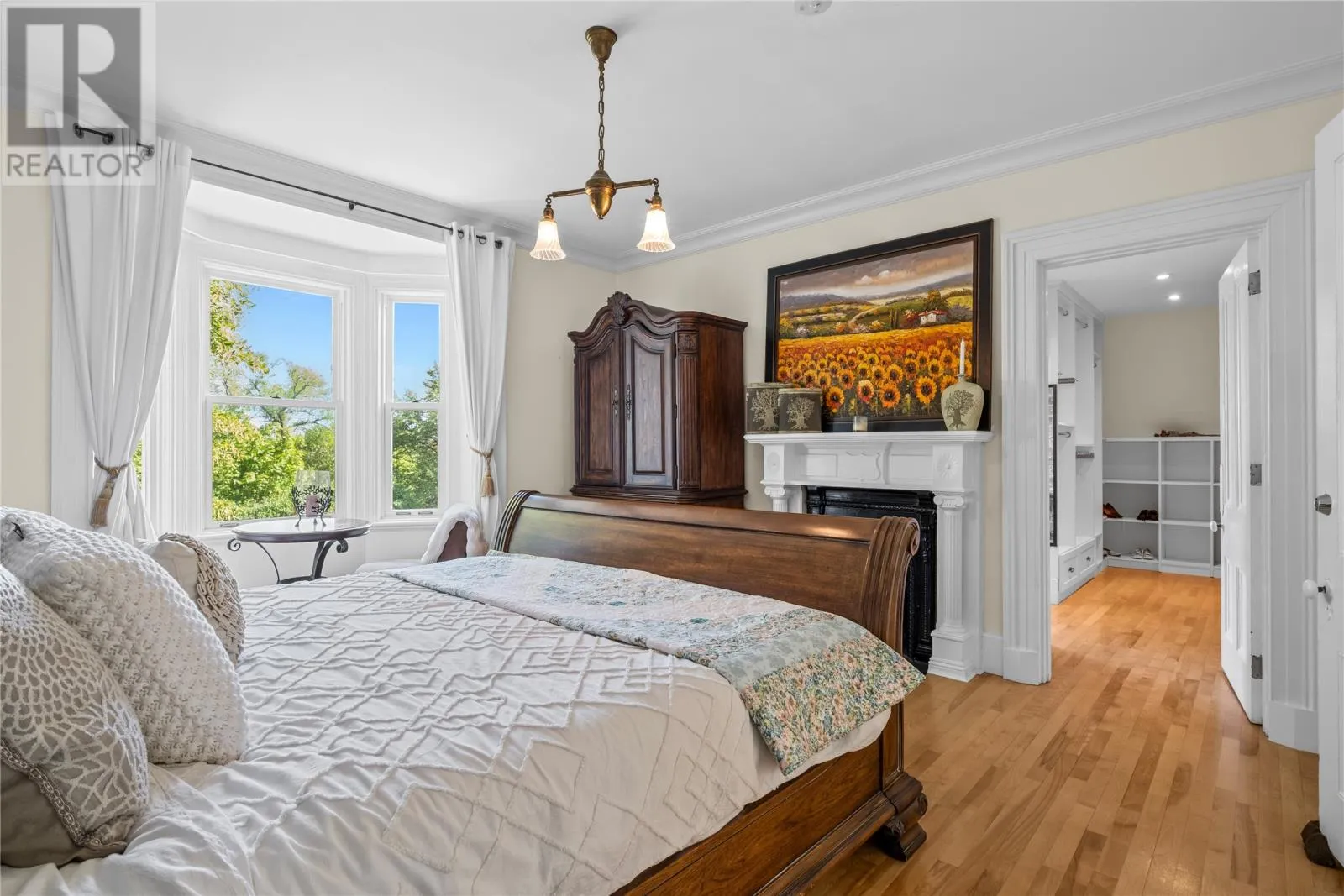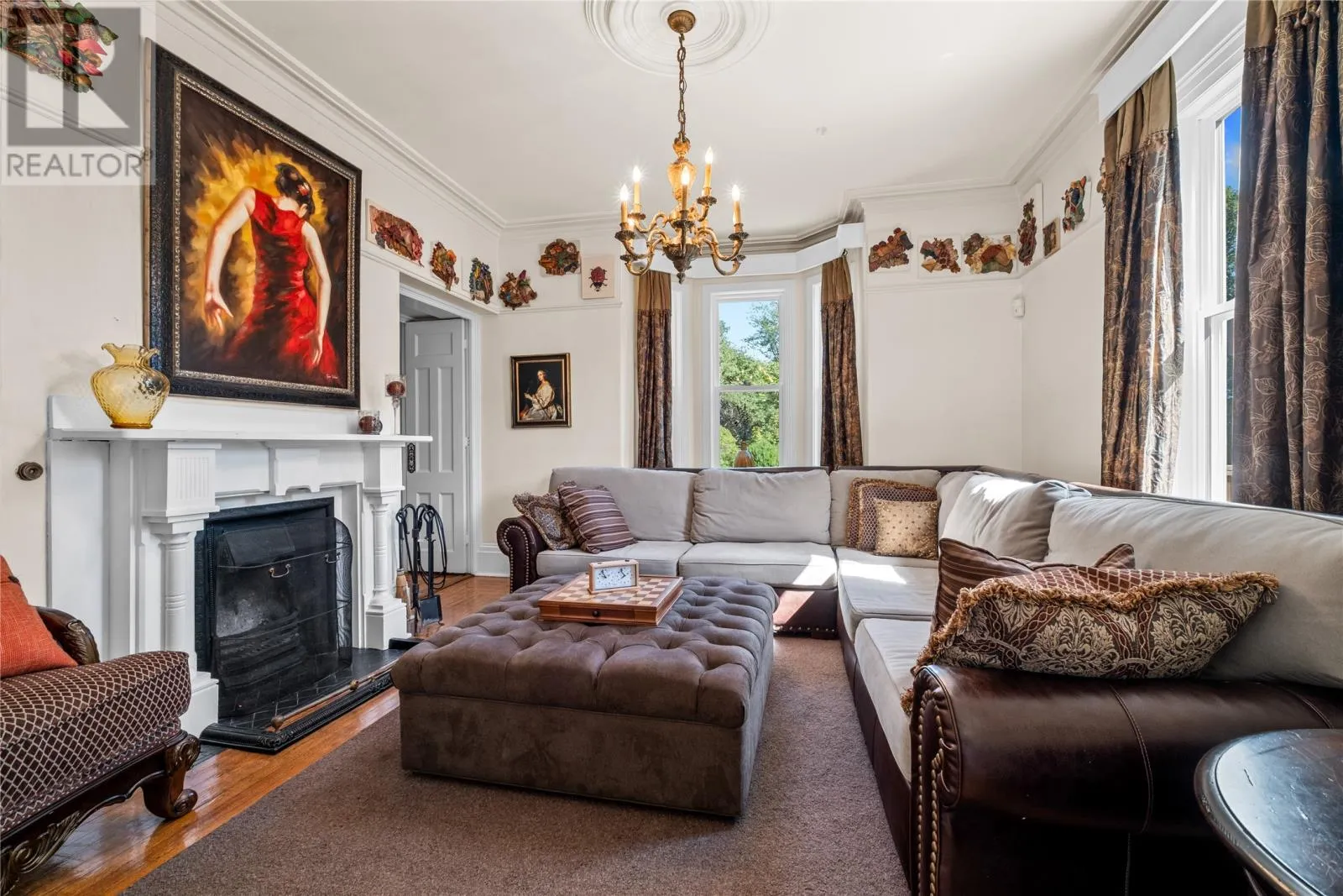 Also known as Angel House, this remarkable Second Empire-style residence, c.1879, is a rare & elegant example of 19th-century craftsmanship. Built by the Hon. James Angelâprominent in Newfoundlandâs industrial history & associated with the United Nail & Foundryâthe home retains many original features while offering modern comforts. Set on nearly 1 acre of professionally landscaped grounds, the property is surrounded by mature trees & heritage plantings, including cherry, apple, elm, walnut, lilac & rhododendron. The exterior showcases a five-sided Scotch dormer atop the mansard roof, ornate millwork & grand bay windows. A bright front porch leads to a stately foyer & large principal rooms: formal living & dining rooms, a cozy den, & a beautifully updated kitchen. The main floor features original back-to-back fireplaces, intricate woodwork & a graceful staircase. The kitchen blends classic style with modern functionalityâceiling-height cabinetry, stainless steel appliances (double wall oven, propane stove), farmhouse sink, large island, & an adjoining sitting area with access to a side porch. A powder room completes the main floor. Upstairs offers 3 spacious bedrooms, each with its own ensuite. The primary suite includes a walk-in closet & spa-like ensuite with soaker tub, custom shower & in-floor heat. A cozy sitting area with bay window overlooks the grounds. The basement includes a rec room with fireplace, full bath, laundry, & a bonus room currently used as an artist's studio. Recent updates include some plumbing & electrical, chimney & fireplace maintenance, new front steps & decks, & 2024 siding & window replacements. Angel House blends historic charm, modern convenience & timeless eleganceâjust minutes from all amenities. Lease rate is $5000/month POU - furnishings can be negotiated (id:27476)