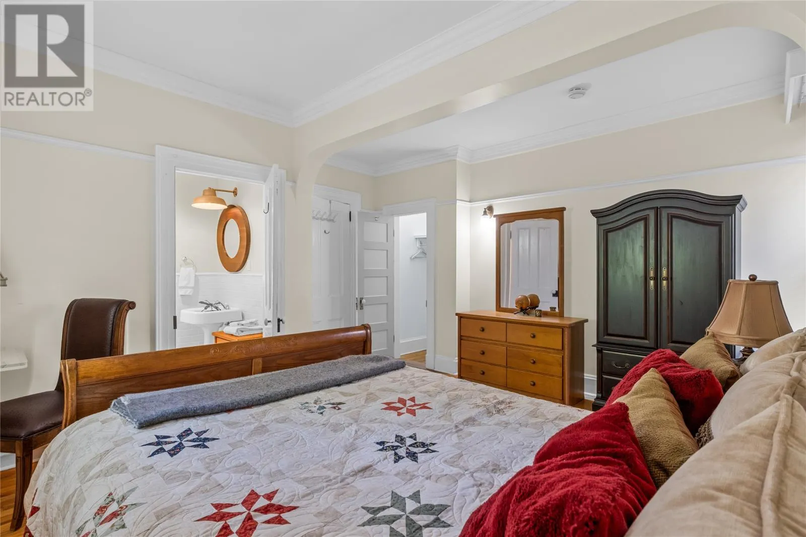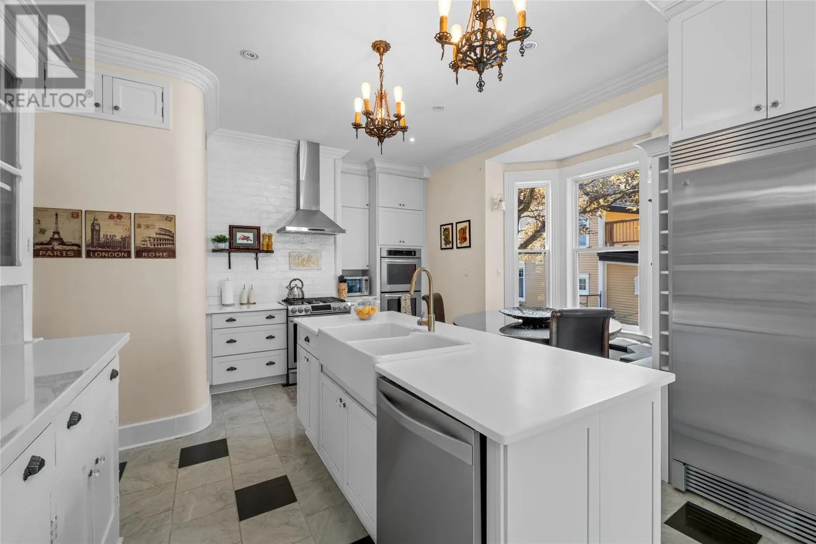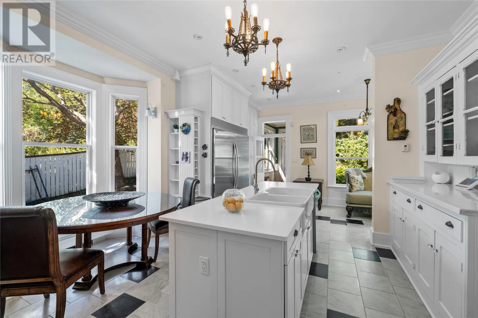 Also known as Angel House, this remarkable Second Empire-style residence, c.1879, is a rare & elegant example of 19th-century craftsmanship. Built by the Hon. James Angelâprominent in Newfoundlandâs industrial history & associated with the United Nail & Foundryâthe home retains many original features while offering modern comforts. Set on nearly 1 acre of professionally landscaped grounds, the property is surrounded by mature trees & heritage plantings, including cherry, apple, elm, walnut, lilac & rhododendron. The exterior showcases a five-sided Scotch dormer atop the mansard roof, ornate millwork & grand bay windows. A bright front porch leads to a stately foyer & large principal rooms: formal living & dining rooms, a cozy den, & a beautifully updated kitchen. The main floor features original back-to-back fireplaces, intricate woodwork & a graceful staircase. The kitchen blends classic style with modern functionalityâceiling-height cabinetry, stainless steel appliances (double wall oven, propane stove), farmhouse sink, large island, & an adjoining sitting area with access to a side porch. A powder room completes the main floor. Upstairs offers 3 spacious bedrooms, each with its own ensuite. The primary suite includes a walk-in closet & spa-like ensuite with soaker tub, custom shower & in-floor heat. A cozy sitting area with bay window overlooks the grounds. The basement includes a rec room with fireplace, full bath, laundry, & a bonus room currently used as an artist's studio. Recent updates include some plumbing & electrical, chimney & fireplace maintenance, new front steps & decks, & 2024 siding & window replacements. Angel House blends historic charm, modern convenience & timeless eleganceâjust minutes from all amenities. Lease rate is $5000/month POU - furnishings can be negotiated (id:27476)
