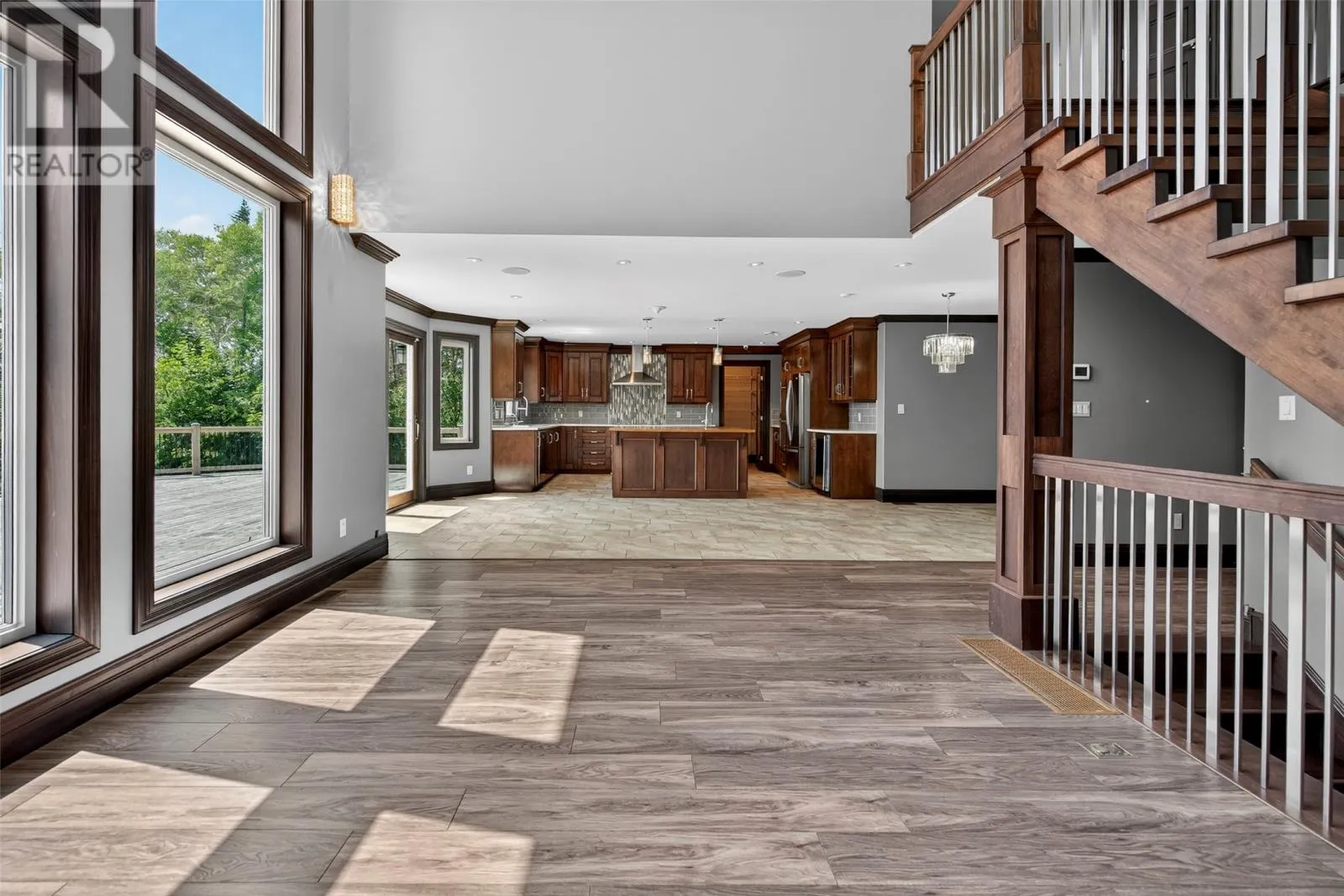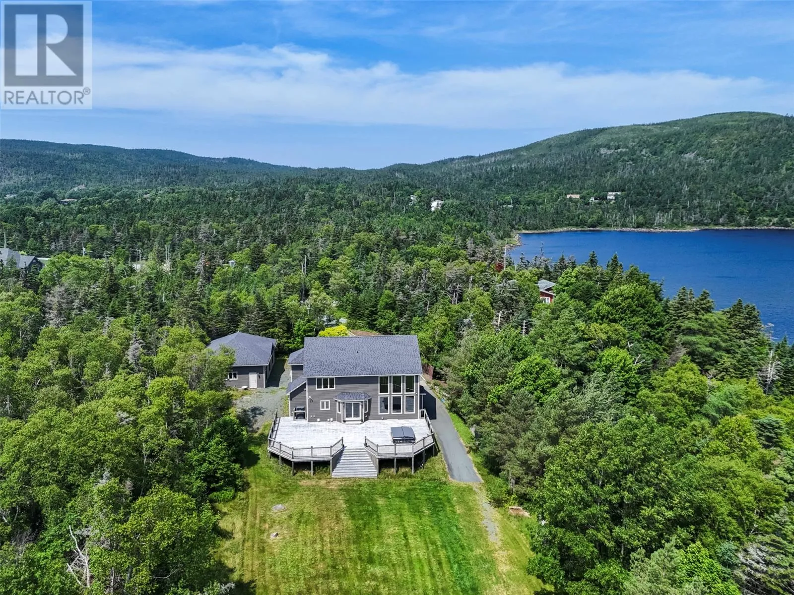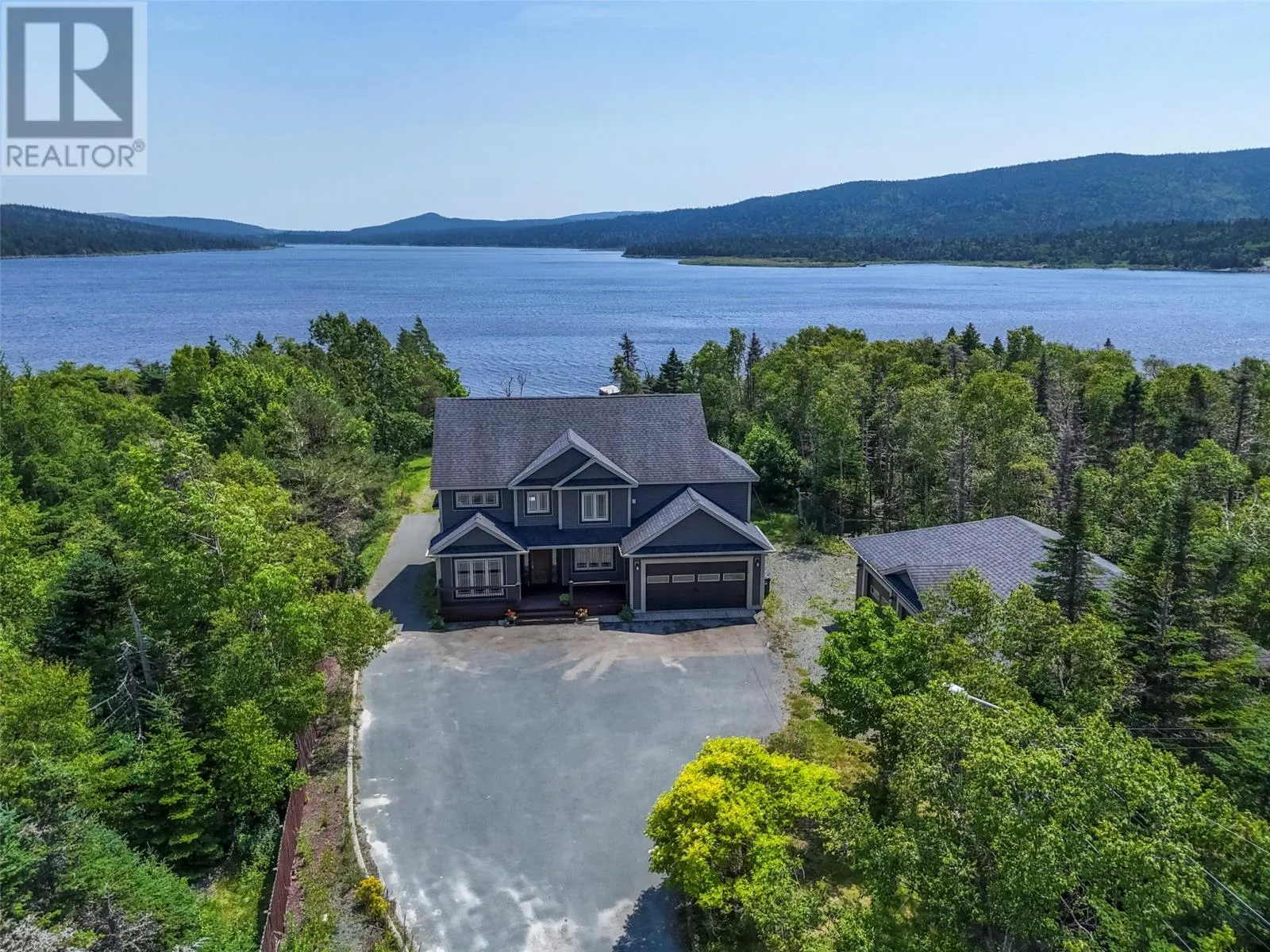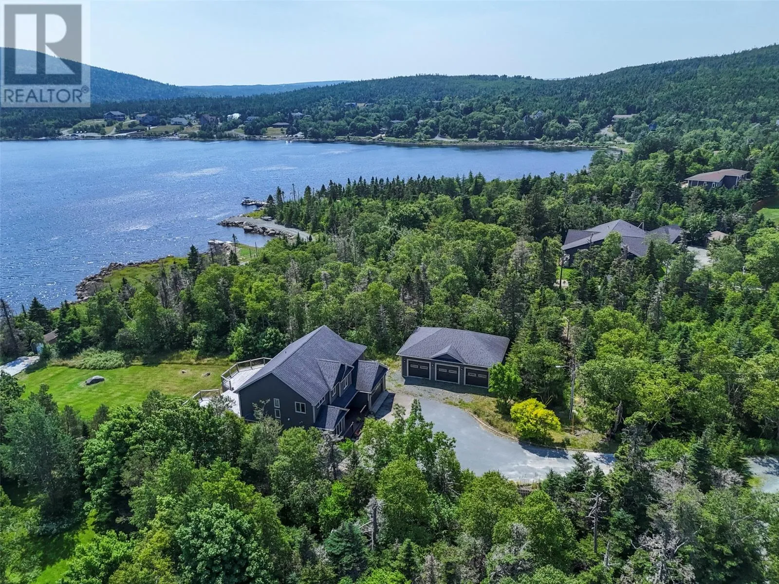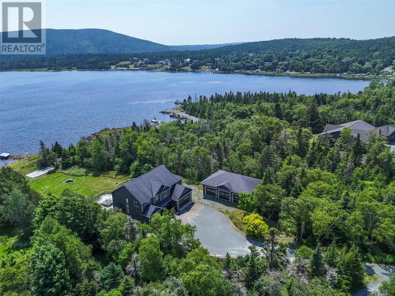 LUXURY PRIVATE WATERFRONT LIVING, 5 BED | 3.5 BATH | 3-BAY GARAGE | 1.25 Acres | 200' FRONTAGE ON SECOND POND. Just 20 Minutes from DOWNTOWN ST. JOHN'S! This executive one-of-a-kind waterfront home offers the perfect blend of privacy, luxury, and outdoor living on a stunning 1-acre lot with 200 feet of private pond frontage. Whether you're launching a Seadoo, paddleboard, or relaxing in the hot tub on your 1,500 sq/ft south-facing deck, this is the lifestyle you've been dreaming of! Featuring 5 spacious bedrooms, 3.5 bathrooms, and over 3800 sq/ft of living space, this home is a showstopper from the moment you enter. The grand foyer includes a convenient mudroom with direct access to the attached 2-car garage. A custom floating staircase and 16â ceilings highlight the breathtaking open-concept living area, all designed to maximize those panoramic lake views. The chefâs kitchen includes a massive walk-in pantry and flows beautifully into the dining and living areas. Upstairs, the primary suite features beautiful views, a spa-inspired ensuite, and a generous walk-in closet. Three additional bedrooms, full bath, and laundry complete the upper level. The fully developed basement includes a large family room, office, additional bedroom, full bath, and ample storage space. An additional 3-bay detached garage (heated with mini split) offers the perfect space for your collector car, ATVs, or watercraft. Efficient dual-zone forced air heat pump system ensures year round comfort. (id:27476)