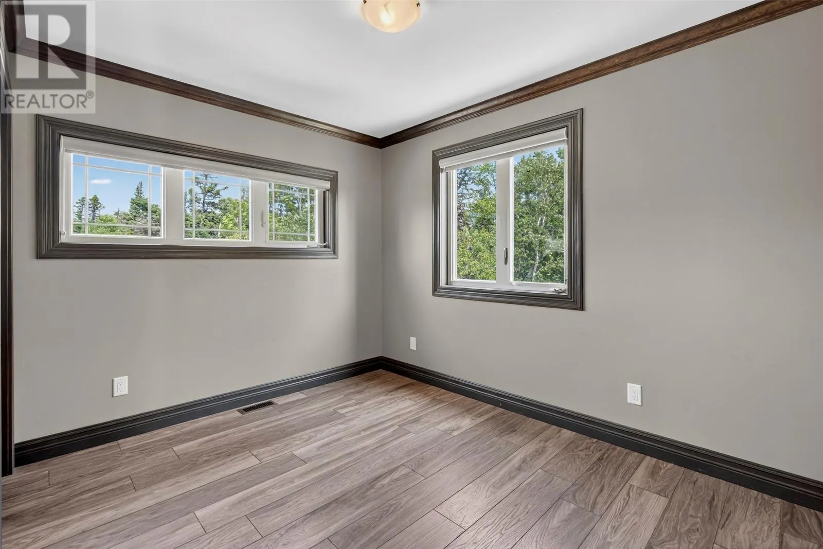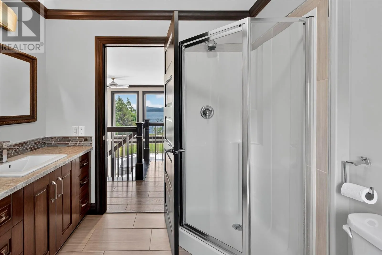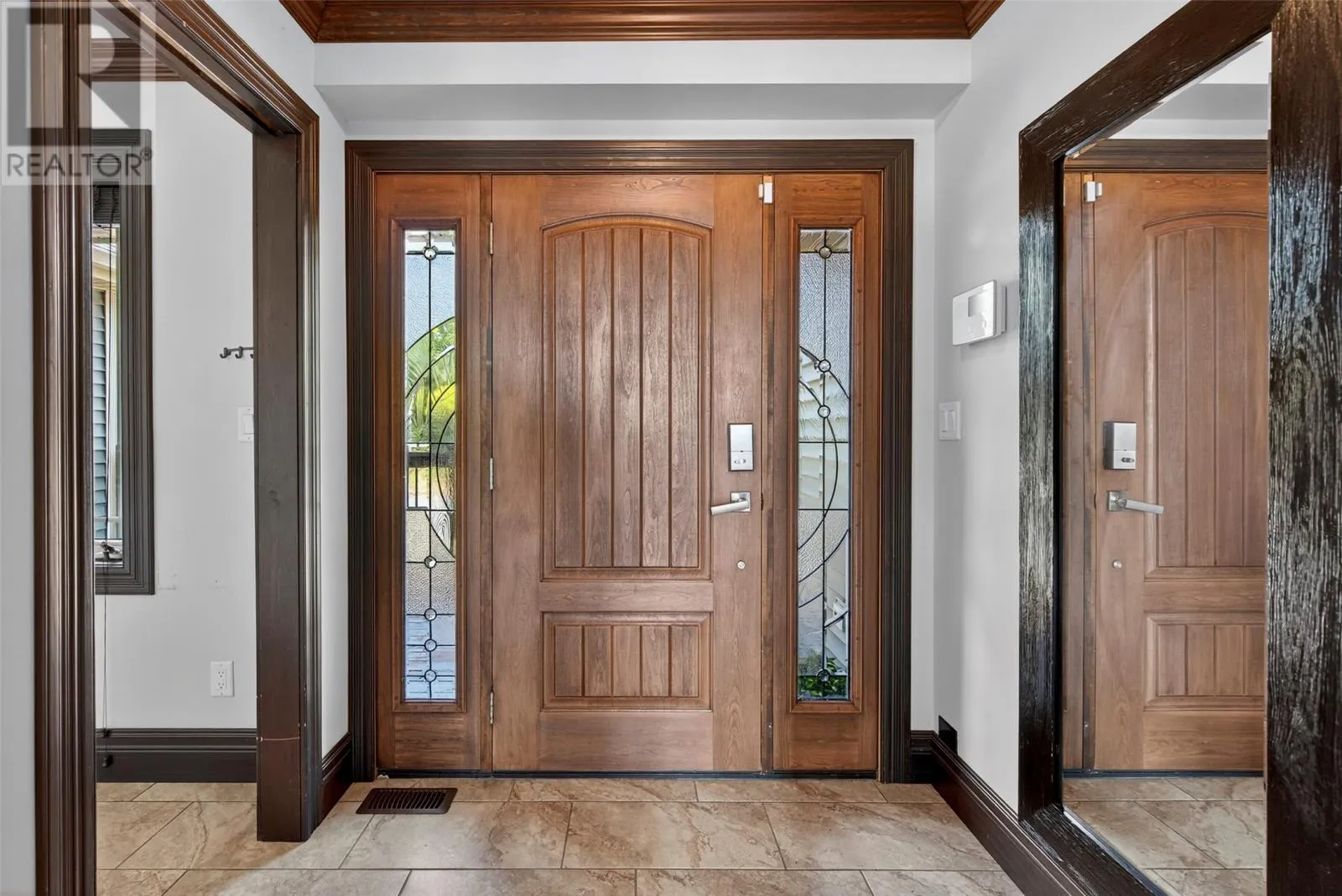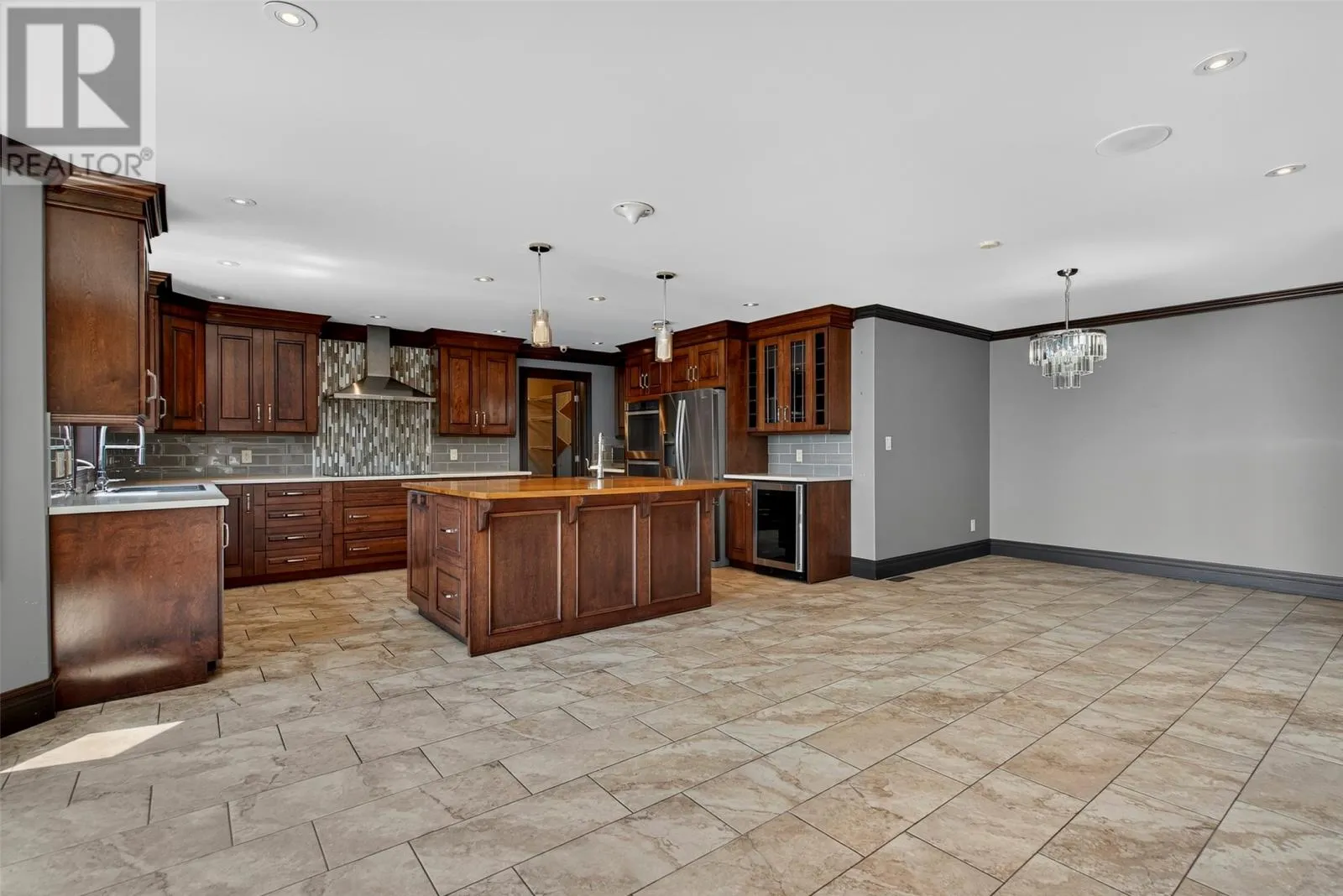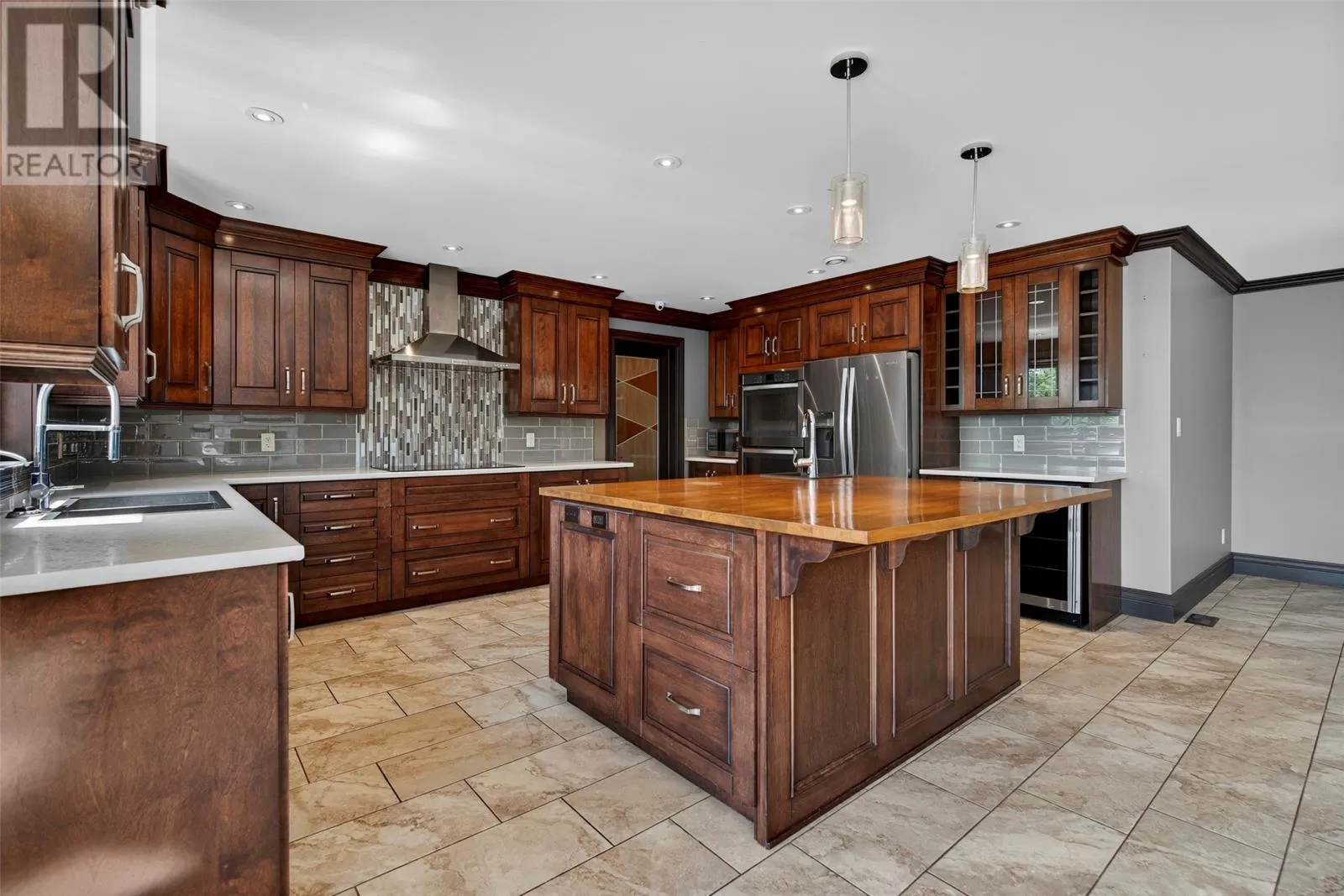 LUXURY PRIVATE WATERFRONT LIVING, 5 BED | 3.5 BATH | 3-BAY GARAGE | 1.25 Acres | 200' FRONTAGE ON SECOND POND. Just 20 Minutes from DOWNTOWN ST. JOHN'S! This executive one-of-a-kind waterfront home offers the perfect blend of privacy, luxury, and outdoor living on a stunning 1-acre lot with 200 feet of private pond frontage. Whether you're launching a Seadoo, paddleboard, or relaxing in the hot tub on your 1,500 sq/ft south-facing deck, this is the lifestyle you've been dreaming of! Featuring 5 spacious bedrooms, 3.5 bathrooms, and over 3800 sq/ft of living space, this home is a showstopper from the moment you enter. The grand foyer includes a convenient mudroom with direct access to the attached 2-car garage. A custom floating staircase and 16â ceilings highlight the breathtaking open-concept living area, all designed to maximize those panoramic lake views. The chefâs kitchen includes a massive walk-in pantry and flows beautifully into the dining and living areas. Upstairs, the primary suite features beautiful views, a spa-inspired ensuite, and a generous walk-in closet. Three additional bedrooms, full bath, and laundry complete the upper level. The fully developed basement includes a large family room, office, additional bedroom, full bath, and ample storage space. An additional 3-bay detached garage (heated with mini split) offers the perfect space for your collector car, ATVs, or watercraft. Efficient dual-zone forced air heat pump system ensures year round comfort. (id:27476)
