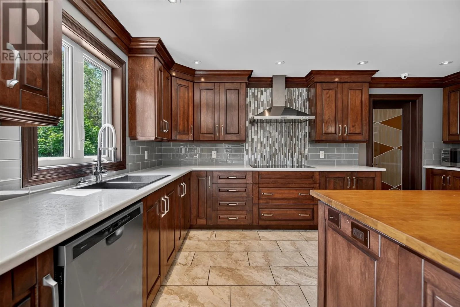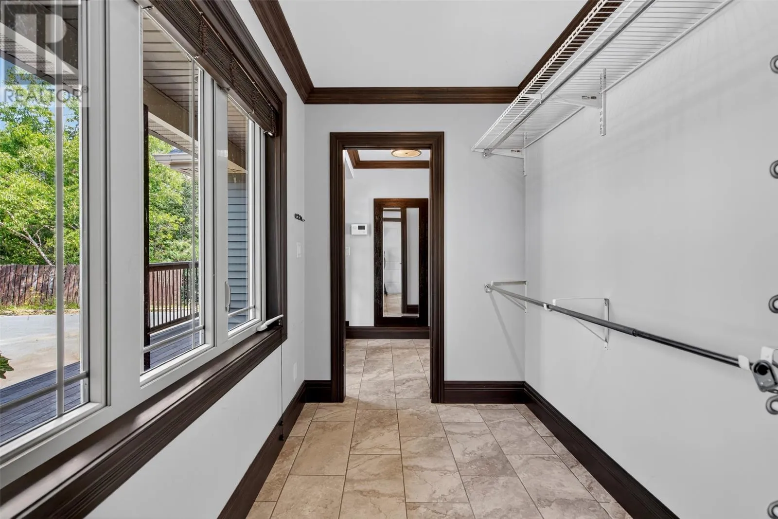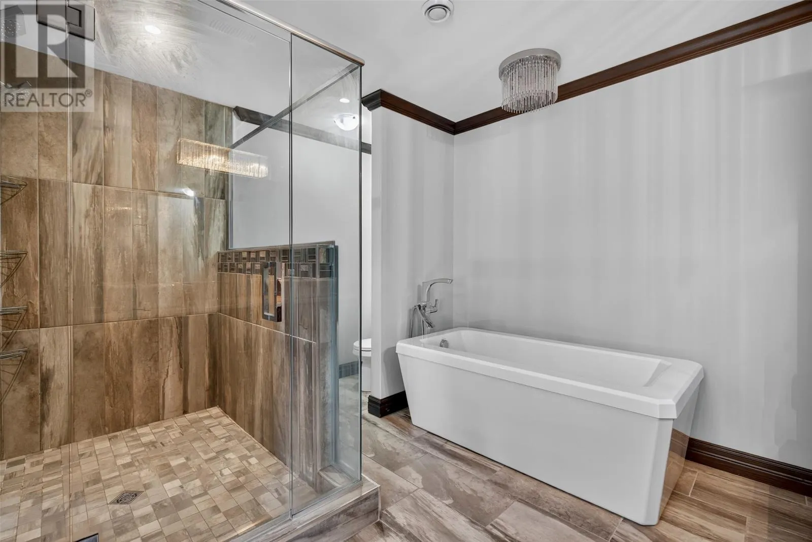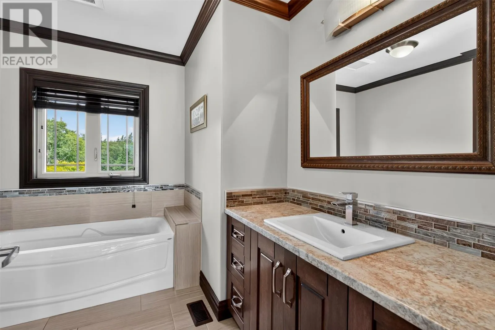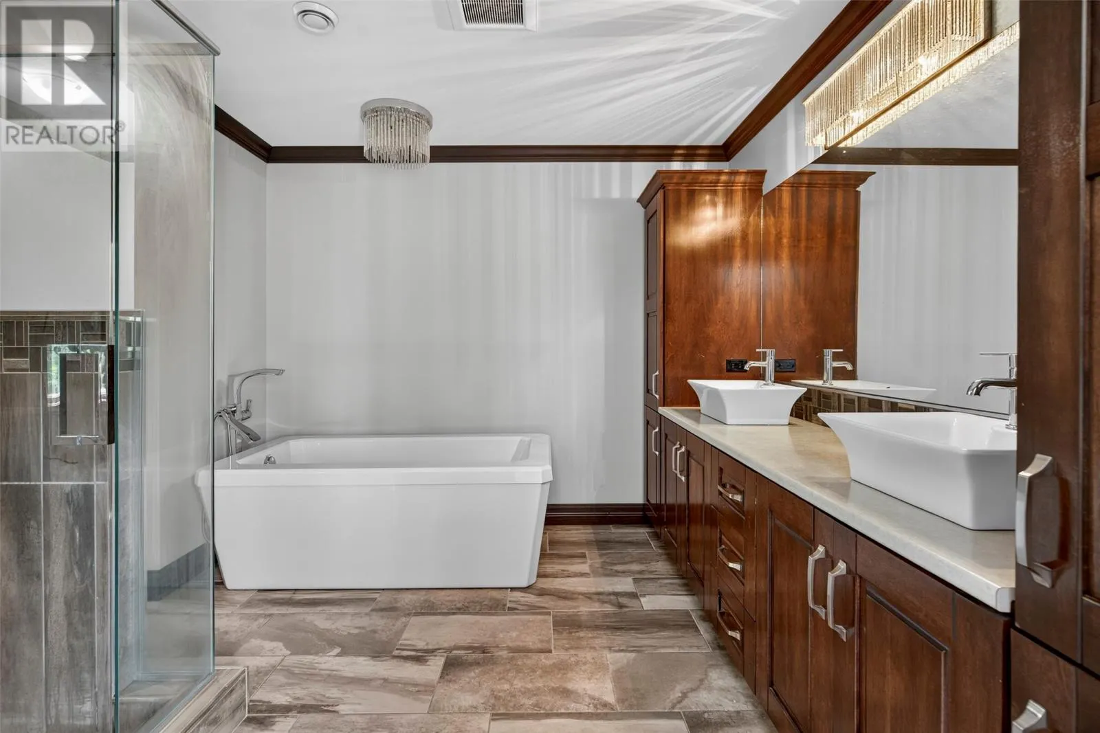 LUXURY PRIVATE WATERFRONT LIVING, 5 BED | 3.5 BATH | 3-BAY GARAGE | 1.25 Acres | 200' FRONTAGE ON SECOND POND. Just 20 Minutes from DOWNTOWN ST. JOHN'S! This executive one-of-a-kind waterfront home offers the perfect blend of privacy, luxury, and outdoor living on a stunning 1-acre lot with 200 feet of private pond frontage. Whether you're launching a Seadoo, paddleboard, or relaxing in the hot tub on your 1,500 sq/ft south-facing deck, this is the lifestyle you've been dreaming of! Featuring 5 spacious bedrooms, 3.5 bathrooms, and over 3800 sq/ft of living space, this home is a showstopper from the moment you enter. The grand foyer includes a convenient mudroom with direct access to the attached 2-car garage. A custom floating staircase and 16â ceilings highlight the breathtaking open-concept living area, all designed to maximize those panoramic lake views. The chefâs kitchen includes a massive walk-in pantry and flows beautifully into the dining and living areas. Upstairs, the primary suite features beautiful views, a spa-inspired ensuite, and a generous walk-in closet. Three additional bedrooms, full bath, and laundry complete the upper level. The fully developed basement includes a large family room, office, additional bedroom, full bath, and ample storage space. An additional 3-bay detached garage (heated with mini split) offers the perfect space for your collector car, ATVs, or watercraft. Efficient dual-zone forced air heat pump system ensures year round comfort. (id:27476)
