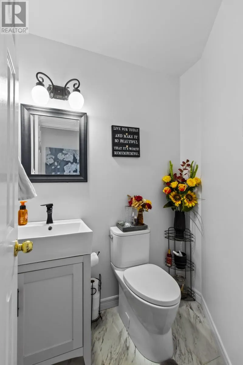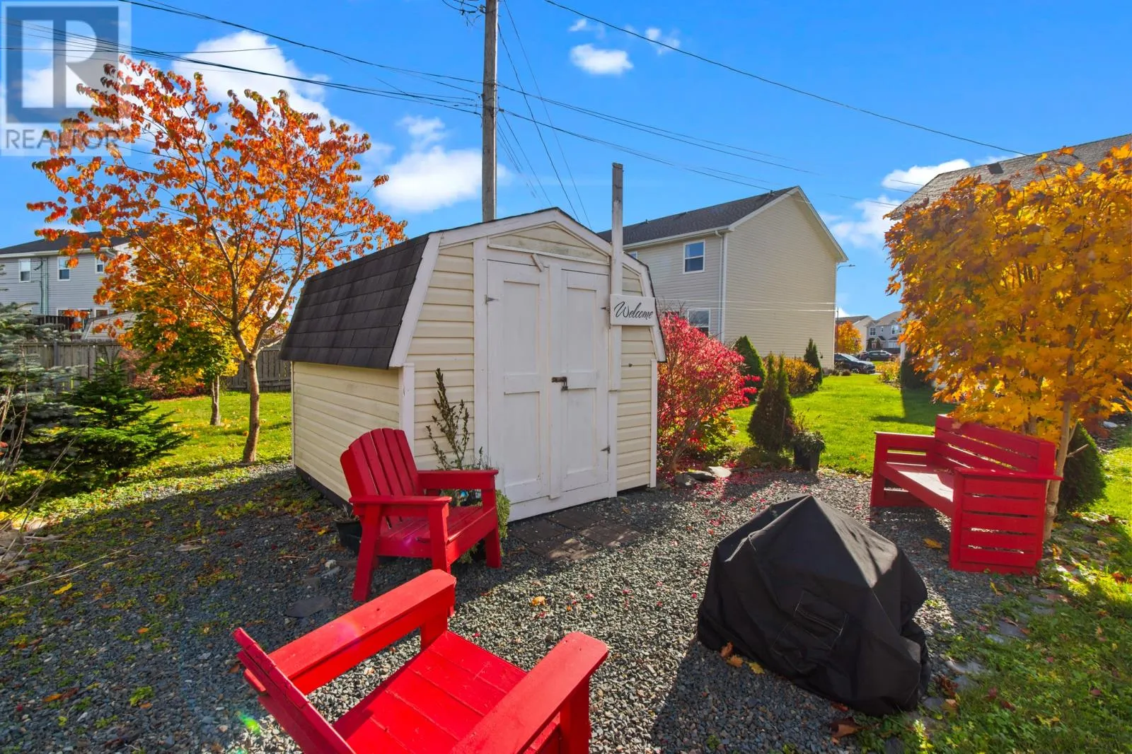 Conveniently located in the South Brook subdivision in St. John's, just minutes from the highway and shopping in Mount Pearl this home is perfect for the first-time home buyer or buyers downsizing. Beautiful modern decor throughout this well maintained, meticulously cared for home. On the main floor you will find an eat in kitchen with lovely oak cabinetry /stylist backsplash, family room with a cozy propane fireplace to sit and relax and a spacious bright cheerful living room for leisure times and a main floor half bath . On the upper floor you will find 3 nice sized bedrooms and the main family bath. The master bedroom features a walk-in closet and 3 pc ensuite. In the basement you will find laundry facilities, as well as a nice sized recreation area for further development,rough-in for bath. Private rear patio deck which you will be able to access your rear yard which is situated on a larger than average beautifully treed landscaped green belted lot.There is an abundance of yard space to enjoy your fire pit and lots of privacy from the mature treed lot. Shed in rear yard. Vendor will be replacing shingles weather permitting prior to closing or providing an allowance to complete. (id:27476)