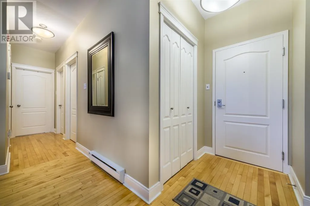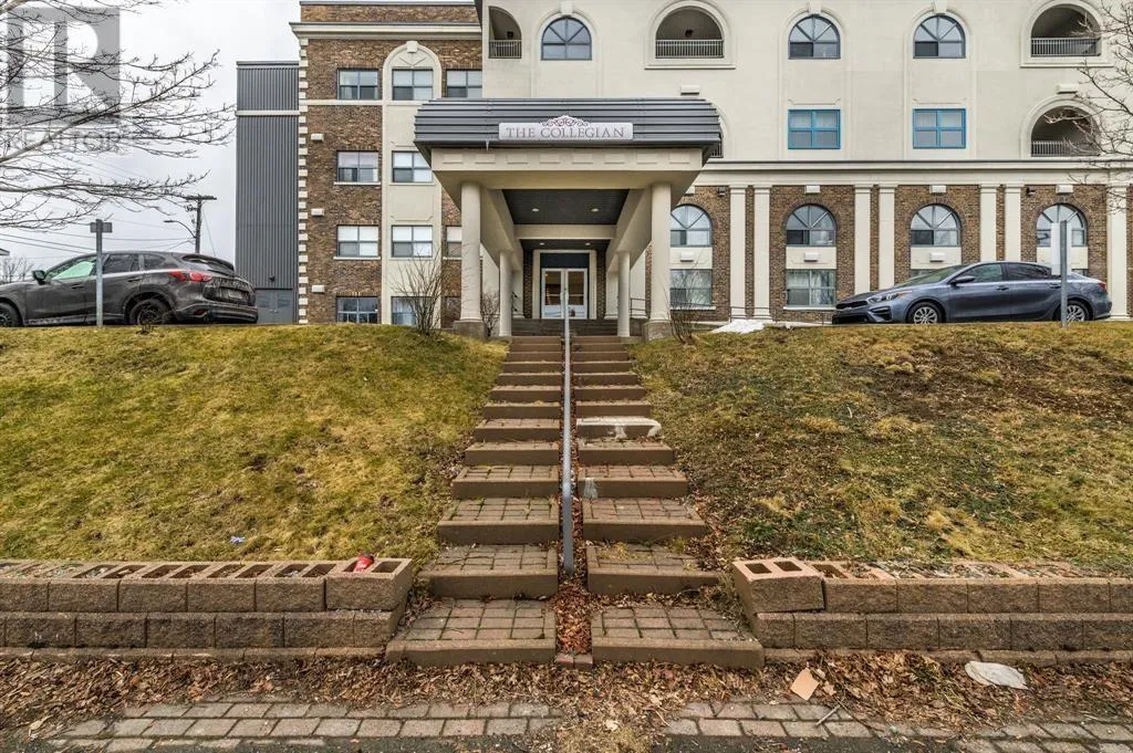 This Beautiful 2 bedroom 2 bathroom Condo is located in the popular COLLEGIAN CONDOMINIUMS in the heart of the city, within walking distance of Downtown and all amenities. This condo has high ceilings, stainless steel appliances, ensuite whirlpool bath, walk-in closet, large foyer, modern kitchen, custom blinds, Newfoundland Birch floors, open concept living. Laundry in Unit. One parking space per unit with visitor parking. This building has an ELEVATOR. (id:27476)