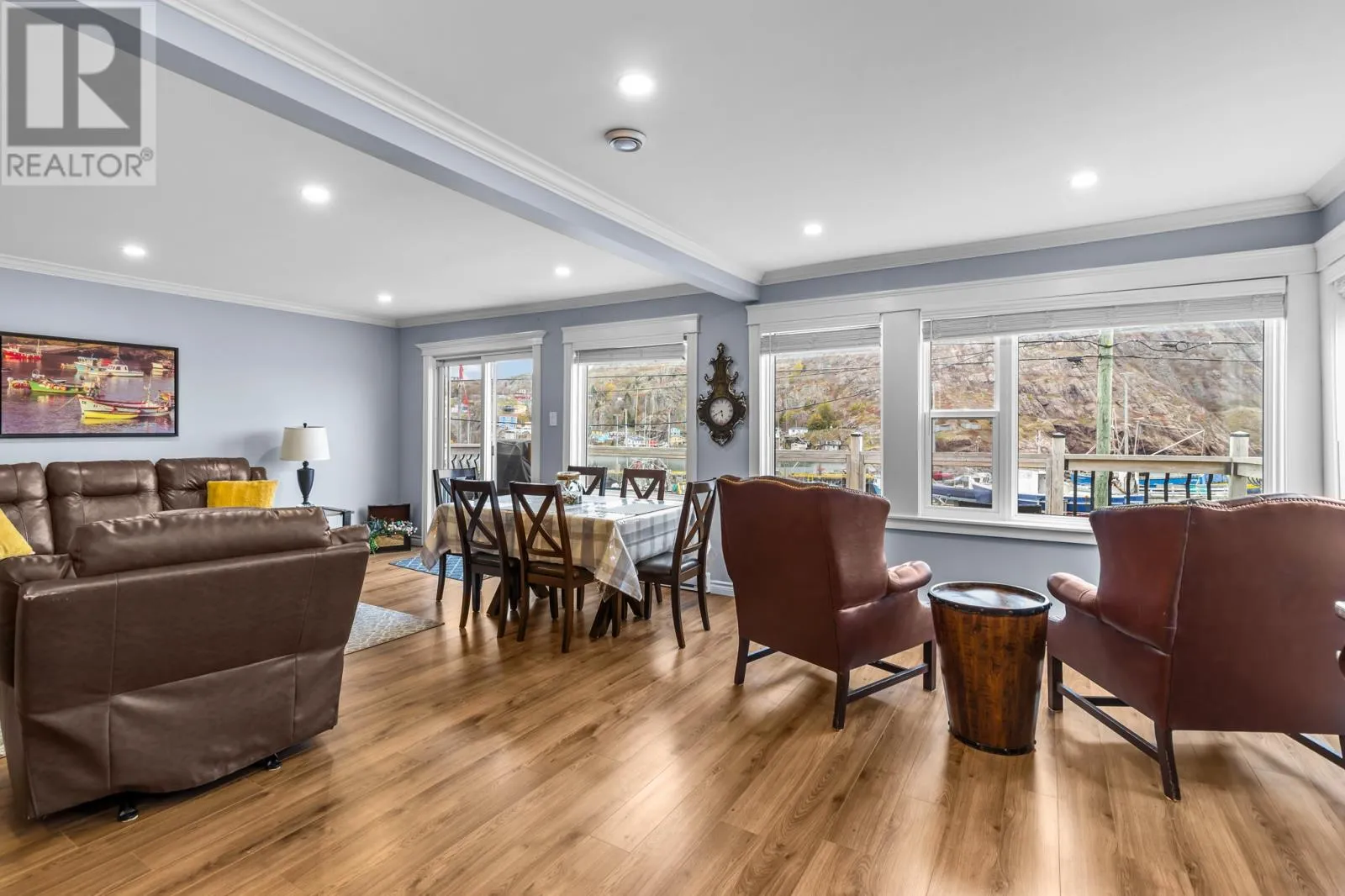 Nestled in the Southside Hills of Fort Amherst, this one-of-a-kind three-bedroom, three-bath harbourfront home sits along the edge of historic St. Johnâsâthe oldest city in North America. Built in 1941 by a local fishing family, it blends timeless character with modern comfort, offering breathtaking panoramic views of the harbour and Signal Hill from its large front windows and upper deck. The spacious layout features three inviting bedrooms and three bathrooms, two of which include private ensuites, along with an open-concept kitchen, dining, and living area, plus convenient laundry facilities. Watch local fishermen at work in the nearby small-boat basin or enjoy the sight of majestic cruise ships gliding into port. Currently operated as a successful Airbnb, this home comes fully furnished with modern finishes, off-street parking, and keypad entry for easy access. With its blend of heritage charm, contemporary amenities, and unparalleled harbour views, this is truly a one-of-a-kind property offering one of the most distinctive coastal living experiences in St. Johnâs. (id:27476)