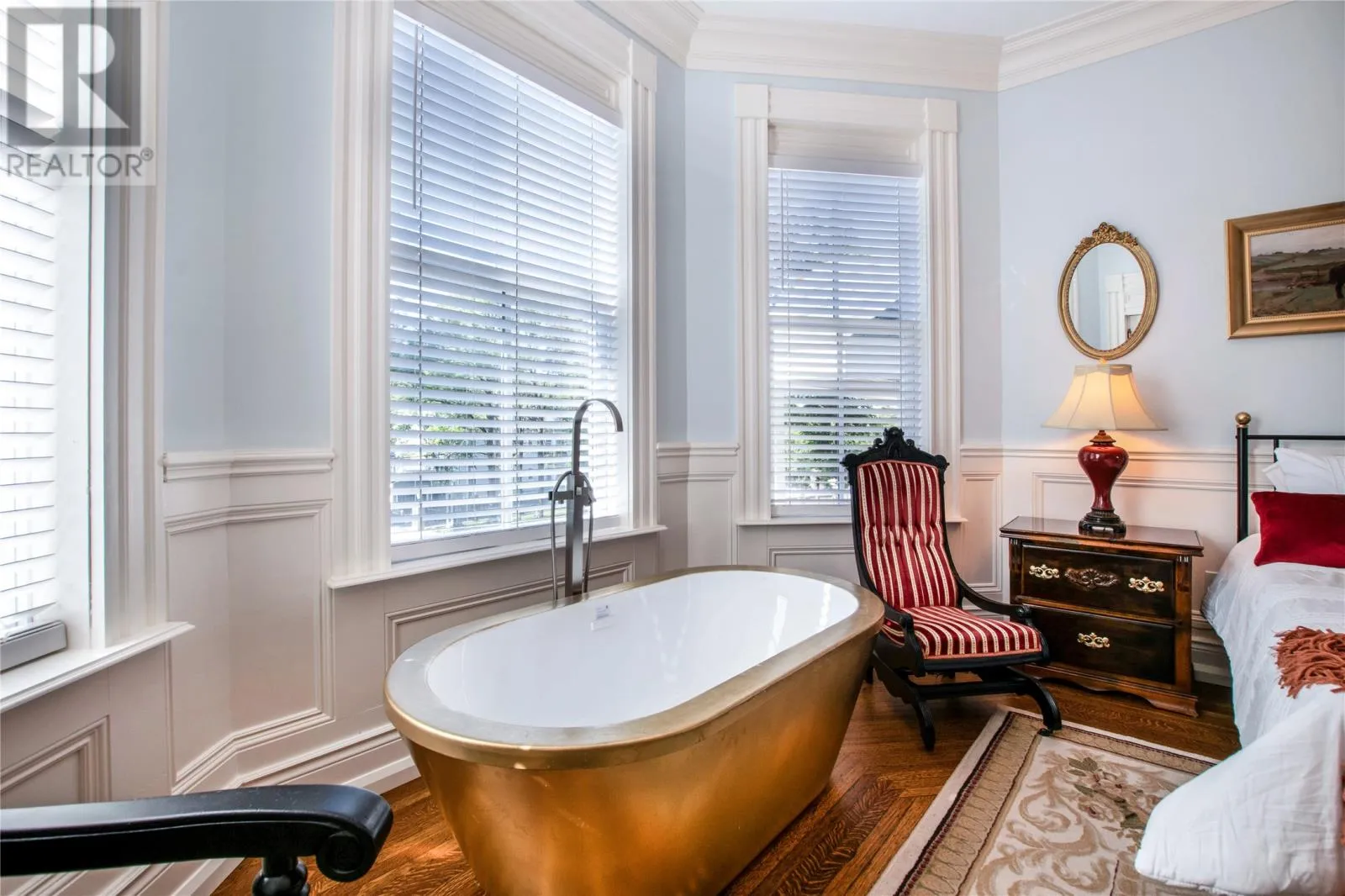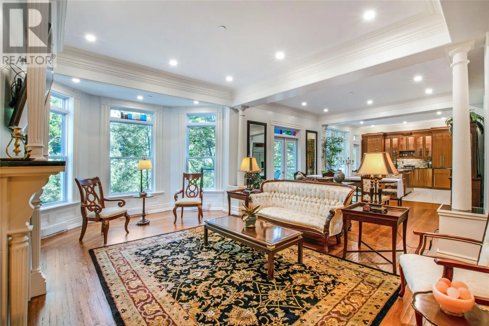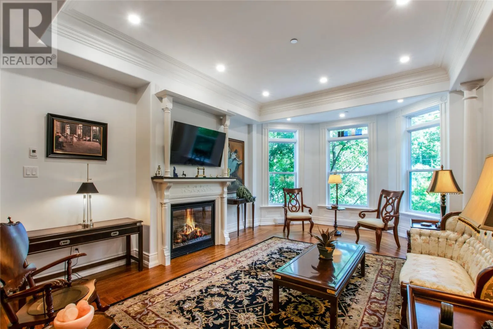 Set along the banks of the Waterford River, Julianâs Gate is a landmark restoration of one of St. Johnâs most historic estates. The residence has been reimagined into six private suites that blend heritage character with modern design. The result is a rare opportunity to live surrounded by nature, just minutes from downtown. The Laurel Suite occupies the second level and represents everything Julianâs Gate stands for. Spanning more than 2,300 square feet, it offers a graceful balance of history and comfort. Sunlight filters through tall windows, illuminating the detailed millwork and warm hardwood floors that define the space. The open living area is anchored by a propane fireplace, with dual balconies extending out to views of the valley and mature trees that frame the Waterford below. A modern kitchen with custom cabinetry and high-end finishes flows seamlessly into the dining and living areas, creating a space that feels both refined and inviting. Two bedrooms, three baths, and a dedicated upper-level study provide flexibility for work, guests, or retreat. The Waterford Valley is known for its quiet beauty â tree-lined paths, Bowring Park just downstream, and the soft rhythm of the river. Here, the best of St. Johnâs is close at hand, yet the setting feels a world apart. (id:27476)