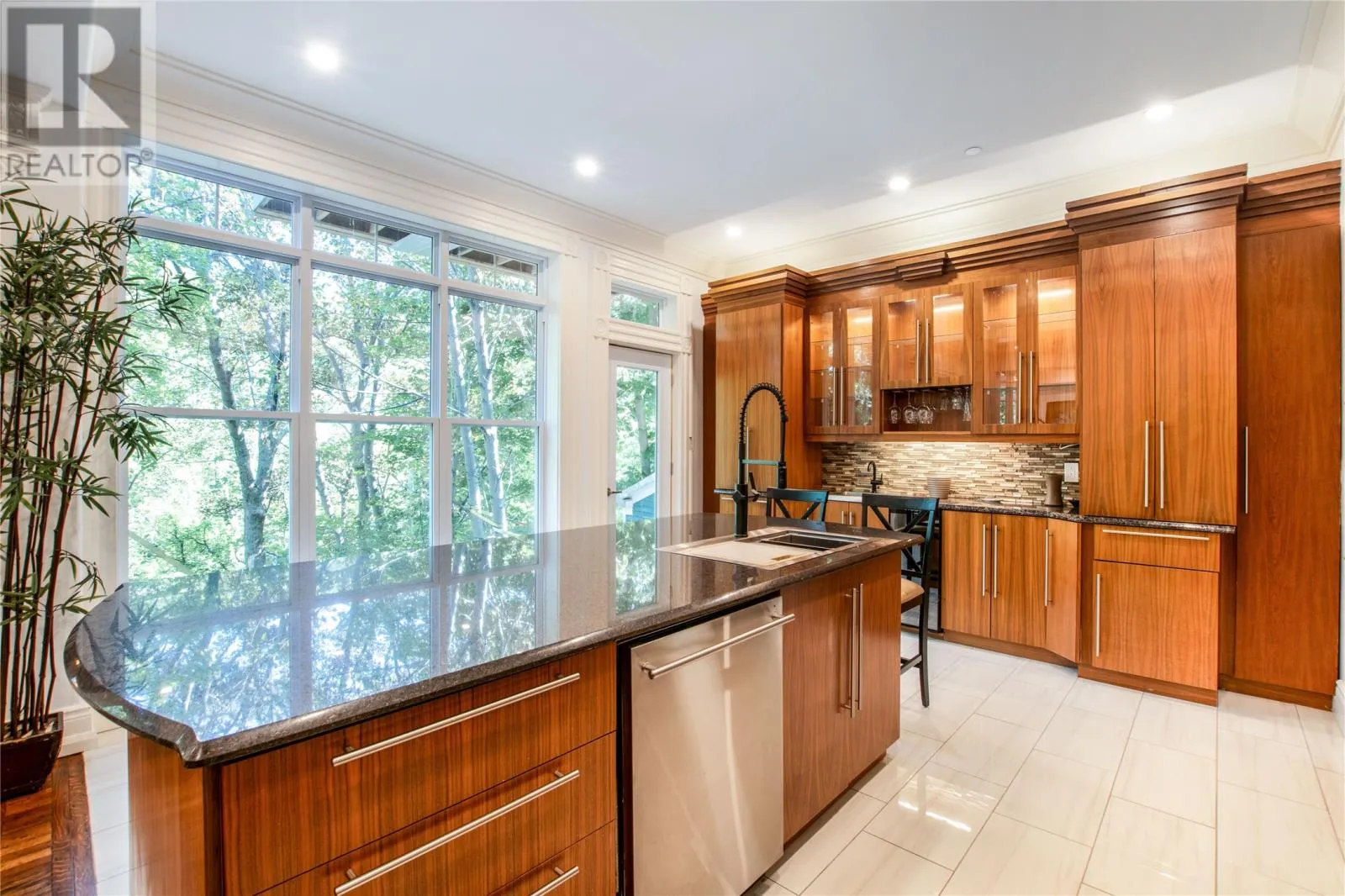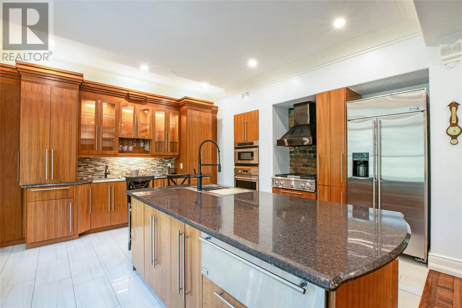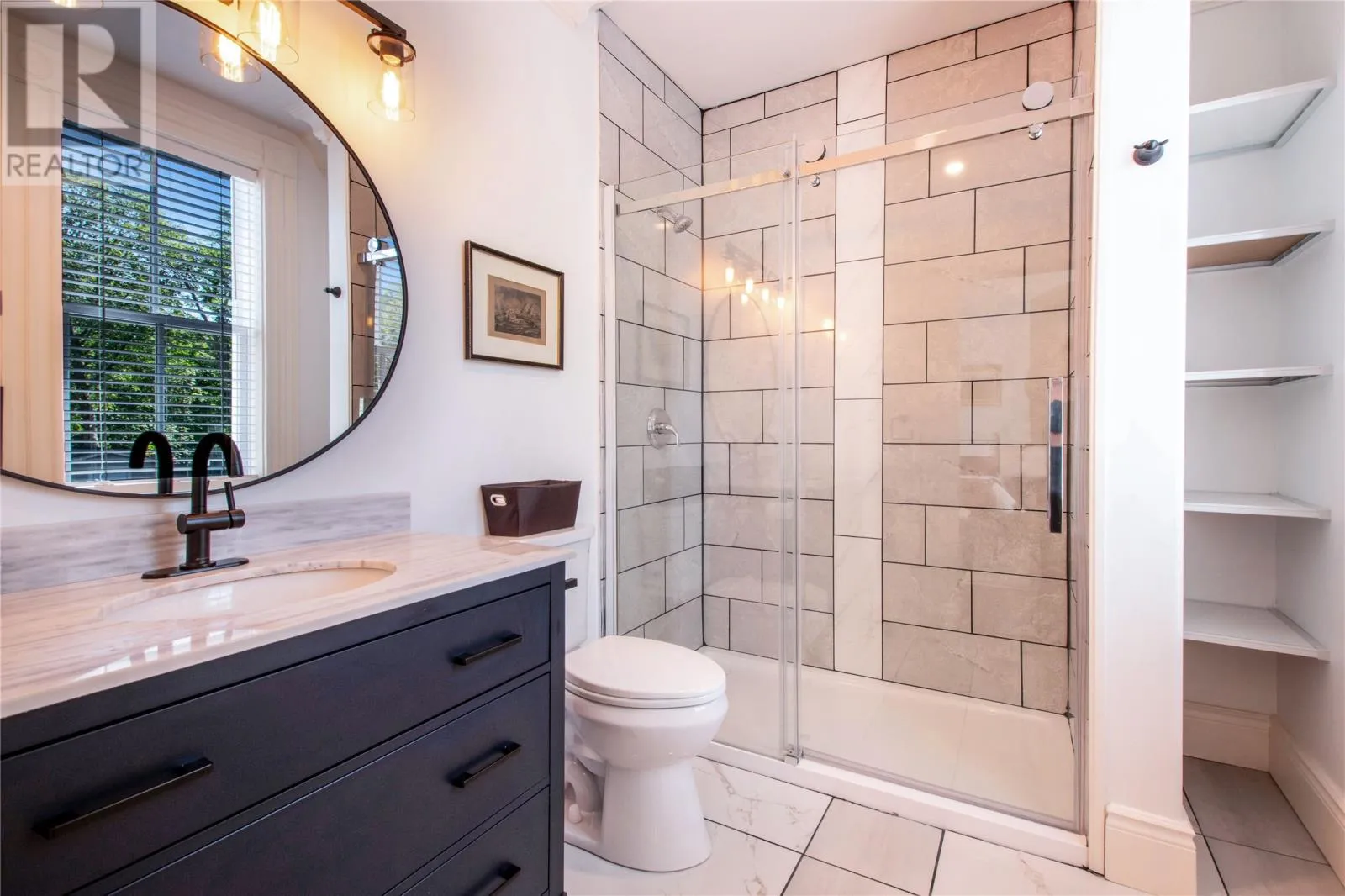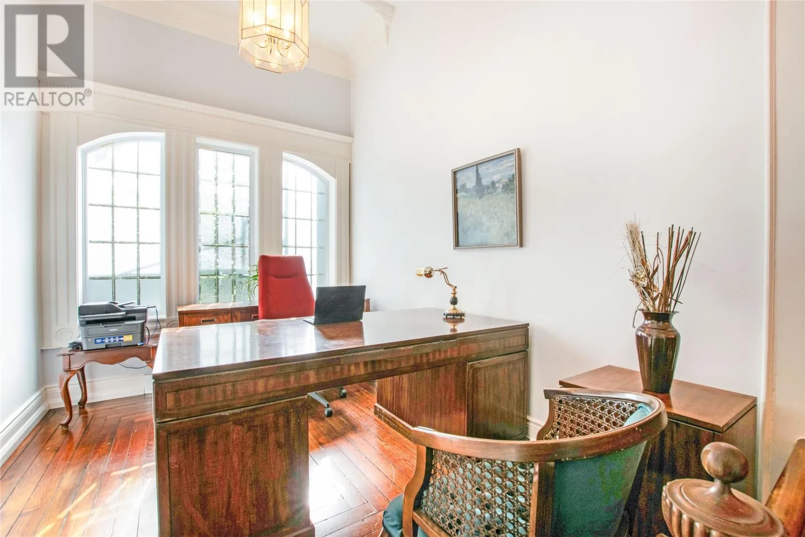Set along the banks of the Waterford River, Julianâs Gate is a landmark restoration of one of St. Johnâs most historic estates. The residence has been reimagined into six private suites that blend heritage character with modern design. The result is a rare opportunity to live surrounded by nature, just minutes from downtown. The Laurel Suite occupies the second level and represents everything Julianâs Gate stands for. Spanning more than 2,300 square feet, it offers a graceful balance of history and comfort. Sunlight filters through tall windows, illuminating the detailed millwork and warm hardwood floors that define the space. The open living area is anchored by a propane fireplace, with dual balconies extending out to views of the valley and mature trees that frame the Waterford below. A modern kitchen with custom cabinetry and high-end finishes flows seamlessly into the dining and living areas, creating a space that feels both refined and inviting. Two bedrooms, three baths, and a dedicated upper-level study provide flexibility for work, guests, or retreat. The Waterford Valley is known for its quiet beauty â tree-lined paths, Bowring Park just downstream, and the soft rhythm of the river. Here, the best of St. Johnâs is close at hand, yet the setting feels a world apart. (id:27476)