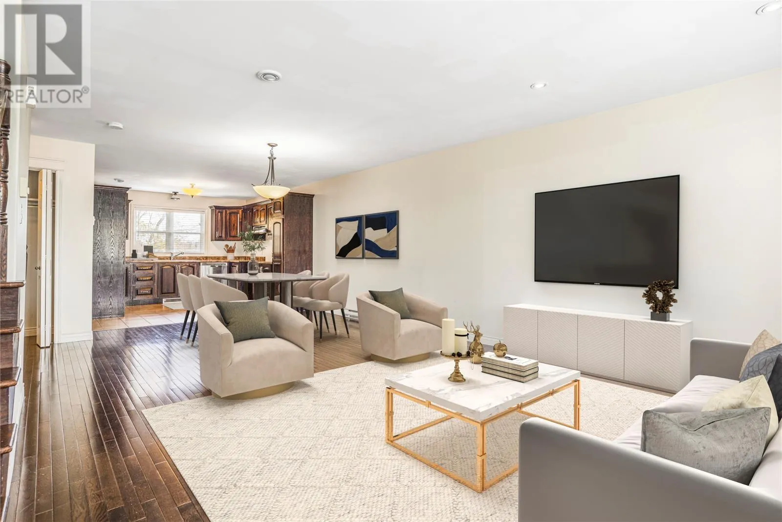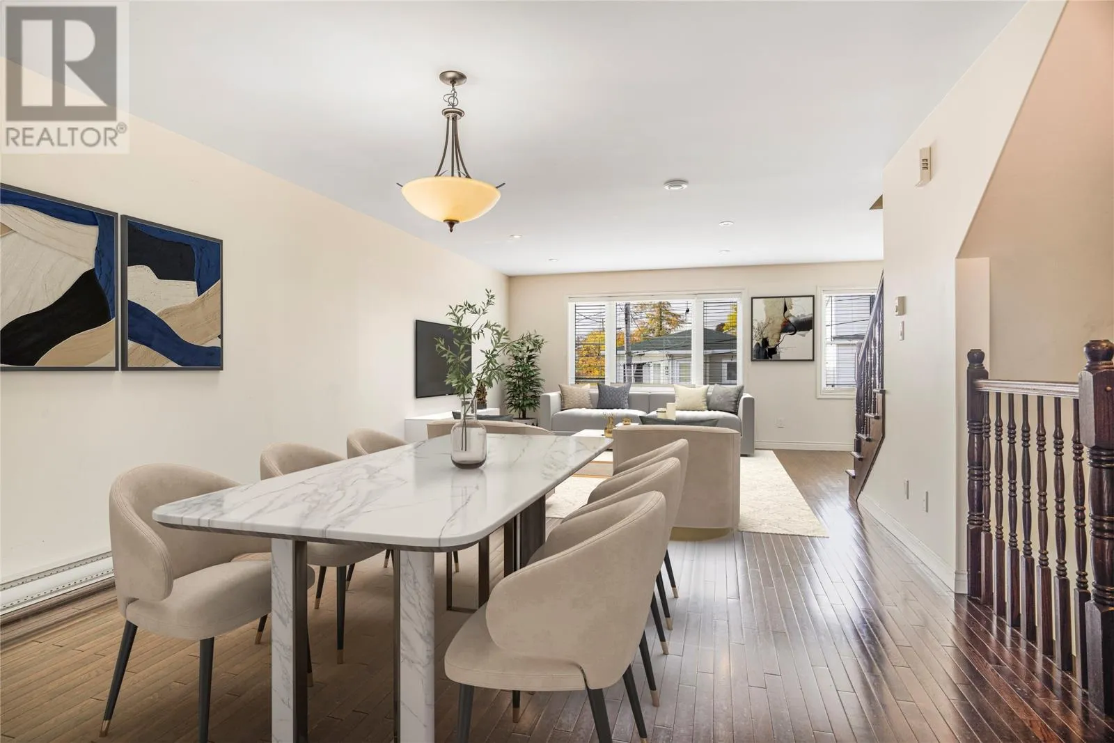 Modern, low-maintenance living in the heart of Downtown St. Johnâs. This well-kept 13-year-old townhouse offers an open-concept main floor with a spacious living room, dining area, and bright kitchen with contemporary finishes. Hardwood and ceramic flooring extend throughout, and the convenience of main-floor laundry enhances day-to-day living. Upstairs, the home provides three well-proportioned bedrooms and a full bathroom. A large in-house garage offers secure parking and valuable storage. Located just steps from Water Street, local shopping, restaurants, nightlife, and the harbourfront, this property delivers a true urban lifestyle with scenic views of the Southside Hills. A fantastic opportunity for buyers seeking comfort, convenience, and walkability in one of the cityâs most desirable downtown neighbourhoods. (id:27476)