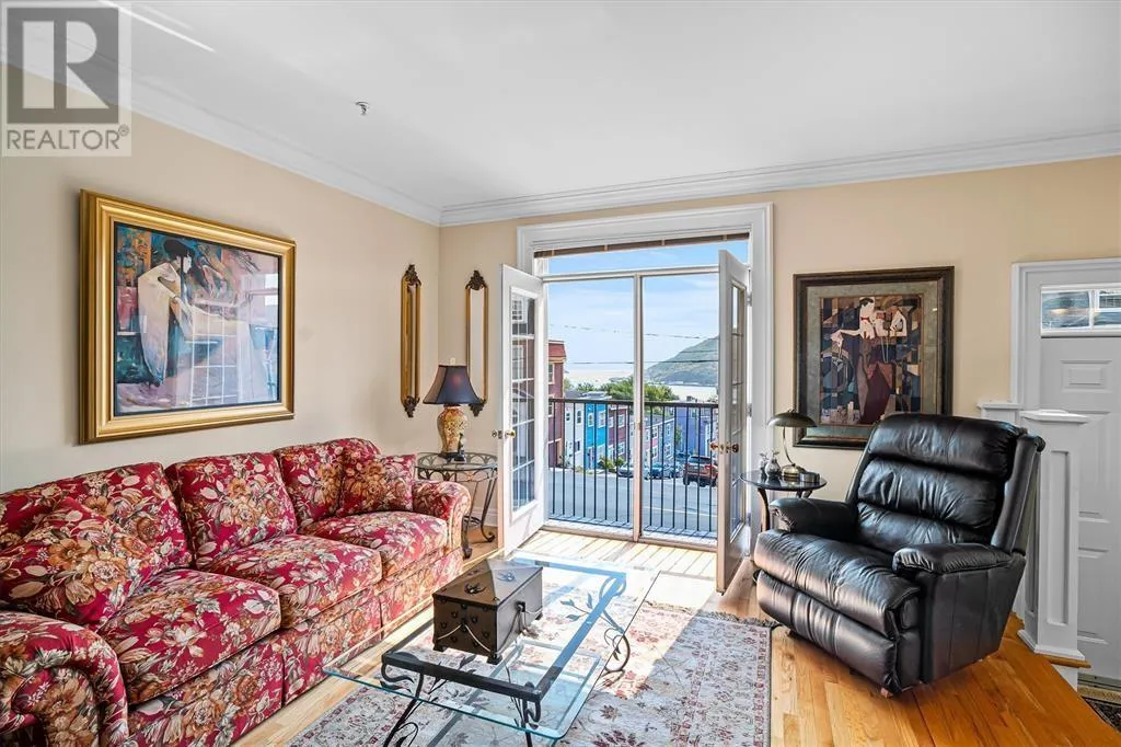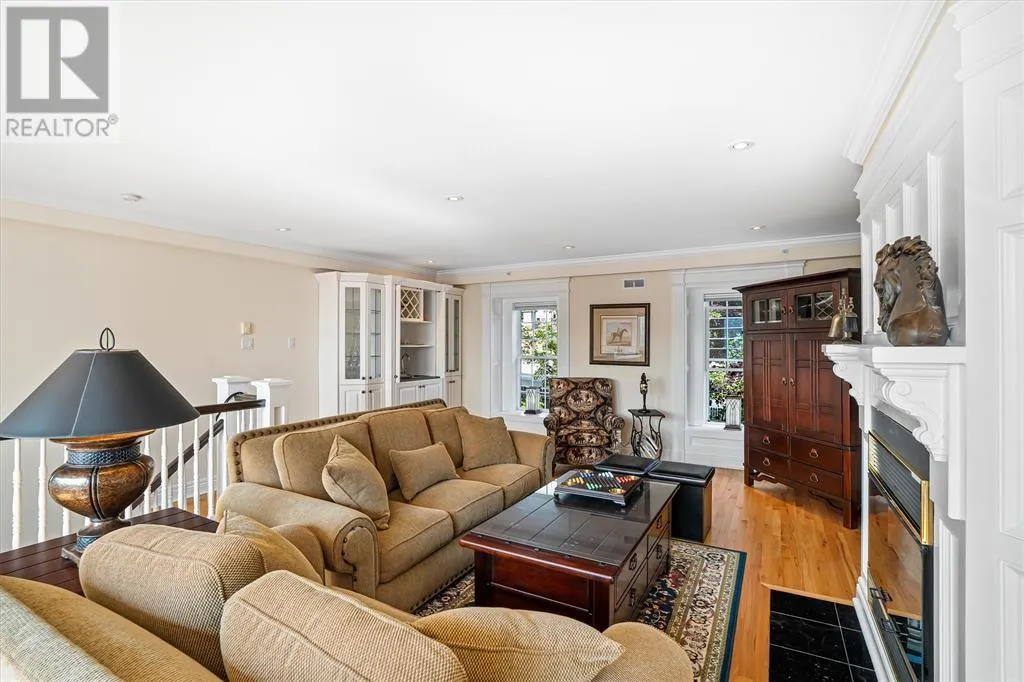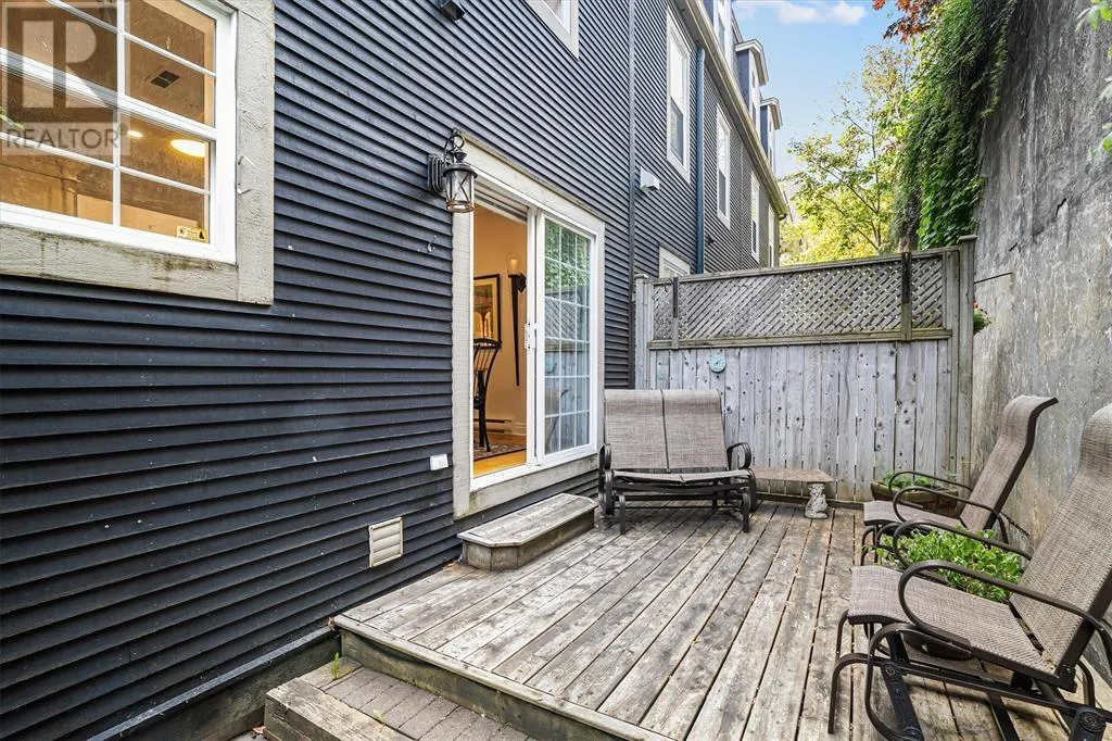 Located in the heart of historic St. Johnâs, this executive Brownstone townhouse presents a rare opportunity with breathtaking harbour and city views from every level. Itâs sure to impress the most discerning buyers. The gracious main floor layout is perfect for entertaining, featuring an open-concept design that leads to a private patio with a European feelâideal for relaxing or hosting guests. On the second level, youâll find two spacious bedrooms, including a primary suite with a walk-in closet and luxurious ensuite, as well as a conveniently located laundry area. The top-floor loft/studio space is truly special, with a wood-burning fireplace, custom built-in wet bar, and expansive front and back windows showcasing natural light and once again, those breathtaking harbour views. The fully developed basement offers a bonus guest bedroom with its own bathroom, providing additional privacy and comfort, along with ample storage space. An in-house garage plus private driveway complete this spectacular home. This is a one-of-a-kind addressâa rare blend of style, location, and views that is truly extraordinary. A rare turnkey opportunity. Also included in the sale are the central vacuum system, garburator, all blinds, draperies, and hardware. This home will be sold with all contents includedâjust move in and enjoy. (id:27476)