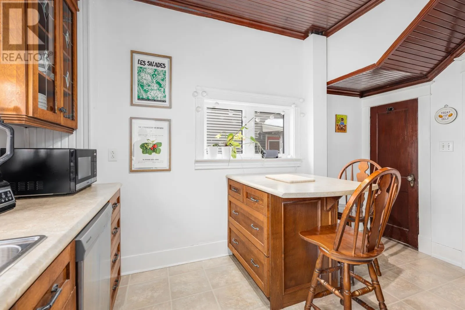 A perfect example of a wonderfully preserved character home with modern upgrades and functionality. This centre city 2-storey has been very well maintained and updated over the years. Gleaming basket weave hardwood floors and the impressive original curved staircase greet you as you enter the foyer. The living room features the charming original fireplace and mantle that has been fitted with a propane burning insert. The formal dining room features a second (decorative) original fireplace and the original (still functioning) passthrough window to the kitchen! In the kitchen you will find an abundance of modern birch cabinetry, stainless steel appliances and additional storage and prep space in the updated rear vestibule with additional cabinetry, shelving and butcherblock counter which also contains a convenient half bath. Upstairs are three spacious bedrooms, main bath and top floor laundry, as well as an additional dressing room which could also make a great home office. Outside, the front and rear decks have been recently replaced as well as the rear privacy fence. The quiet back yard with no direct rear neighbour and boasting a detached garage with pony panel and concrete slab floor will make you forget you're in the heart of the city. With so many features old and new to enjoy and so many improvements to this property in recent years, you really can have it all in this ready-to-move-in one of a kind home. Per Sellers Directive: No conveyance of offers prior to 3:00PM February 24 2026. (id:27476)