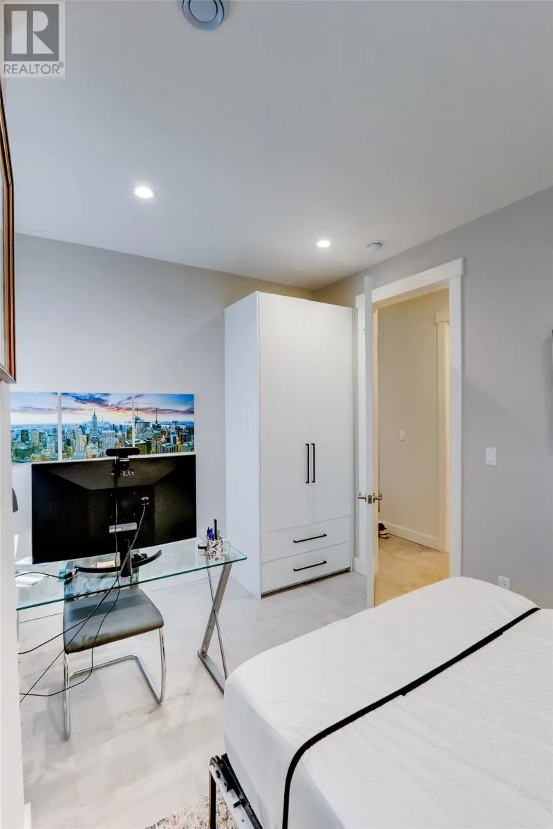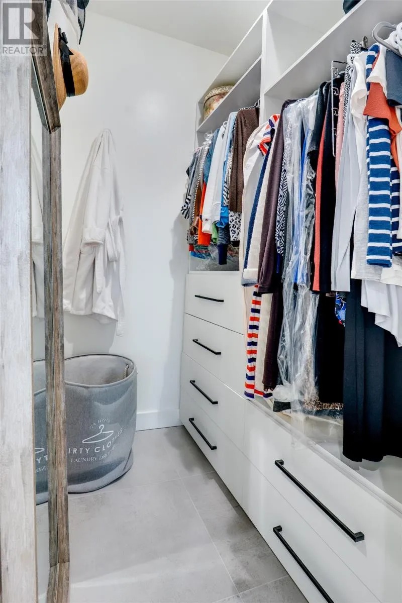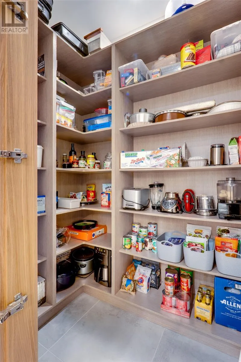Beautiful 4th-Floor Condo with Sweeping Waterford Valley Views. Welcome to Park Place West, one of St. Johnâs most desirable and amenity-rich condominium communities. Perfectly perched above Victoria Park, this secure building offers private underground parking, keyless access, on-site management, and a fully equipped fitness centre. Inside this pristine unit, youâre greeted by panoramic views of the Southside Hills and Waterford Valley from the open-concept living area and chef-inspired kitchenâideal for entertaining. The white oak kitchen showcases a large sit-up island with stone counters, a full walk-in pantry, and top-tier appliances including an induction range, Bosch whisper-quiet dishwasher, Fisher & Paykel oven, drawer microwave, and beverage centre. The bright dining area easily accommodates family gatherings, while the spacious living room features wall-to-wall windows and access to a private 4th-floor balconyâcomplete with BBQ hookup. The second bedroom doubles perfectly as a home office with a built-in Murphy bed, and the main bath features a custom-tiled shower. The primary suite includes transom lighting, extensive built-in storage, a walk-in closet, and a beautifully finished ensuite with a second custom tile shower. Additional features include: full-size washer and dryer, exterior-vented range hood and dryer, in-wall safe, and custom blinds throughout. Experience elevated condo living where design, comfort, and convenience meetâwith some of the best views in the city. (id:27476)