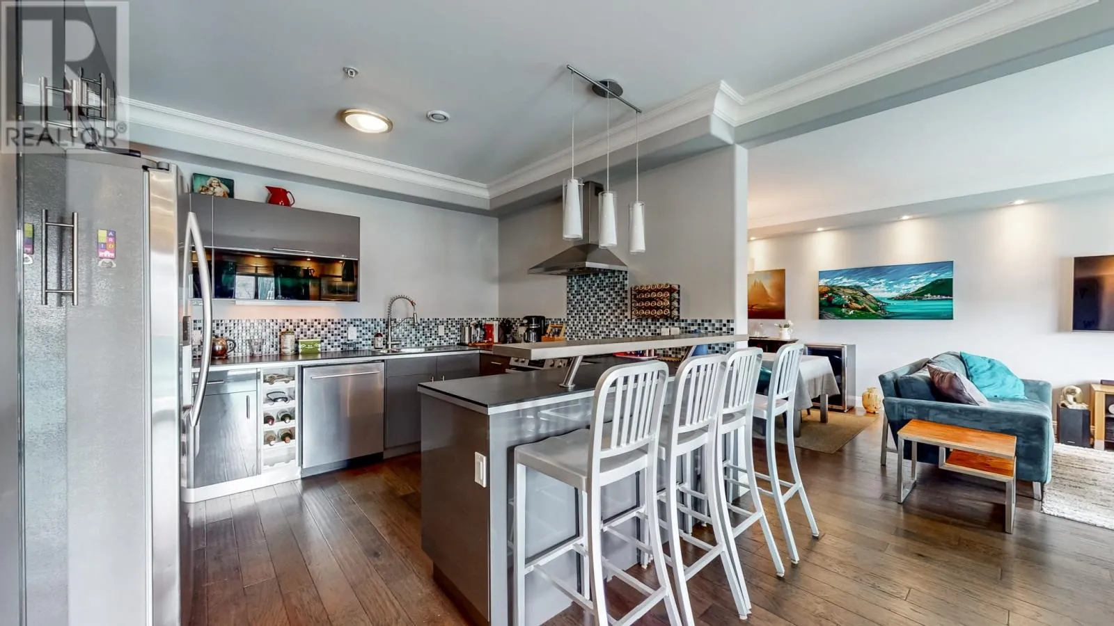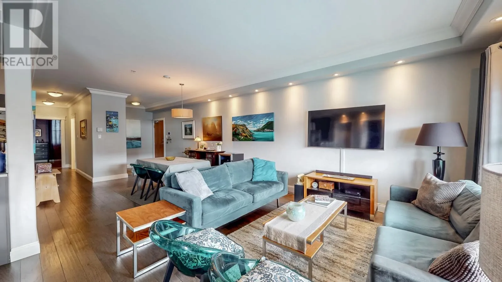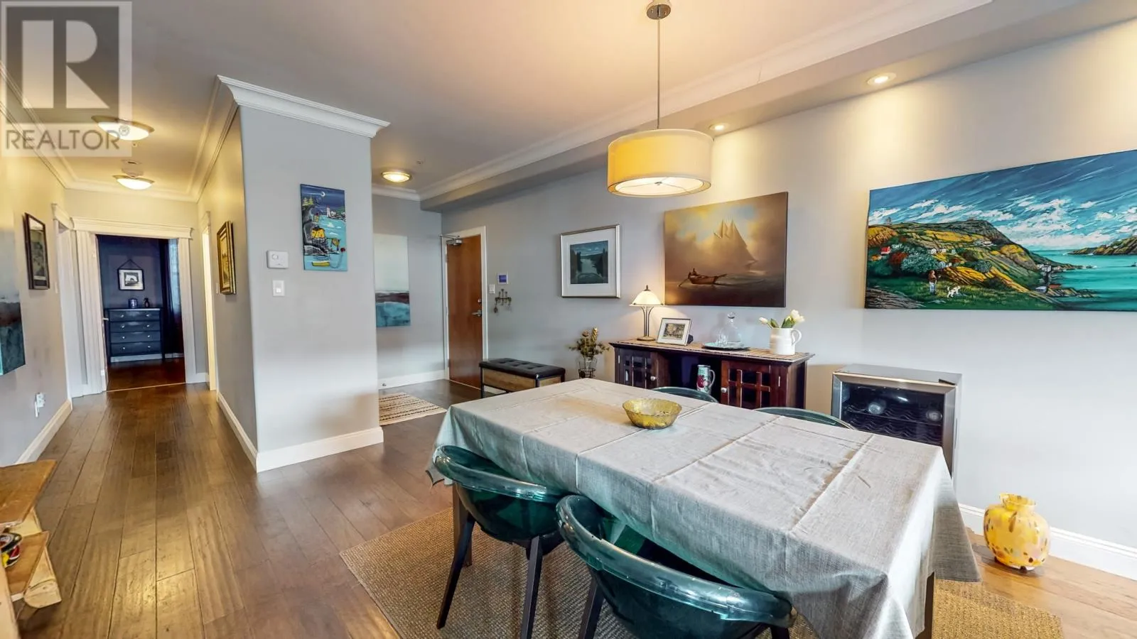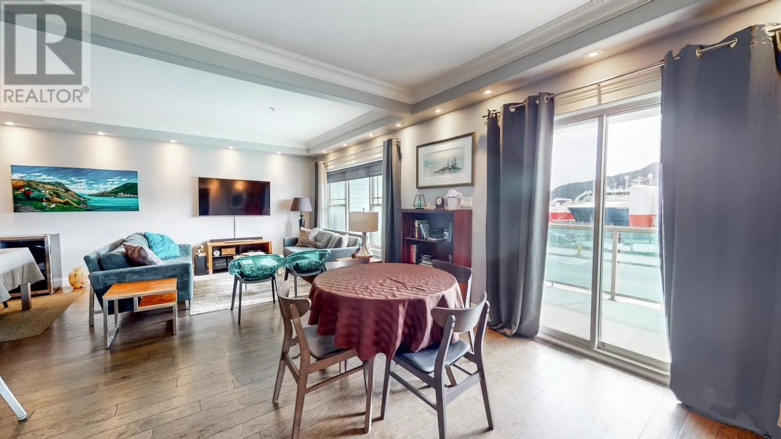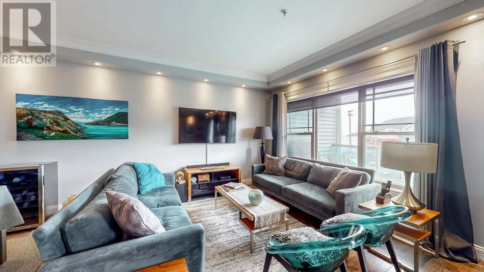 Located in the heart of downtown St. John's, with breathtaking views of the Narrows, this stunning, executive, open concept condo offers many upgraded features ,starting with a gourmet kitchen with a custom back splash and built-in stainless steel appliances, an eat-up bar, dining area and living room that opens to a 25 x 8 foot balcony overlooking the water front and a view straight out through the Narrows. The over sized master bedroom has a large walk-in closet & ensuite with walk-in shower, porcelain & a glass floor & wall tiles. There is also a guest bedroom and a second full bathroom ,plus office /Den , full laundry & 1 underground parking space. This property has great rental potential. Vendor will consider a furniture package as well. (id:27476)