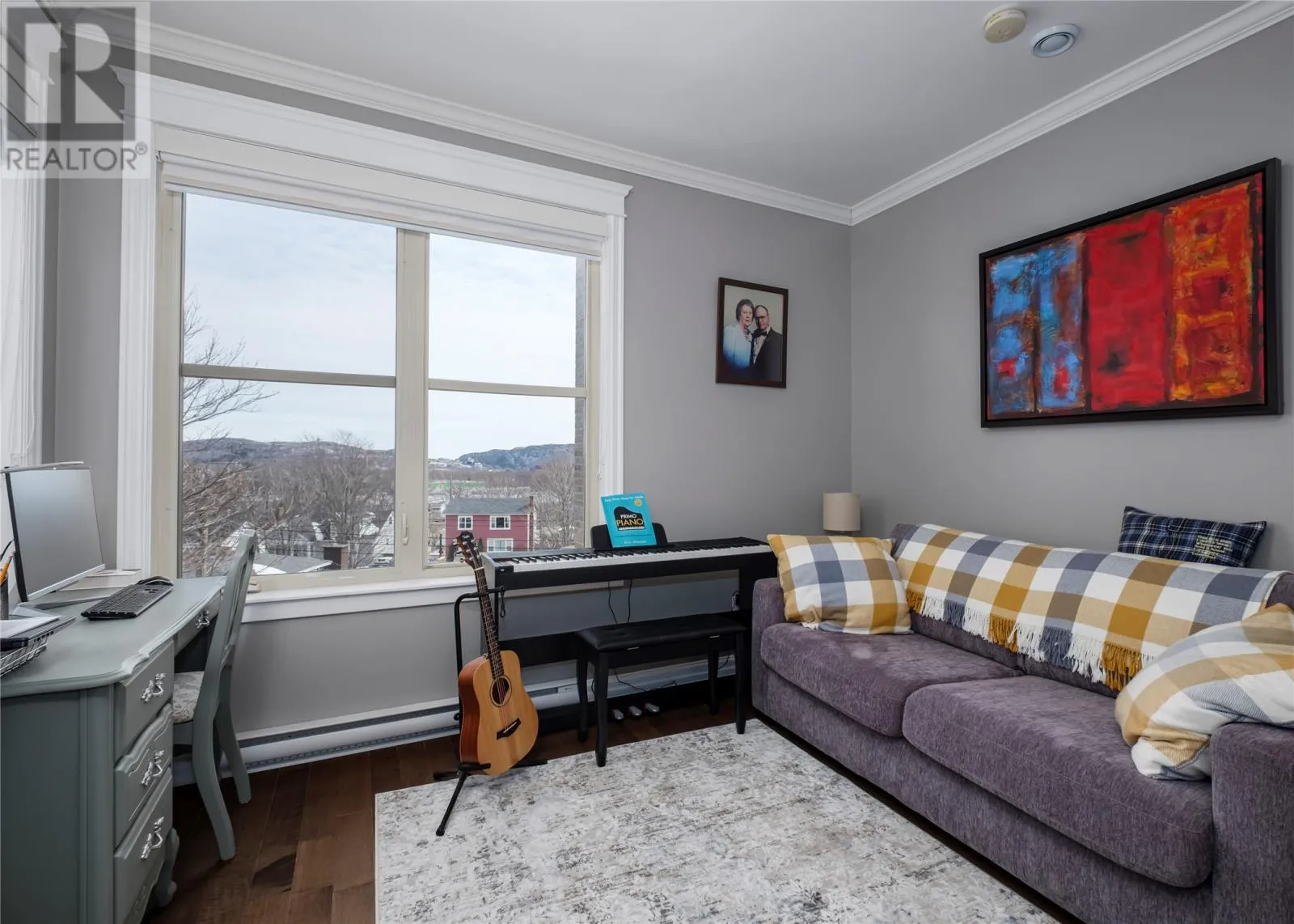 Experience premium condo living in one of St. John's most desired locations. This stunning 2-bedroom, 2-bathroom layout, offering 1,475 sq. ft. of thoughtfully designed space in a prime location. This beautifully appointed unit has quality finishes throughout, including solid surface countertops, hardwood flooring, and elegant tile accents that create a seamless blend of style and durability. The spacious layout is perfect for both everyday living and entertaining, highlighted by a dream ensuite that offers a luxurious retreat with spa-inspired features. The secondary bedroom is spacious as well, and can easily be used for a home office. Large windows fill the home with natural light while framing breathtaking views of Signal Hill, creating a truly picturesque backdrop to enjoy sunrises or the nightly glow of the city. Meanwhile, stay comfortable year-round with efficient heating and cooling provided by a modern mini-split system. Step outside to your private 17 x 10 covered deck âideal for relaxing or enjoying the scenery year-round. Additional features include secure underground parking, ensuring both convenience and peace of mind. This exceptional condo combines comfort, sophistication, and locationâan ideal place to call home. No conveyance of offers until Monday March 3o, 2026 @ 5:00 p.m., and left open for acceptance until 9:00 p.m the same day. (id:27476)